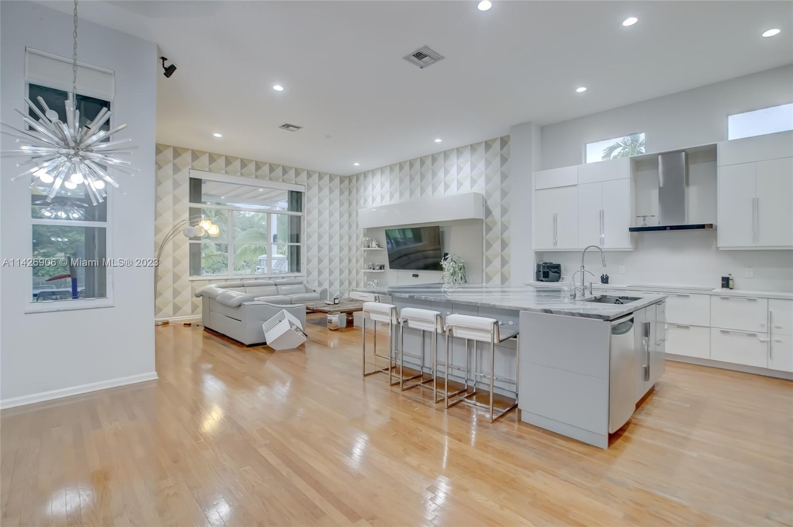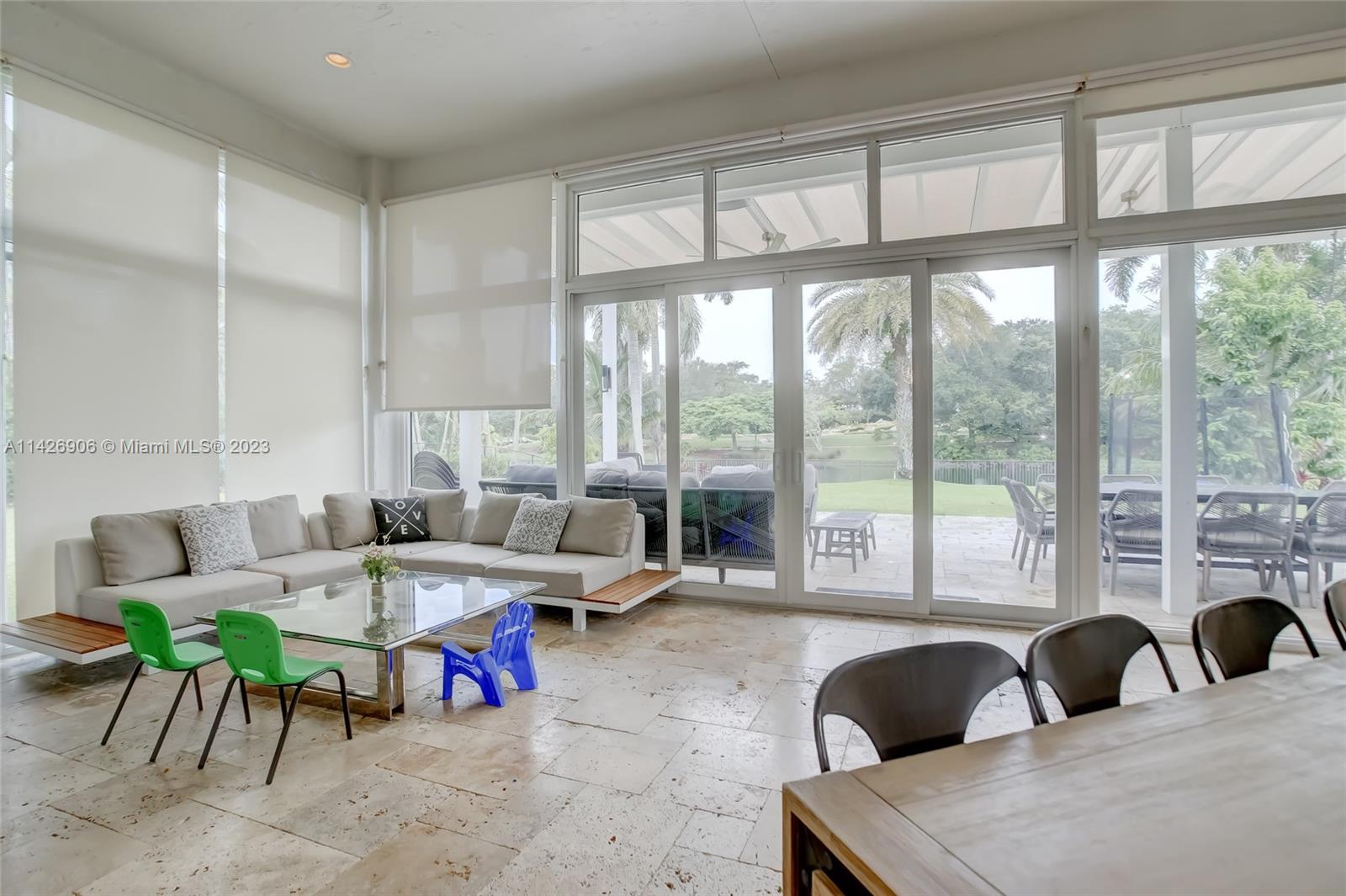 JUST REDUCED TO SELL!! VERY MOTIVATED SELLER, THIS SPECTACULAR! 1 STORY HOME at The Exclusive IMAGINATION FARMS Guard GATED Community, this AMAZING High Ceiling Waterfront 4 Bed, 3 full baths, Updated Kitchen with Stone & Quarz Counter Top, Premium Brands Appliances with a Steamer Oven, Custom Wine Cellar with Cooling System, Icemaker & Wet Bar, UNIQUE A/C enclosed Patio with IMPACT GLASS & IMPACT Sliding Doors, ALSO IMPACT MAIN DOOR ENTRANCE 3 Car Garage with a/c, outdoor Cover Terrace with a Full Kitchen, Pizza Oven & Premium appliances, the Single Garage is set up as a Gym, Gym equipment included, Furniture & decorations & Art Pictures, except for Master Bedroom bed with 2 night stands, 1 Art Picture & part of Wine & Spirits inventory), accordion shutters throughout, LOW HOA.