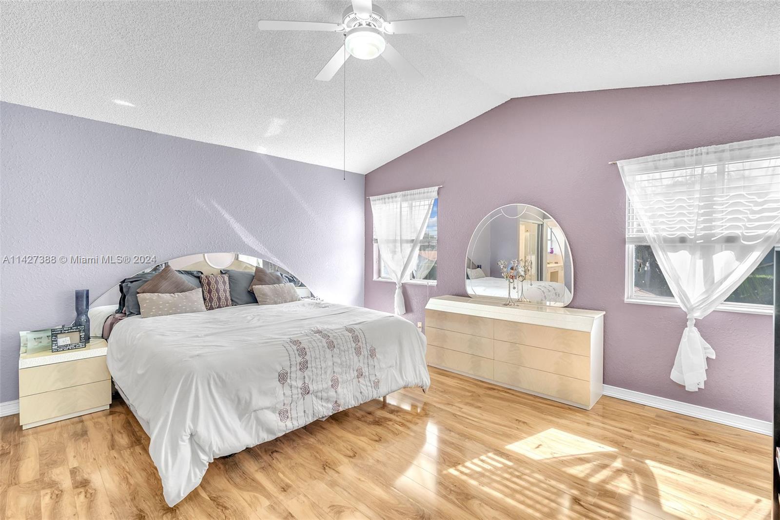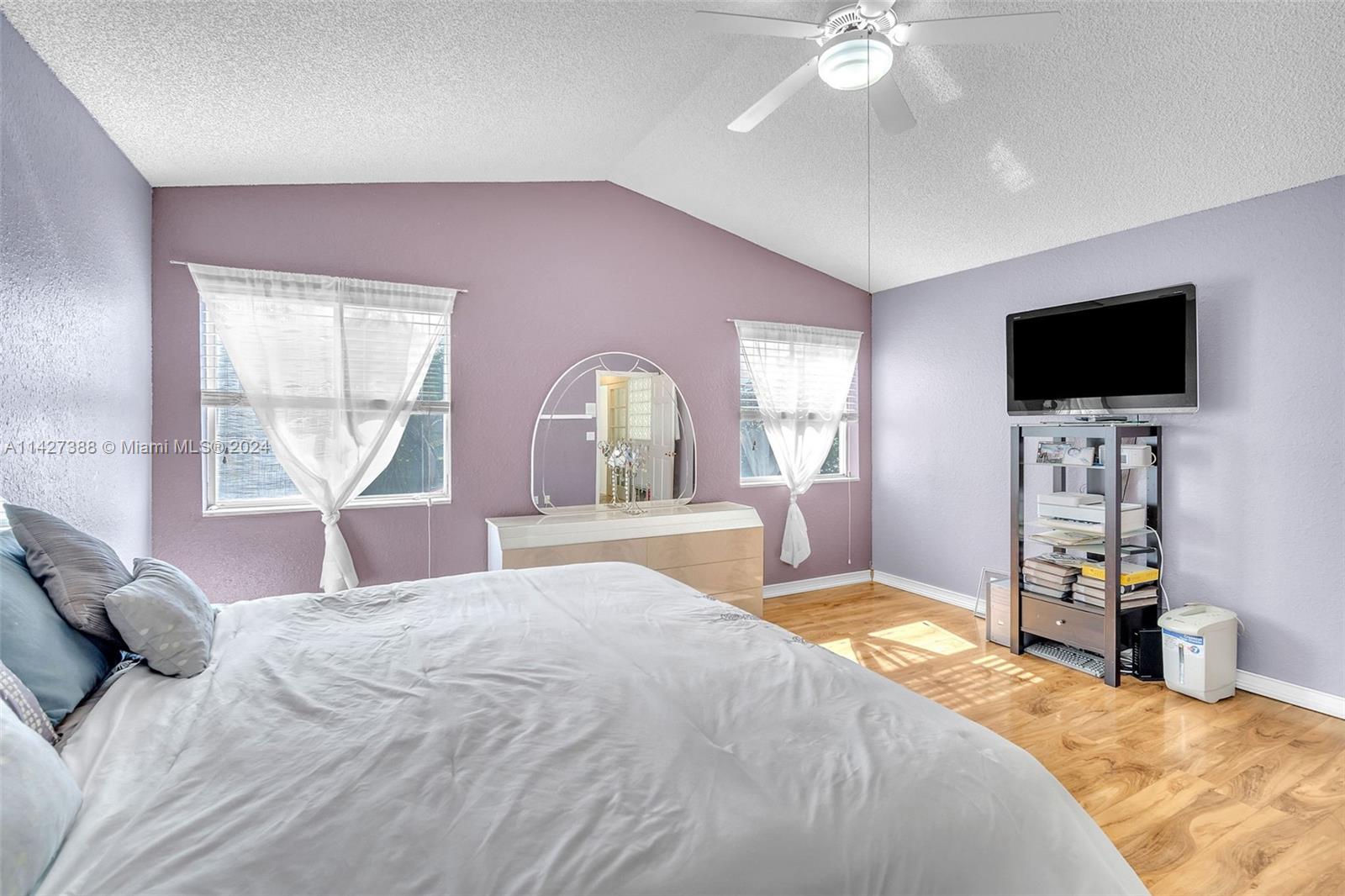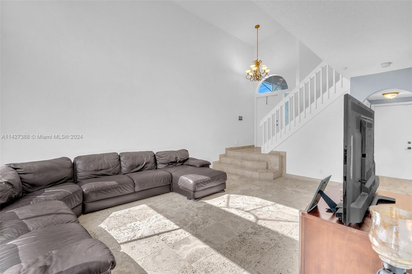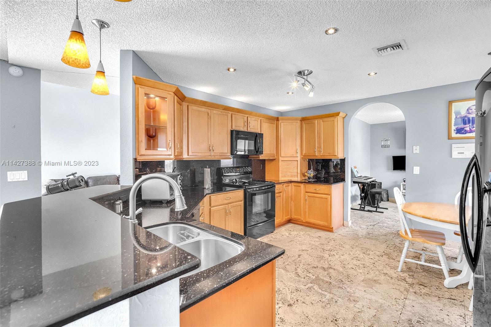 Super 3 BR, 2.5 bath, 2 car garage home in the Pembroke Pointe community in Pembroke Pines. High ceiling, formal dining & living room, plus den, large kitchen w/ granite counters, top wood cabinetry, eat-in kitchen, and breakfast bar. All bedrooms are upstairs with a split bedroom layout. Large, fenced yard for entertainment, walk to community pool. Low HOA dues include basic cable, community pool, and common area maintenance. Walk/bike to the new City of Pembroke Pines city center, lots of great dining & shopping options. Pembroke Pines/Broward County Schools. The chandelier in the dining room is not included in the sale. Close to City's Pembroke Lakes Golf & Tennis Facility, Pembroke Lakes Mall, Memorial West Hospital, parks, and easy commutes in every direction.