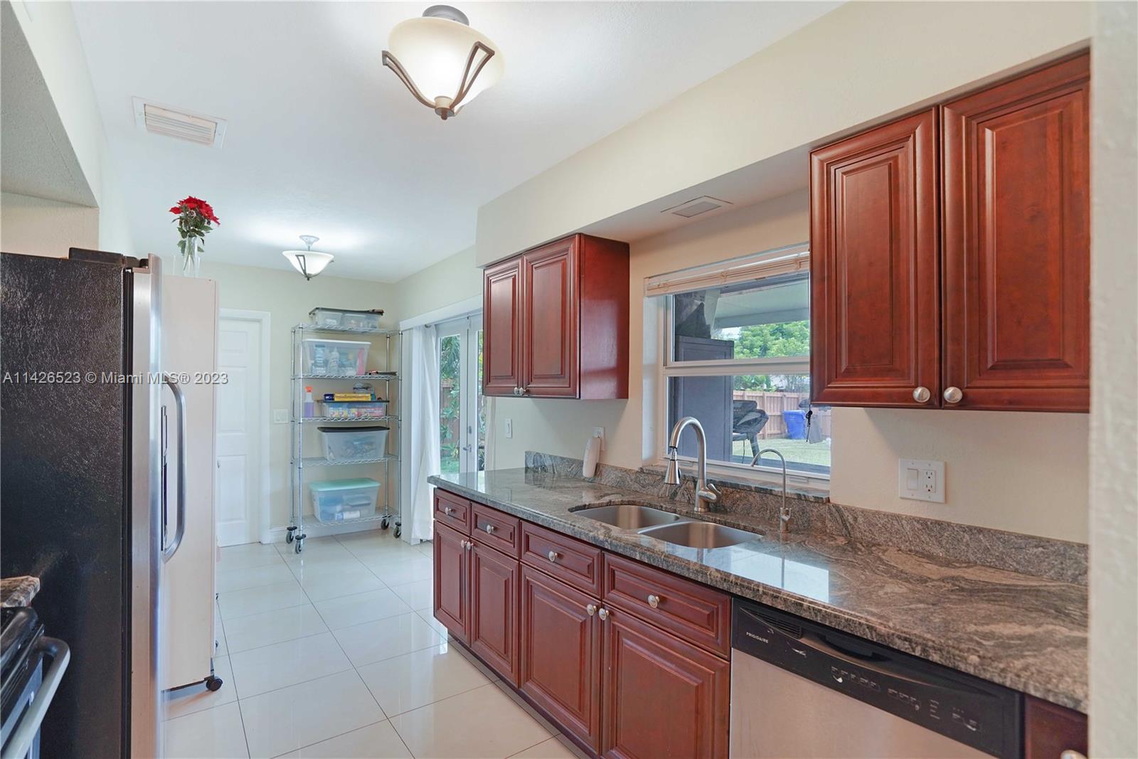 Welcome to this highly desirable corner lot home in coveted Hollywood Hills, boasting 3 Bedrooms & 2 full Baths. Upgraded kitchen & baths, bright & airy open floor plan. Ceramic floors, beautiful custom kitchen, granite counters, custom wood cabinets & SS appliances. Kitchen opens to formal dining room & spacious living room with natural light, laundry room, pantry, impact windows & doors, Rainsoft purification system. Unwind & cool off under the large covered & screened patio. Extensive yard with room for pool, outdoor kitchen & storing recreational vehicles, beautifully landscaped. Oversized corner lot with patio side access, fence installed 2016, the roof was replaced in 2020, attached two car garage, circular driveway for multiple vehicles. Parking for Boats, Rvs & commercial vehicles.