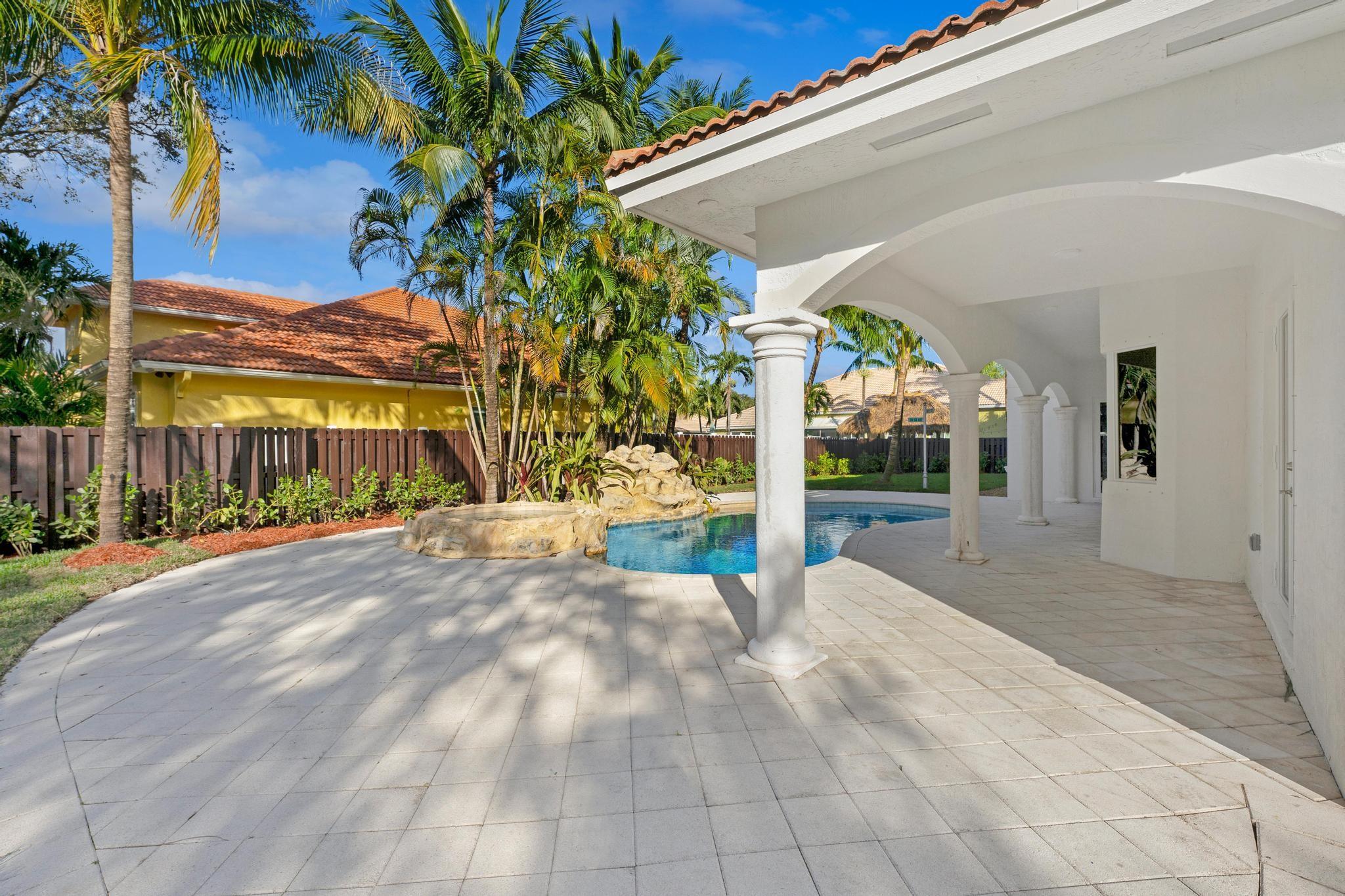 Fabulous 4 BR 3 Bath Home with a heated pool and spa. Balcony overlooking backyard and pool. Prestigious and private gated community. Other features include over 3200 square feet, upgraded marble throughout living areas, Stainless steel appliances and upgraded stone counter tops in the kitchen, state of the art security cameras, owner alarm, fenced backyard and Jacuzzi tub in master bedroom. Located on spacious Corner lot. A Must see!!