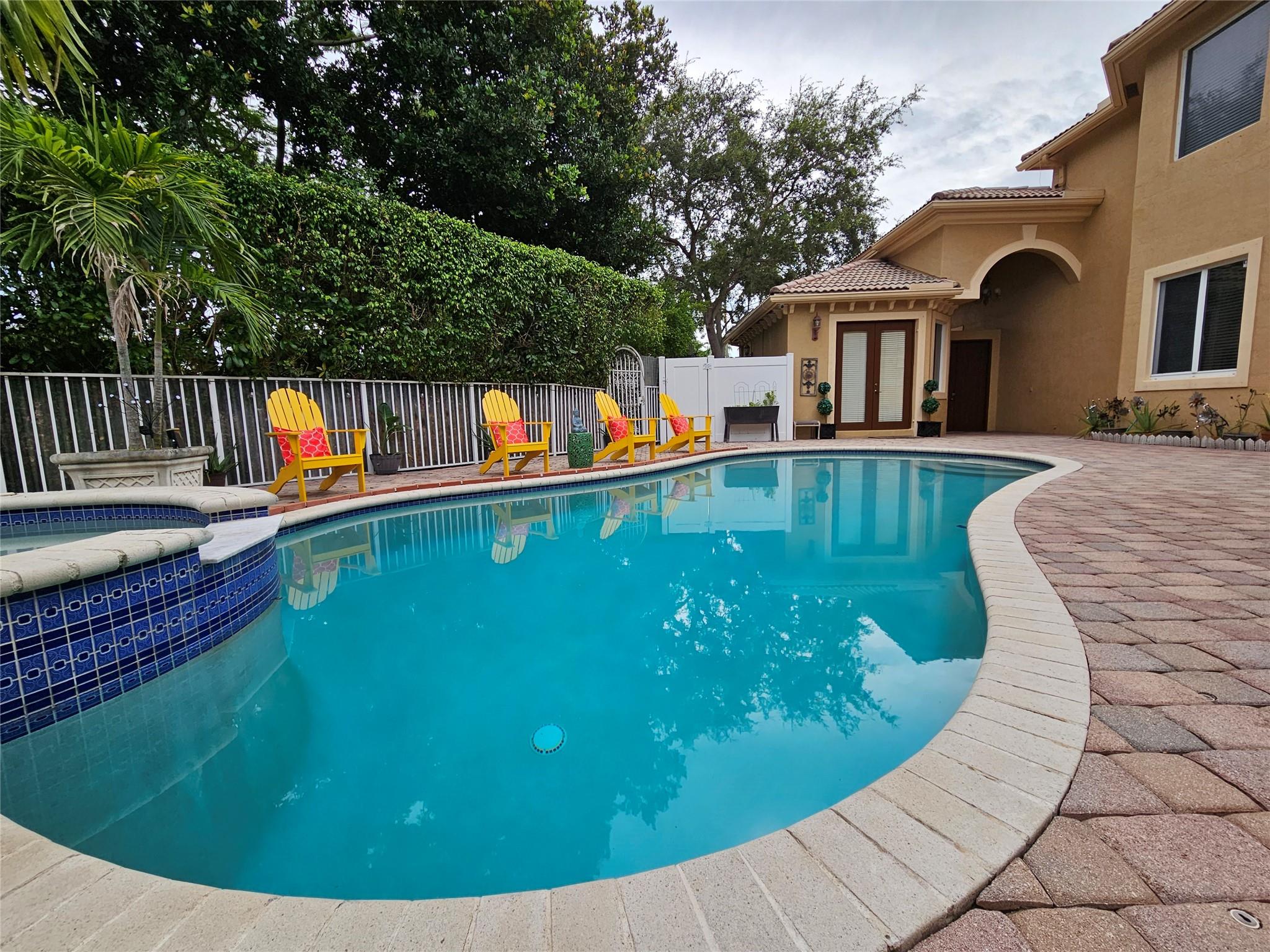Rare opportunity to own a courtyard-style home in prestigious Heron Bay community! Situated on oversized lot with private backyard and large pool perfect for entertaining. Crown molding throughout, newer A/C units and water heater. Updated kitchen fully equipped with top-of-the-line stainless steel appliances and granite countertops. Separate 1/1 guest house, master bedroom and additional bedroom located on 1st floor. Community offers many resort style amenities. Zoned for top-rated Parkland schools. HOA fee includes landscaping and cable TV.