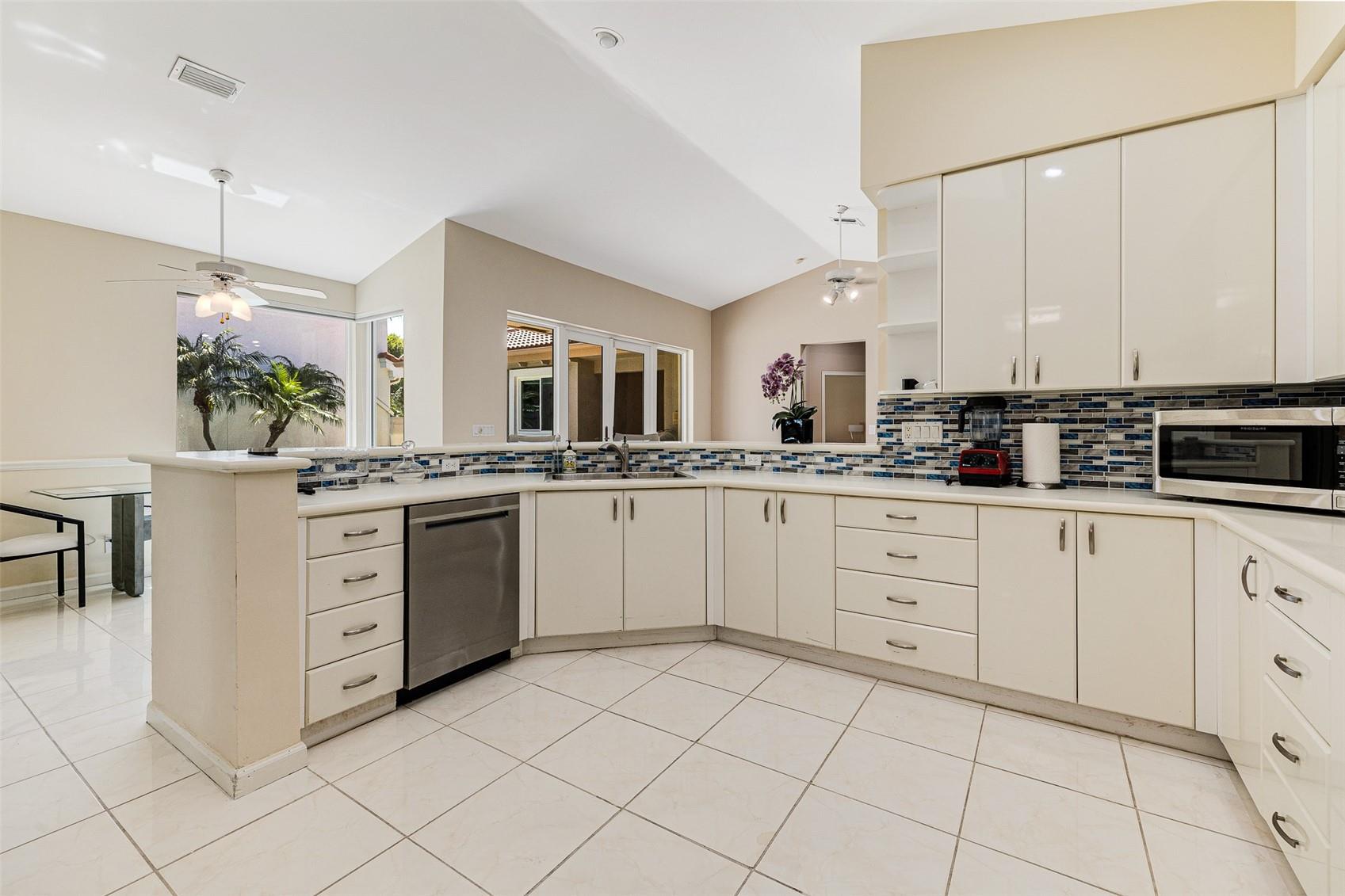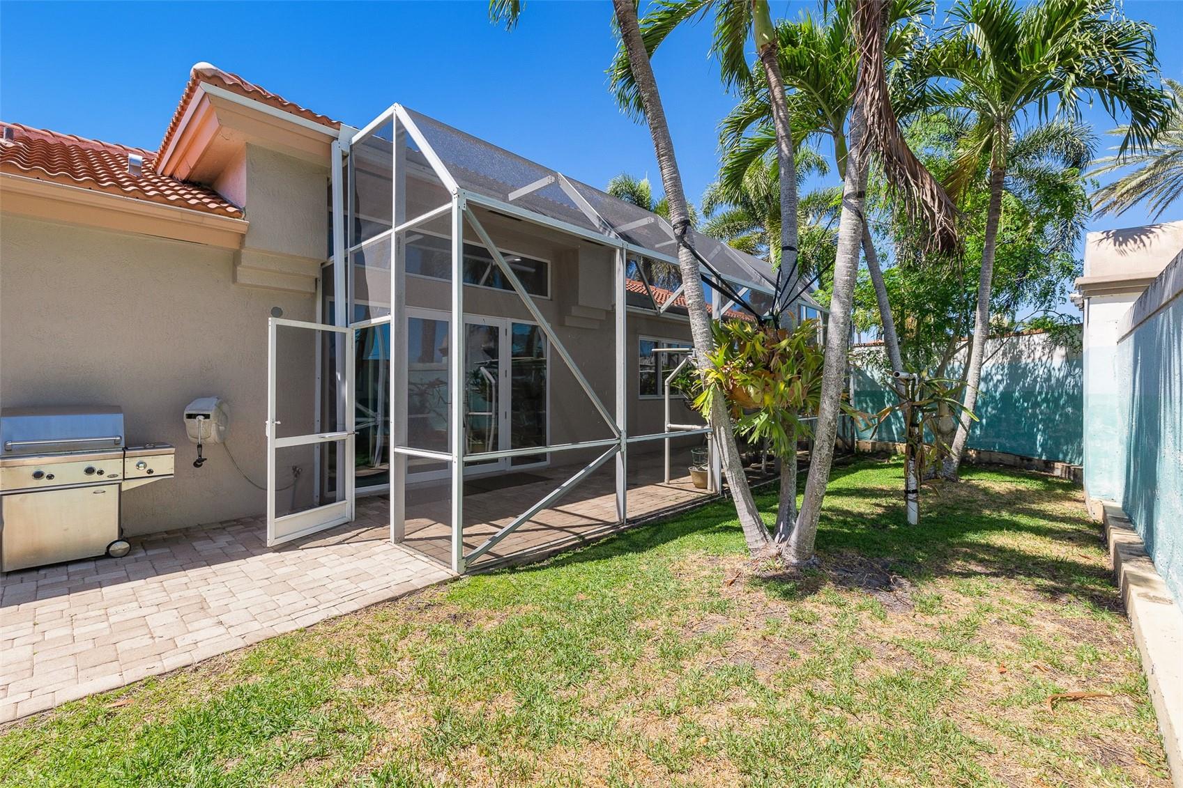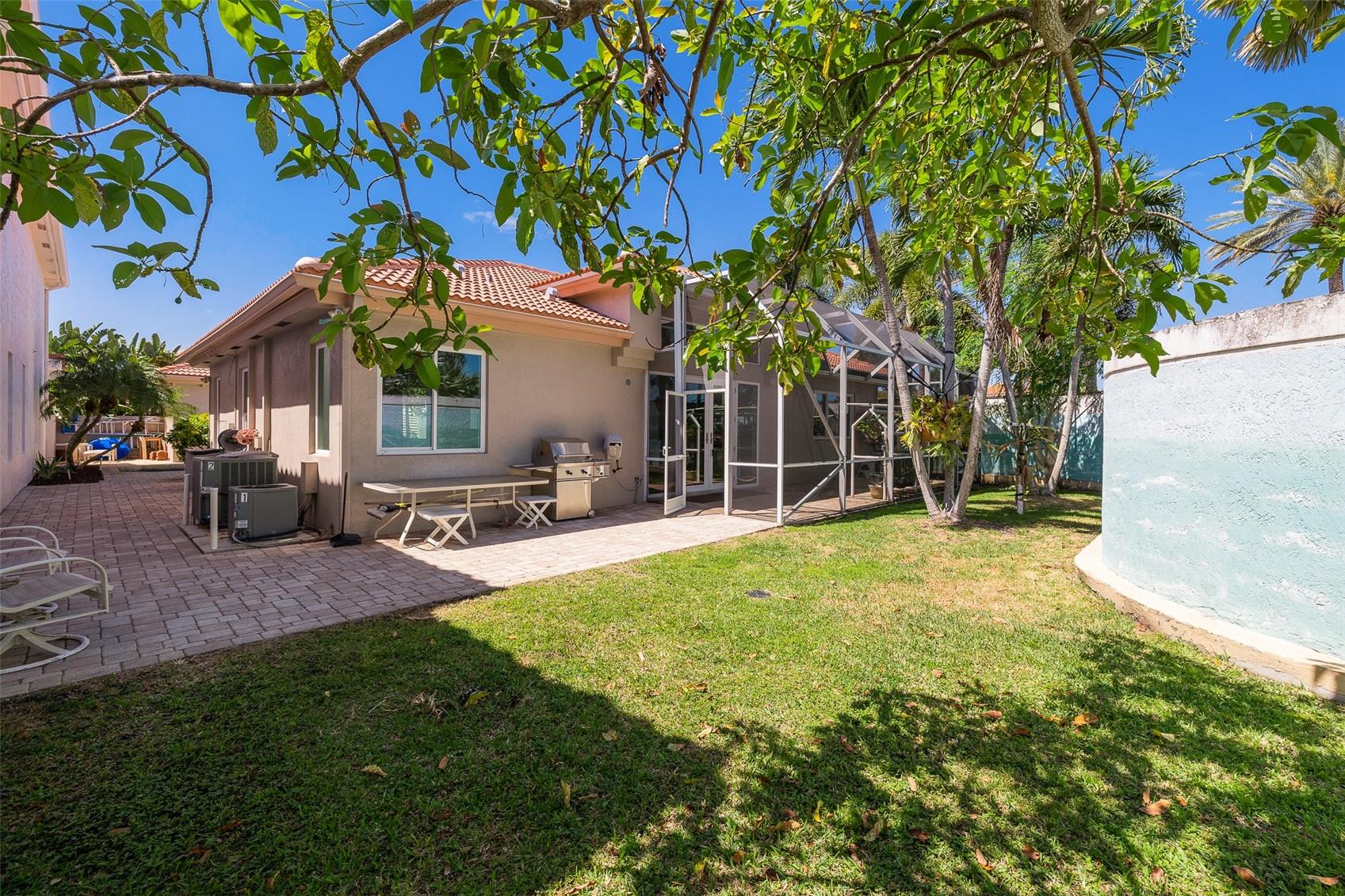 Gorgeous private courtyard salt water Pool home in highly sought after Santa Barbara! Enjoy your own huge private corner lot with luscious fruit trees and screened in porch! Indulge in some afternoon sunlight in your saltwater pool in the total privacy inside of your own courtyard! Guest house and or mother-in-law suite also has it's own bathroom! Large open split floor plan with large bedrooms! Lots of natural sunlight including your own skylights! Impact windows and doors all throughout. Brand new roof put in 2022. This beautiful home also comes with it's own generator to power the whole house and electrical surge protection! Impeccable location right across the street from the Boca Town Center Mall, less than 10 minutes ride to the beach, minutes to I-95 and the turnpike!