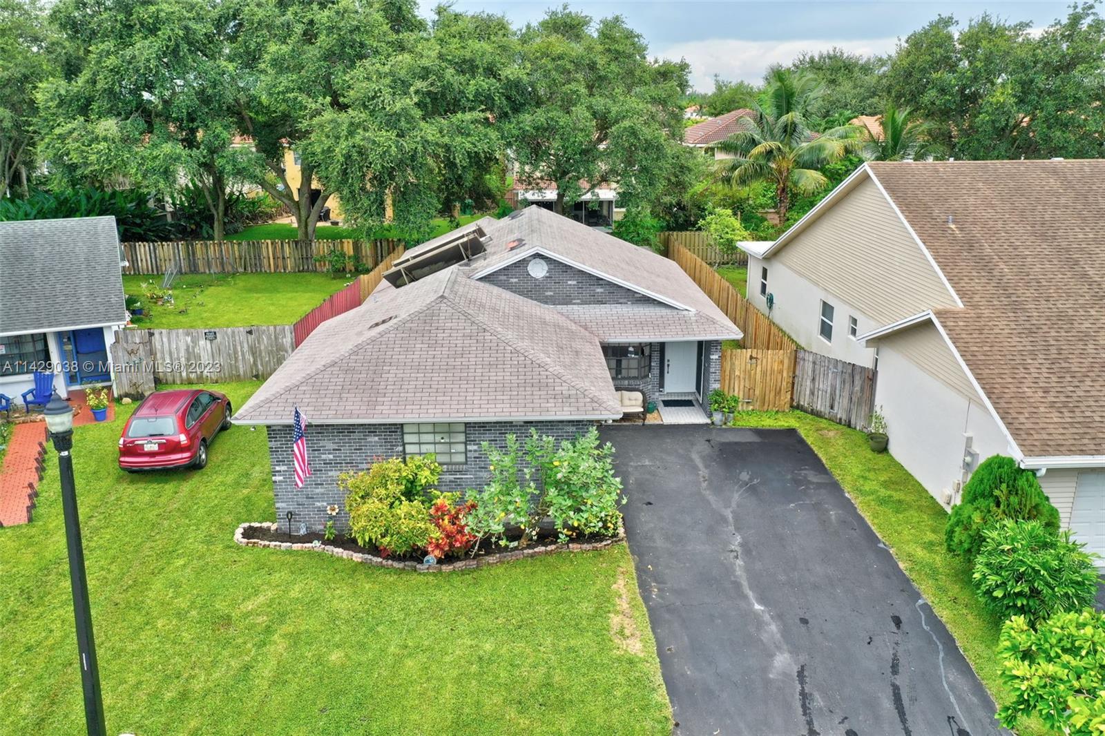 Beautiful Brick Design home located in the heart of Davie. If you are looking for a Single Fam Home with LOW HOA fees, THIS IS IT! Pay only $155 Quarterly. The property is situated near parks and only minutes from Shops and Entertainment. Property Features and upgrades include Freshly Interior/Exterior painting, Screened-In Patio, an Oversized backyard, Located in a Cul-de-sac, Split Floor Plan, Kitchen Bay Window and so much more. Both bathrooms are completely upgraded to include: Granite Countertops, New Hardware, New Mirrors, Modern Vanity Sinks, New Light Fixtures, New bathtubs with tile walls, and New Flooring. Newer Central AC & Water Heater. The driveway can accommodate four cars. A must-see to appreciate!