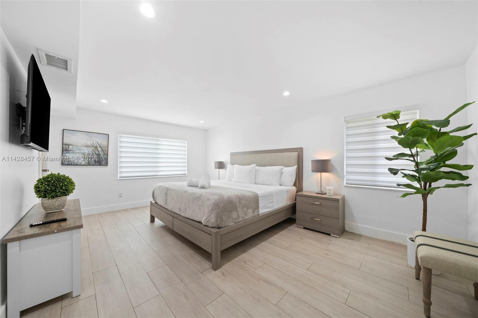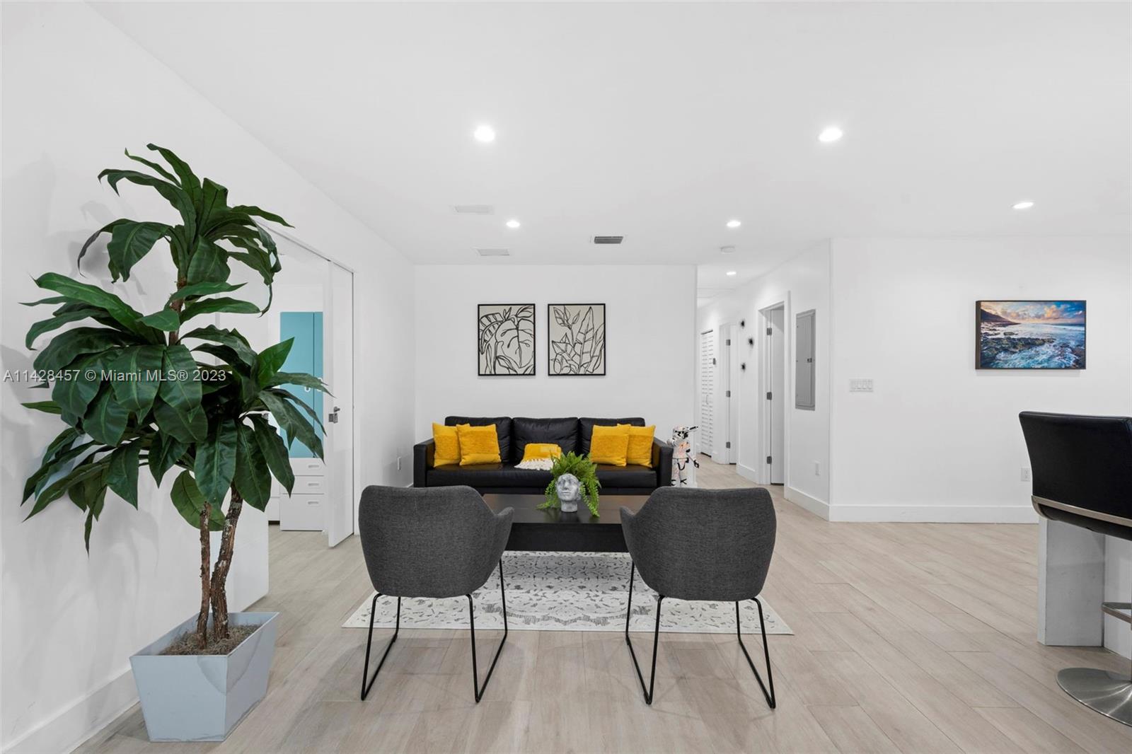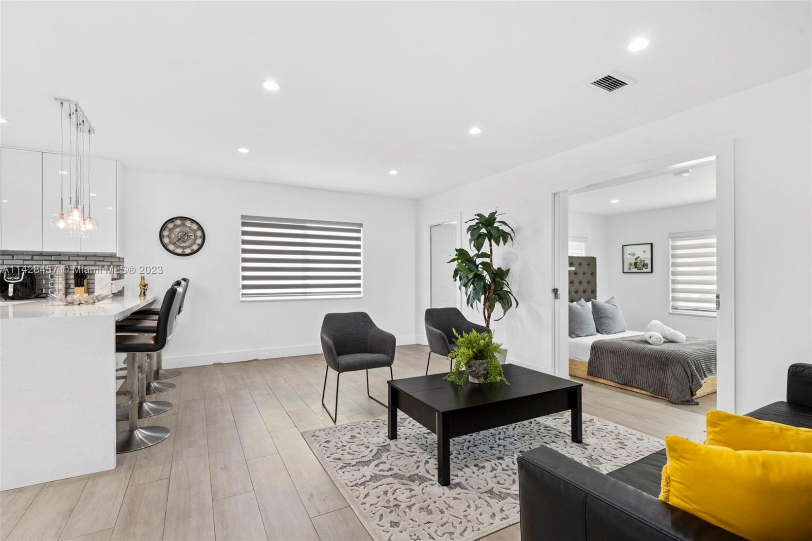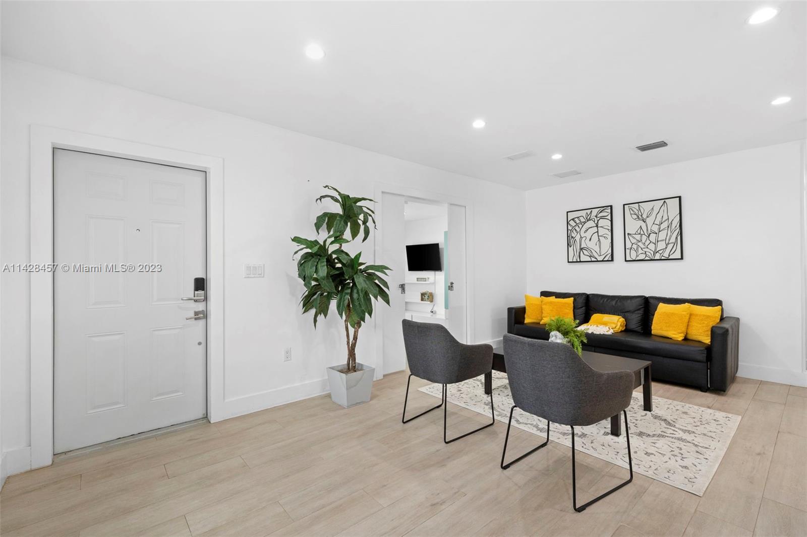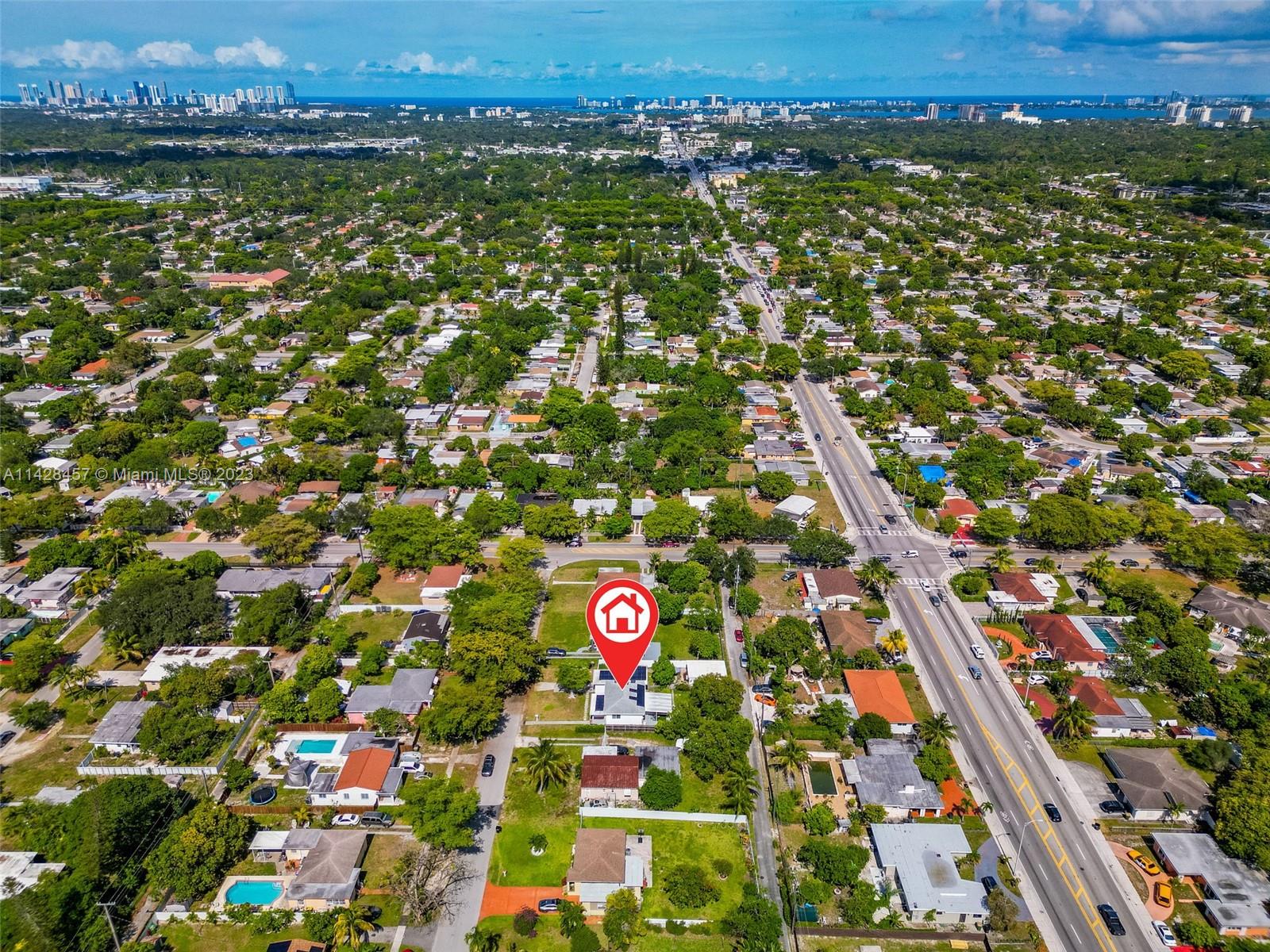 Welcome to your stunning and spacious three-bedroom, two-bath single-family home. Strategic location: 3 minutes from I95, 10 from North Miami Beach Bay Harbor, 12 from Miami Airport. CLOSE TO EVERYTHING: Eagewater, Design District, Downtown Wynwood, Brickell, Hallandale Hollywood, Fort Lauderdale. The beautiful and large backyard is a nature paradise, featuring one mango tree. With Solar panels.