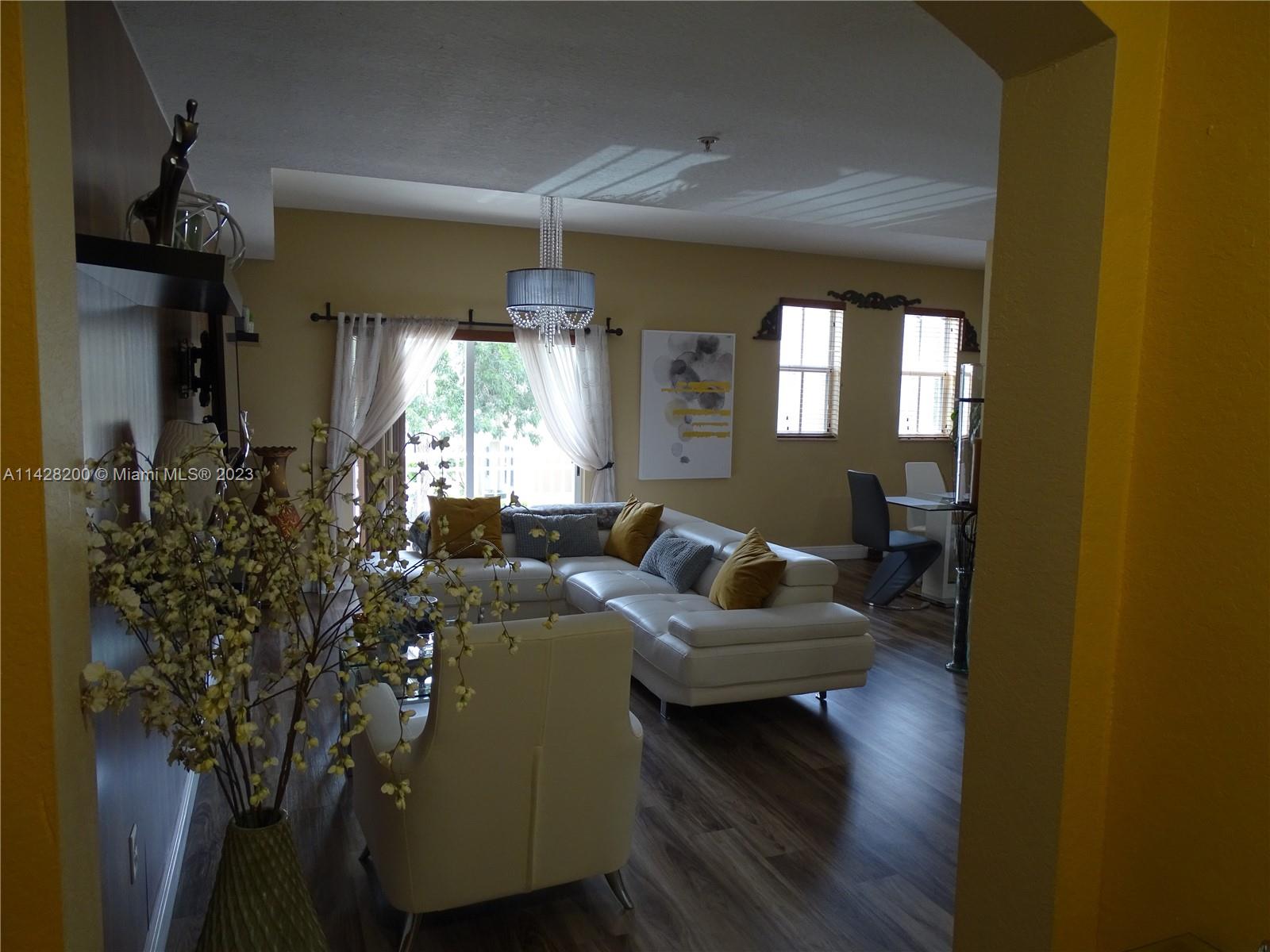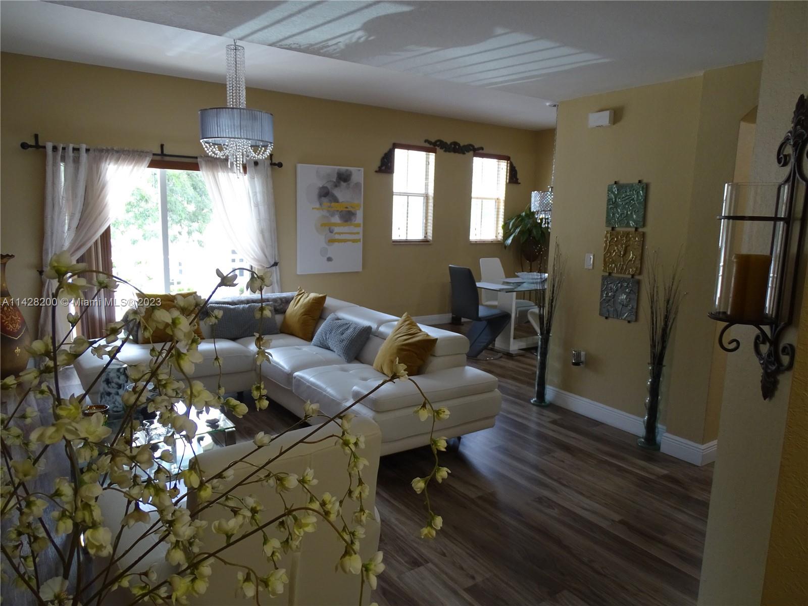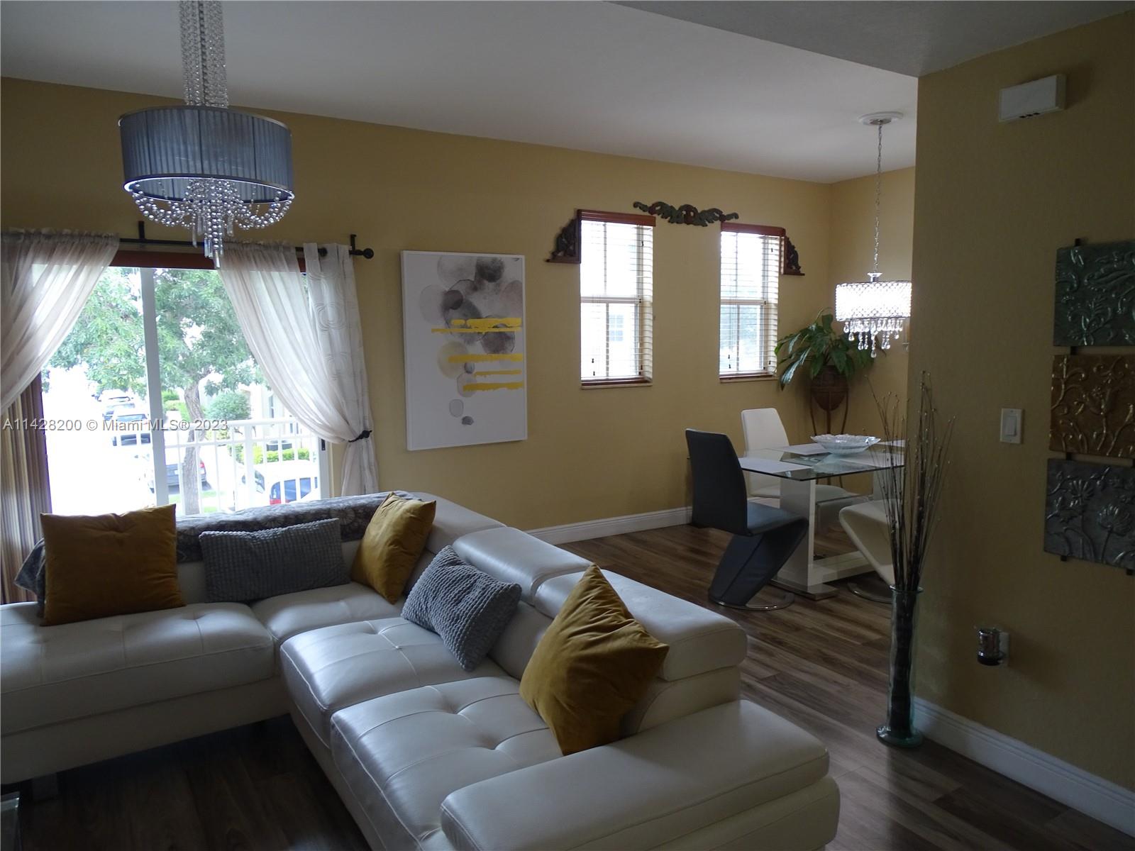 Welcome to your dream townhome in the highly sought at Coronado at Doral. This stunning property boasts 3 spacious bedrooms and 2.5 bathrooms, providing ample space for you and your loved ones to create lasting memories. As you step inside, you'll be greeted by a beautiful layout that exudes positive energy and love. The custom mirror and beautiful lamps add a touch of elegance and charm to every corner of this home. The kitchen featuring granite counters and white appliances that perfectly complement the wood flooring throughout. The impact windows not only enhance the aesthetic appeal of the townhome but also provide peace of mind and security. Don't miss out on the opportunity to make this townhome your own, this property is truly a gem.