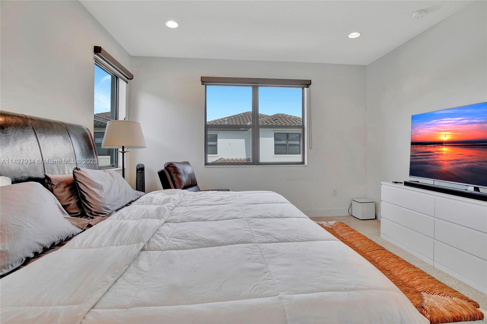 Welcome to your Dream Home! Imagine living in the highly desirable Bonterra community, centrally located and surrounded by all the necessary conveniences. This stunning property comes with four bedrooms and 3.5 baths, two masters bedroom (one downstairs), a family room upstairs that can be easily converted to a fifth bedroom providing you with ample space for all your needs, tile floors on the first floor, and carpet upstairs, and in bedrooms. Best of all, the house comes with solar panels providing savings on your electrical bill, and the central vacuum is a must-see.
