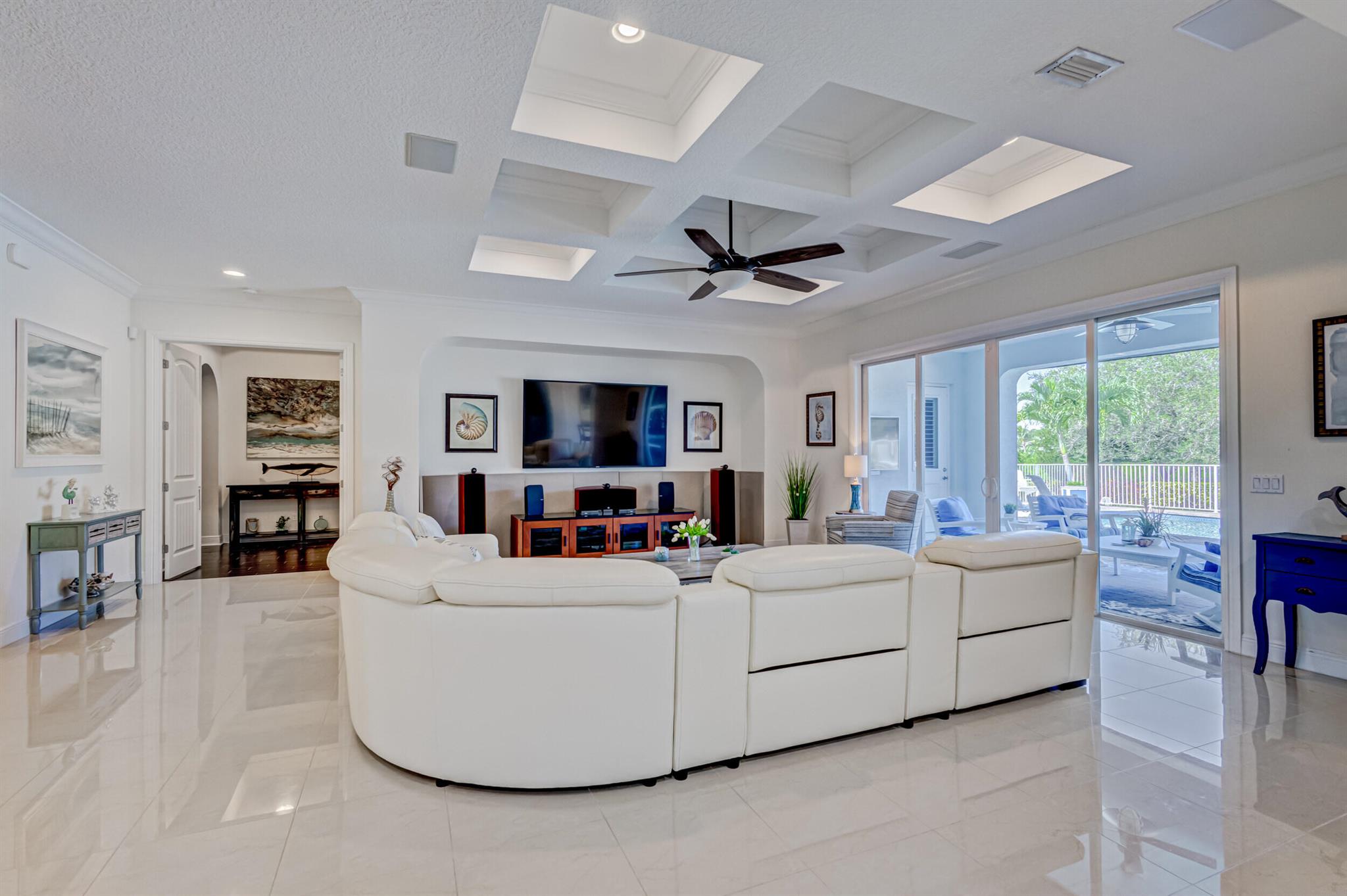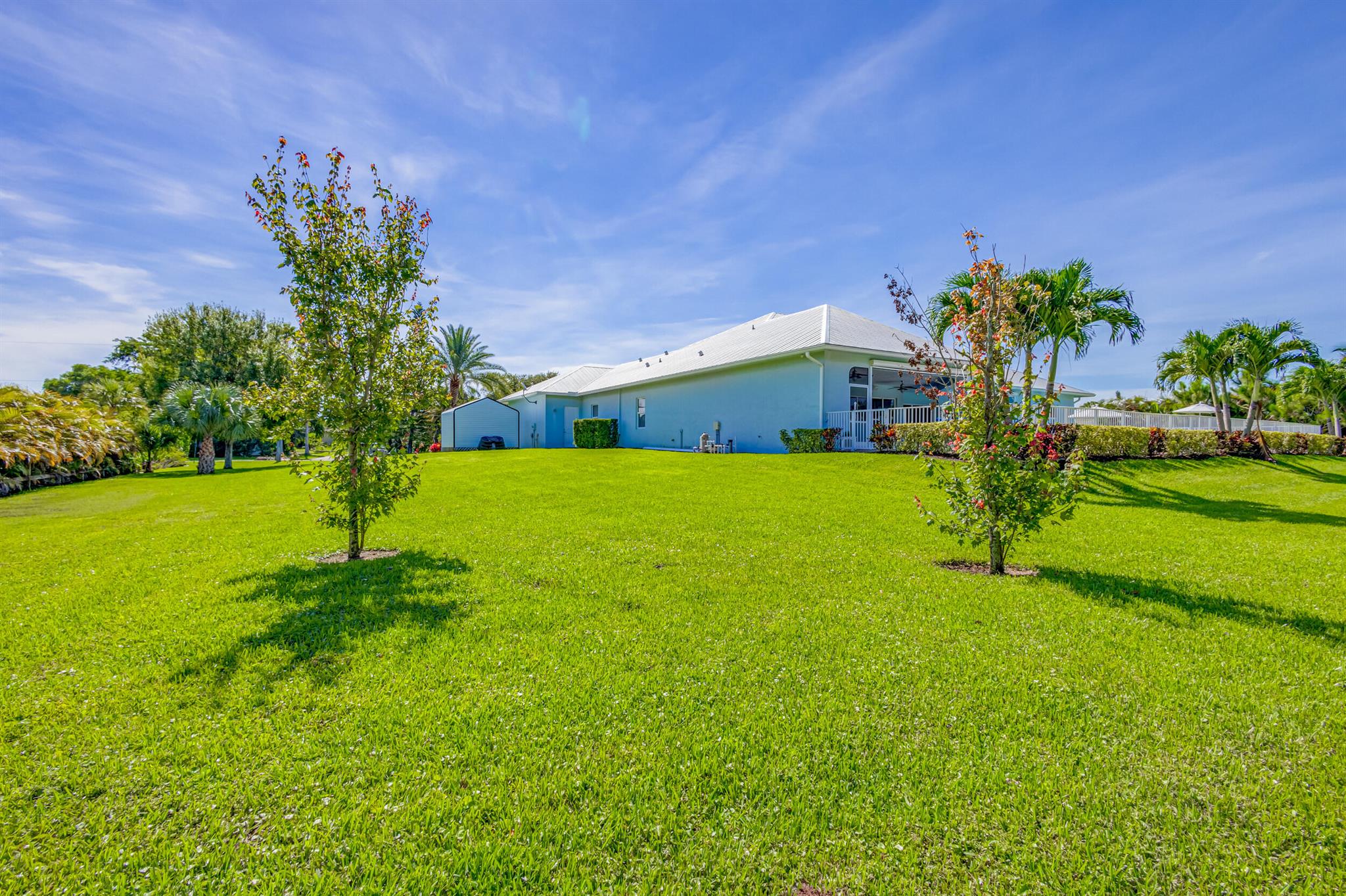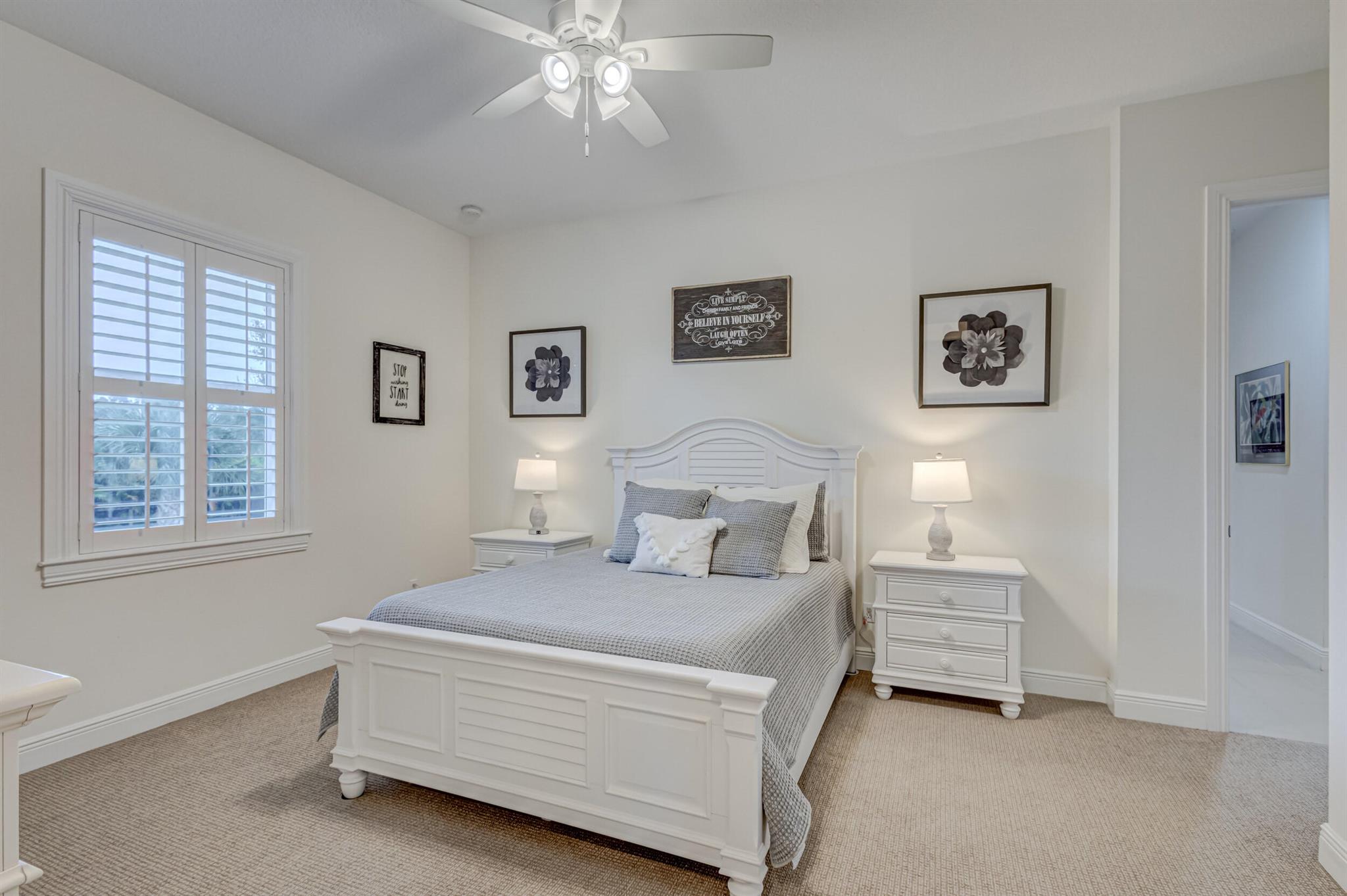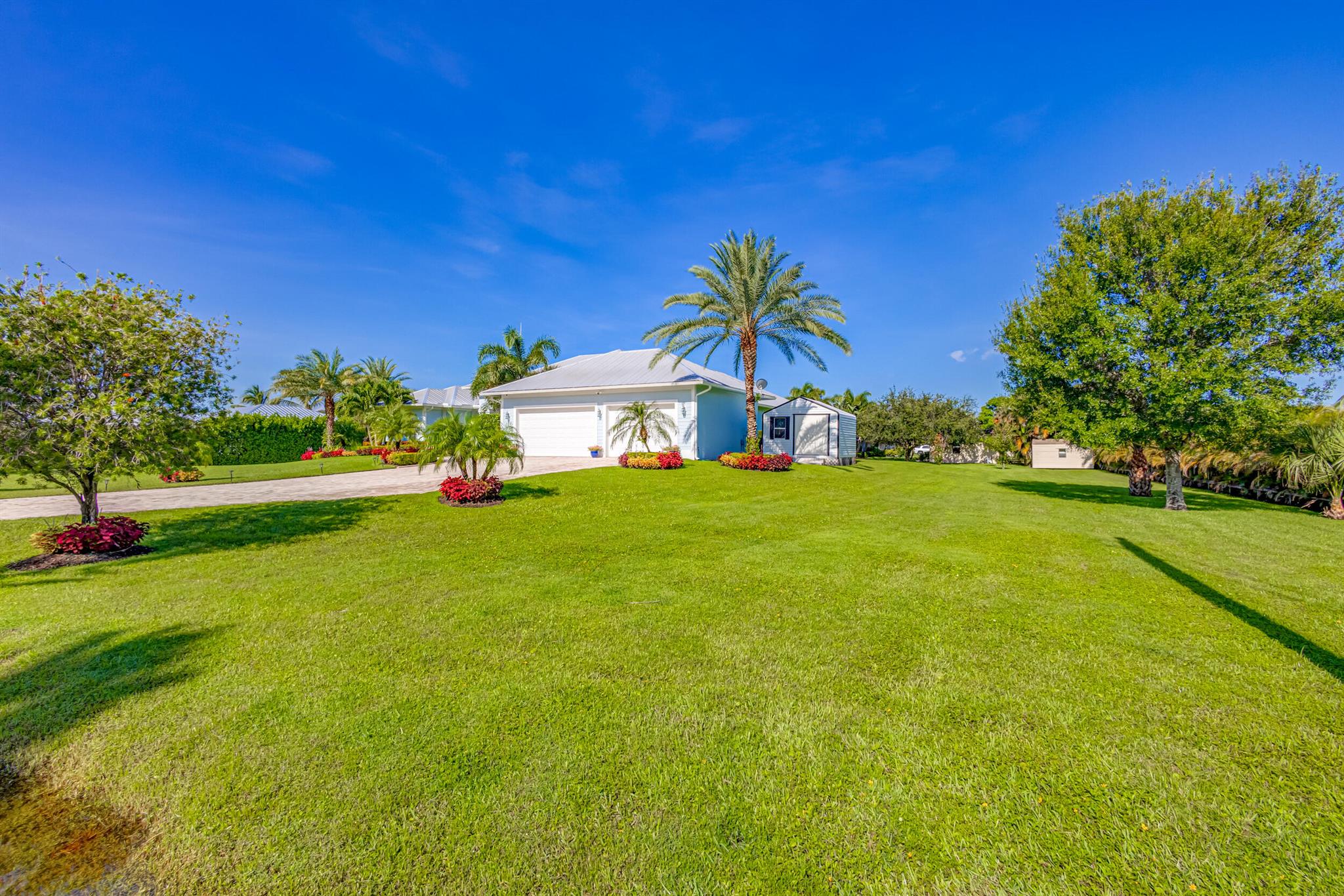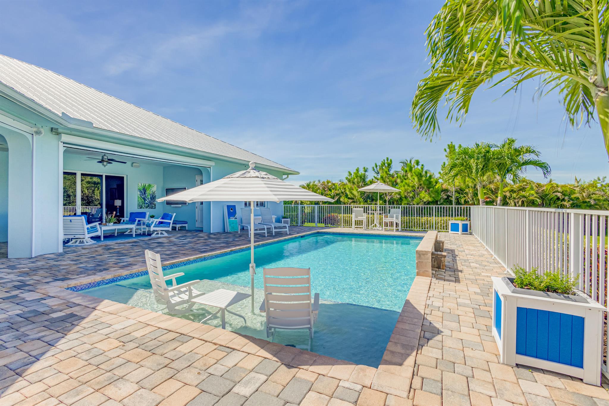 Welcome to your prefect Palm Beach Country Estates home! Built in 2016 on 1.15 acres of high and dry, pristine tropical paradise, this pool home offers 4 bedrooms, 3.5 baths, and over 3800 sqft of elegant Key West style with a stunning outdoor living space! Featuring volume ceilings, full impact glass throughout, an attractive open floor plan and custom plantation shutters throughout. The double entry doors lead to a foyer that views through a sprawling living room onto the patio and pool. Enjoy the tropical Florida outdoor lifestyle with this showstopper backyard! The custom pool features a sunshelf, extended paver patio, and multiple conversation areas to host the perfect sunset soiree. Electric roll down screens protect the patio and summer kitchen. The expansive primary suite features