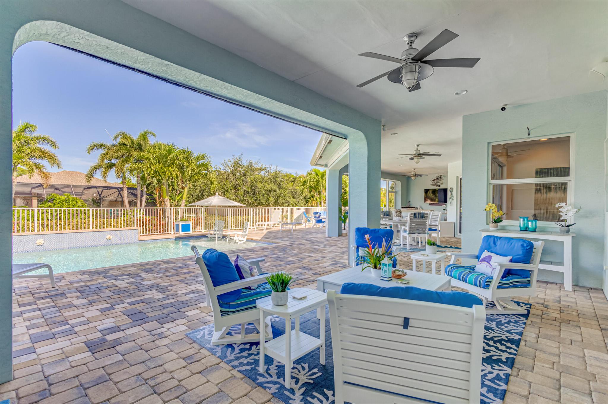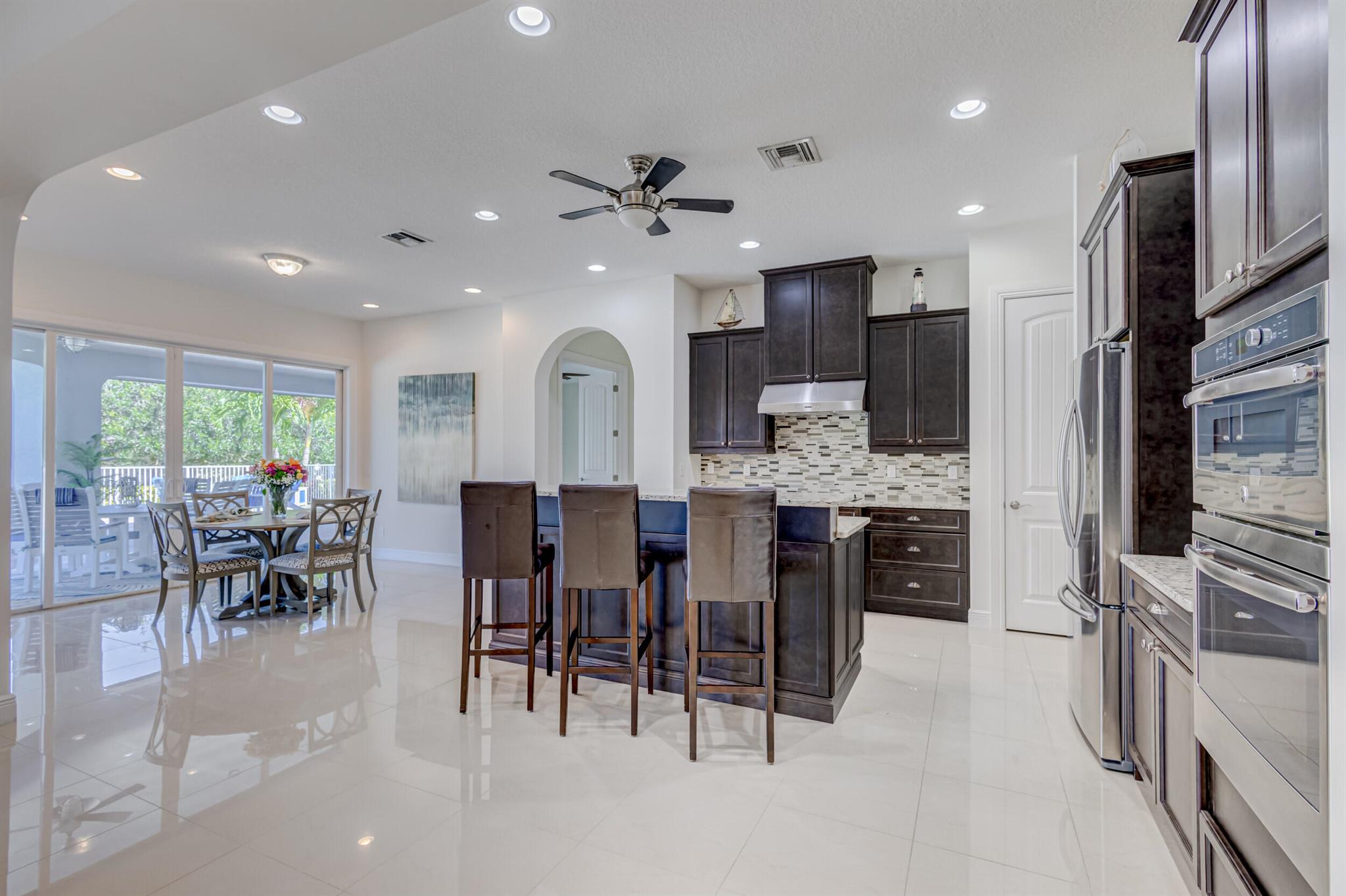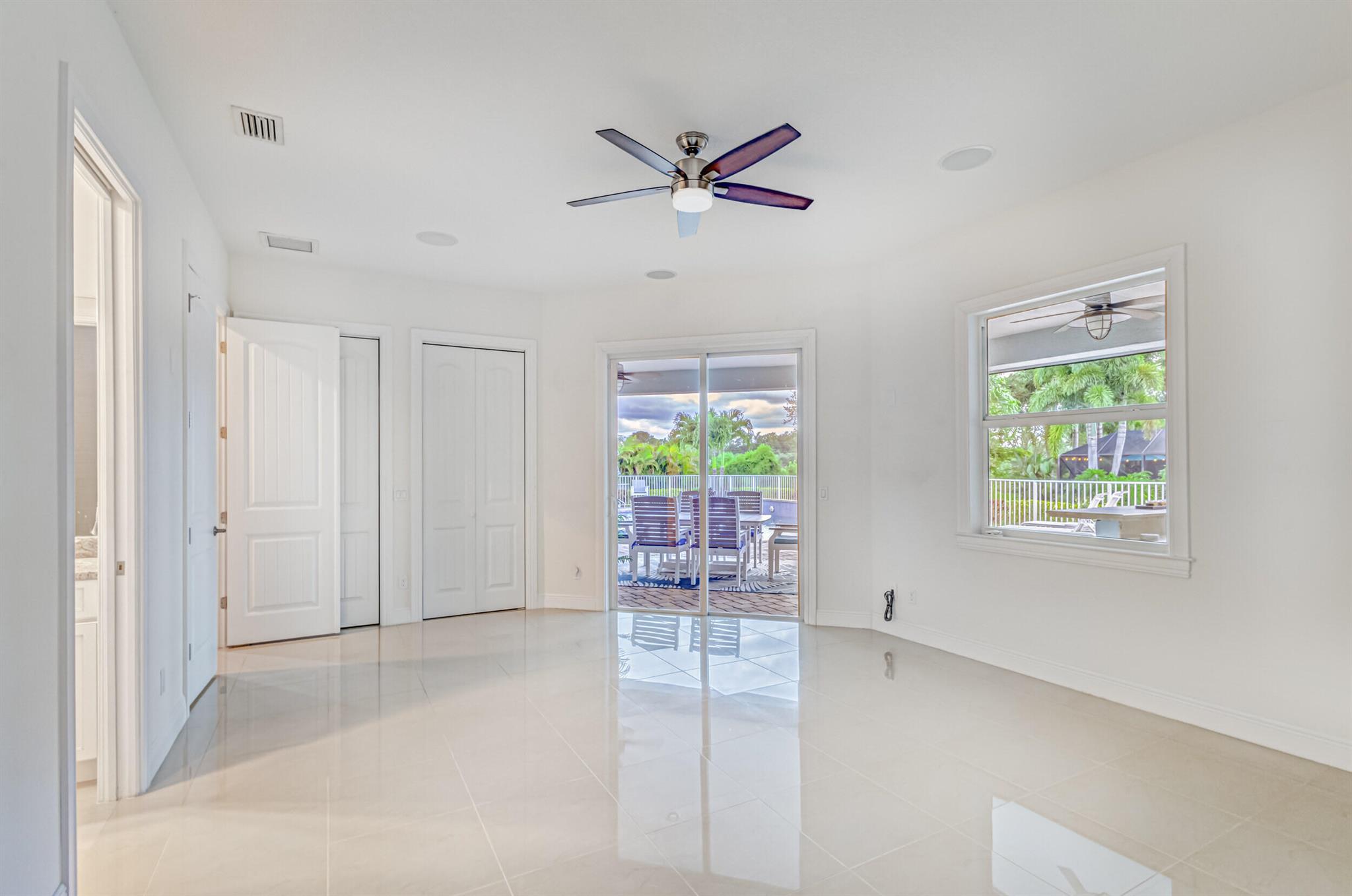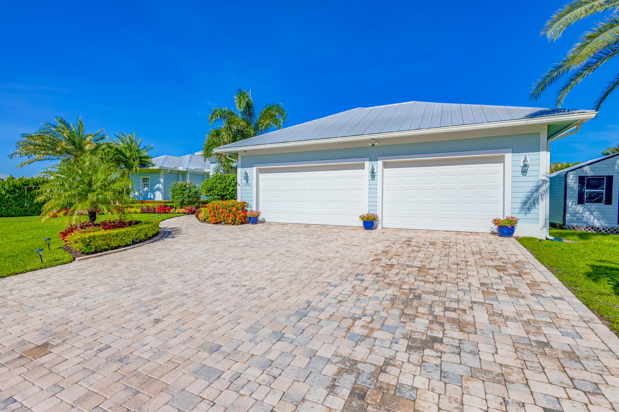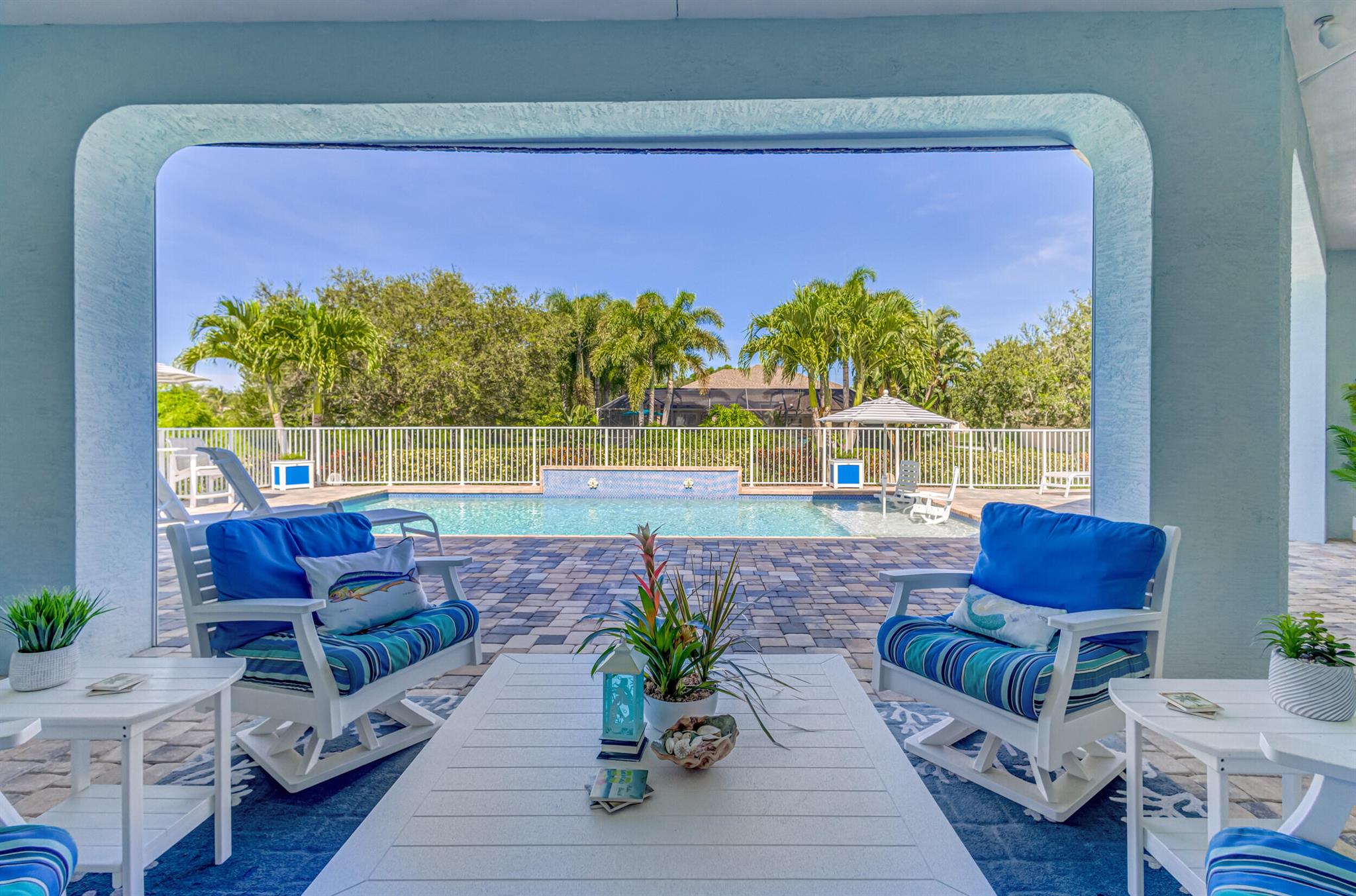Welcome to your prefect Palm Beach Country Estates home! Built in 2016 on 1.15 acres of high and dry, pristine tropical paradise, this pool home offers 4 bedrooms, 3.5 baths, and over 3800 sqft of elegant Key West style with a stunning outdoor living space! Featuring volume ceilings, full impact glass throughout, an attractive open floor plan and custom plantation shutters throughout. The double entry doors lead to a foyer that views through a sprawling living room onto the patio and pool. Enjoy the tropical Florida outdoor lifestyle with this showstopper backyard! The custom pool features a sunshelf, extended paver patio, and multiple conversation areas to host the perfect sunset soiree. Electric roll down screens protect the patio and summer kitchen. The expansive primary suite features