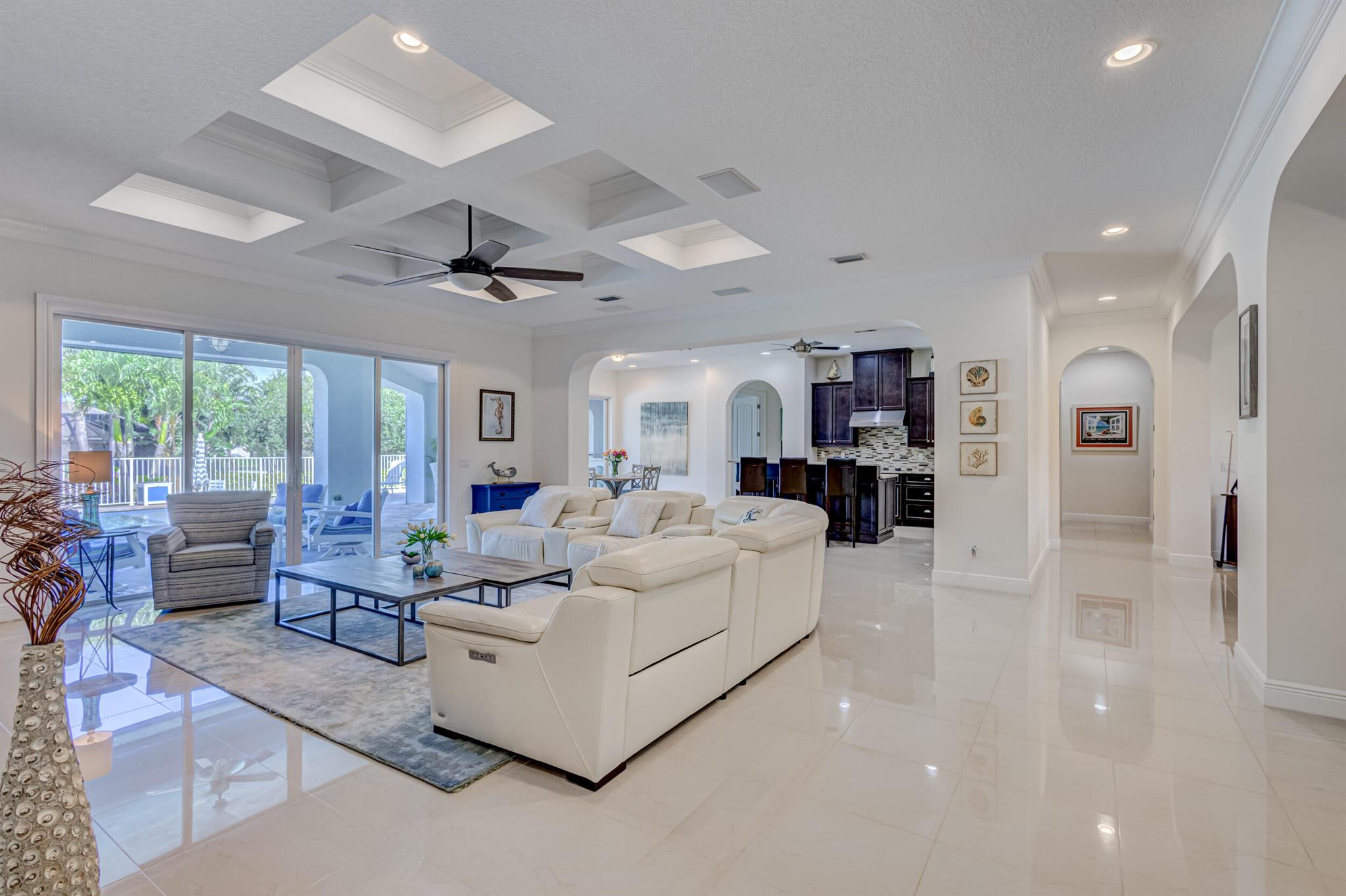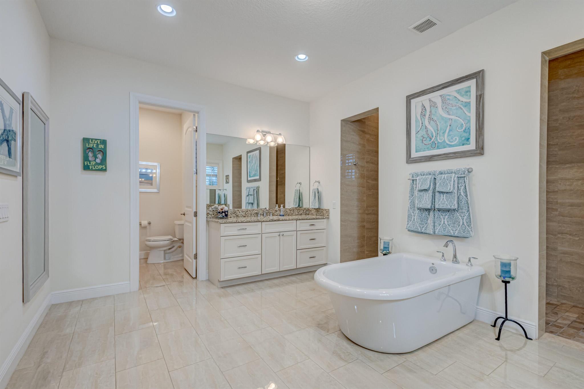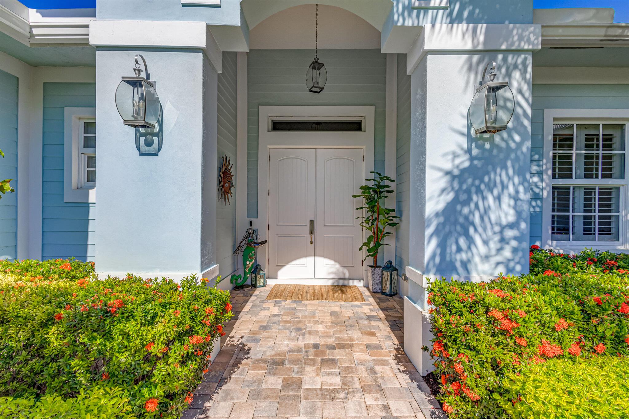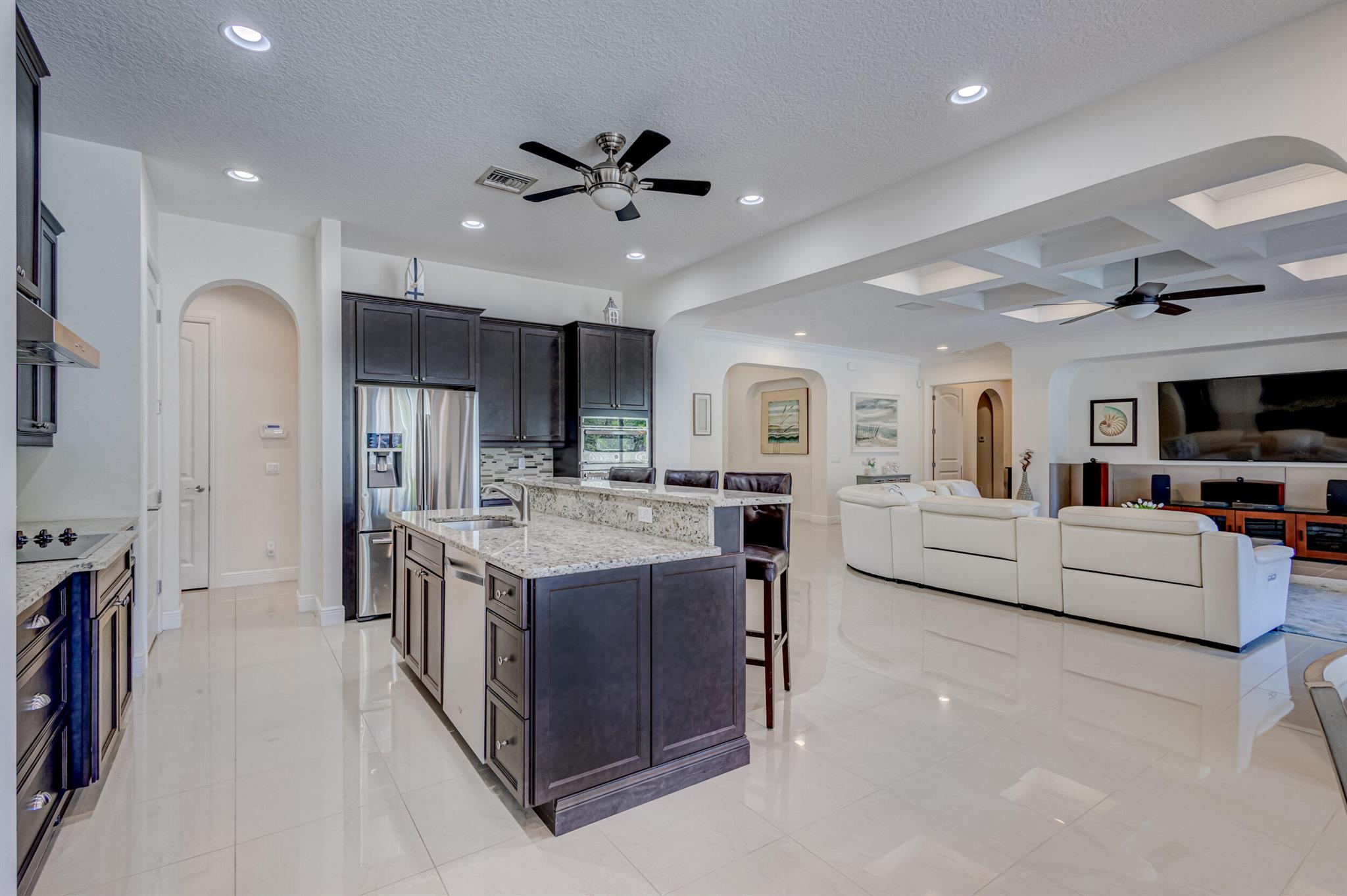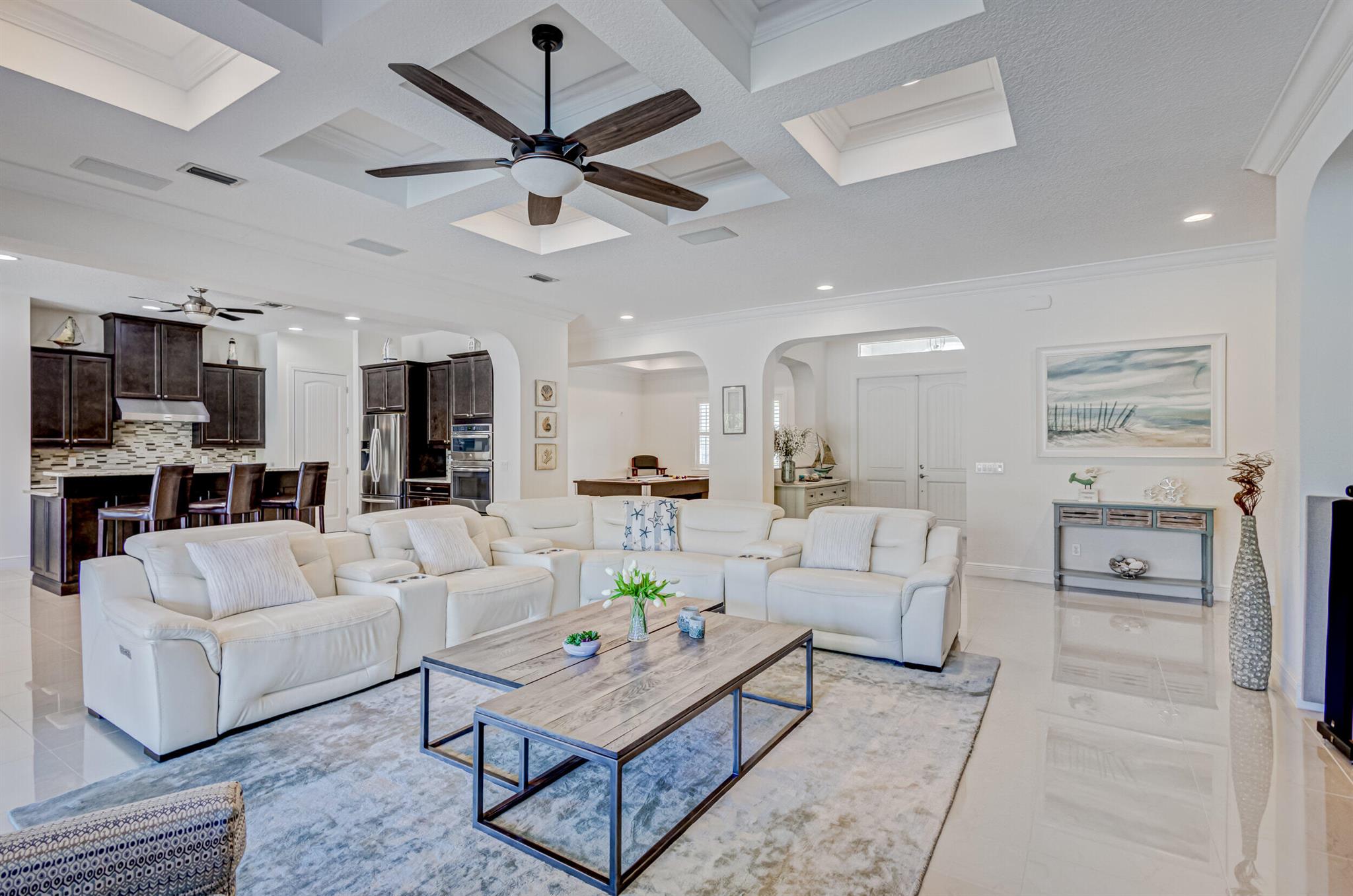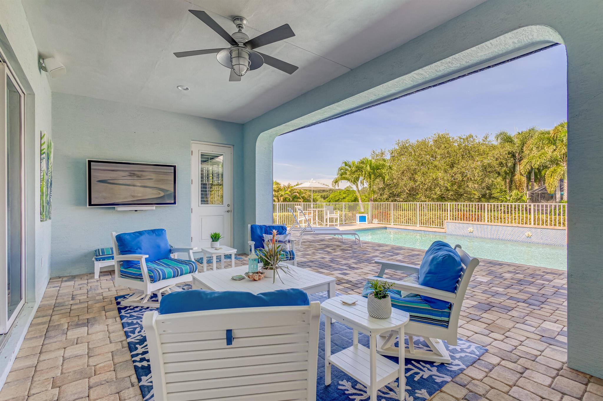 Welcome to your prefect Palm Beach Country Estates home! Built in 2016 on 1.15 acres of high and dry, pristine tropical paradise, this pool home offers 4 bedrooms, 3.5 baths, and over 3800 sqft of elegant Key West style with a stunning outdoor living space! Featuring volume ceilings, full impact glass throughout, an attractive open floor plan and custom plantation shutters throughout. The double entry doors lead to a foyer that views through a sprawling living room onto the patio and pool. Enjoy the tropical Florida outdoor lifestyle with this showstopper backyard! The custom pool features a sunshelf, extended paver patio, and multiple conversation areas to host the perfect sunset soiree. Electric roll down screens protect the patio and summer kitchen. The expansive primary suite features