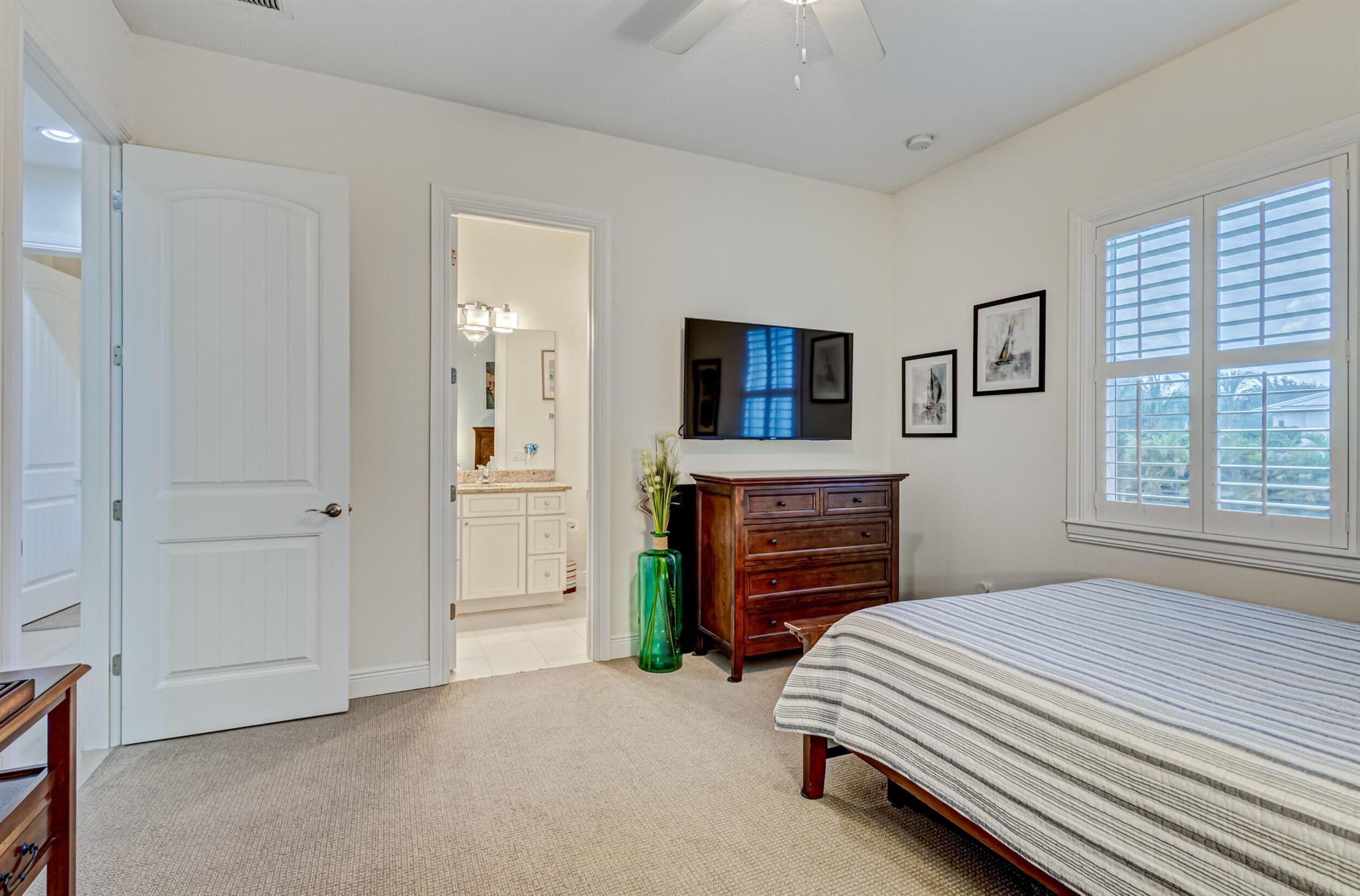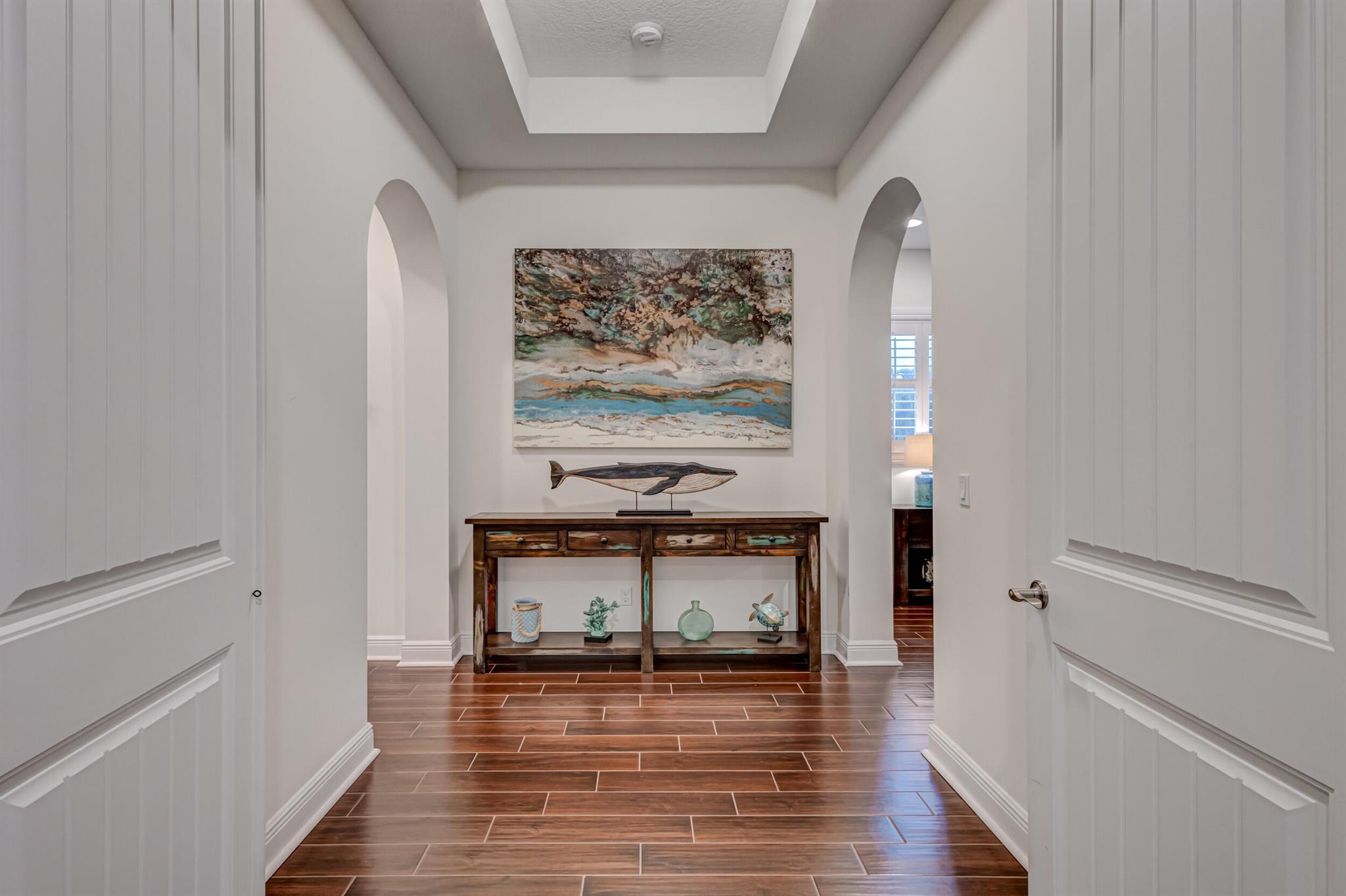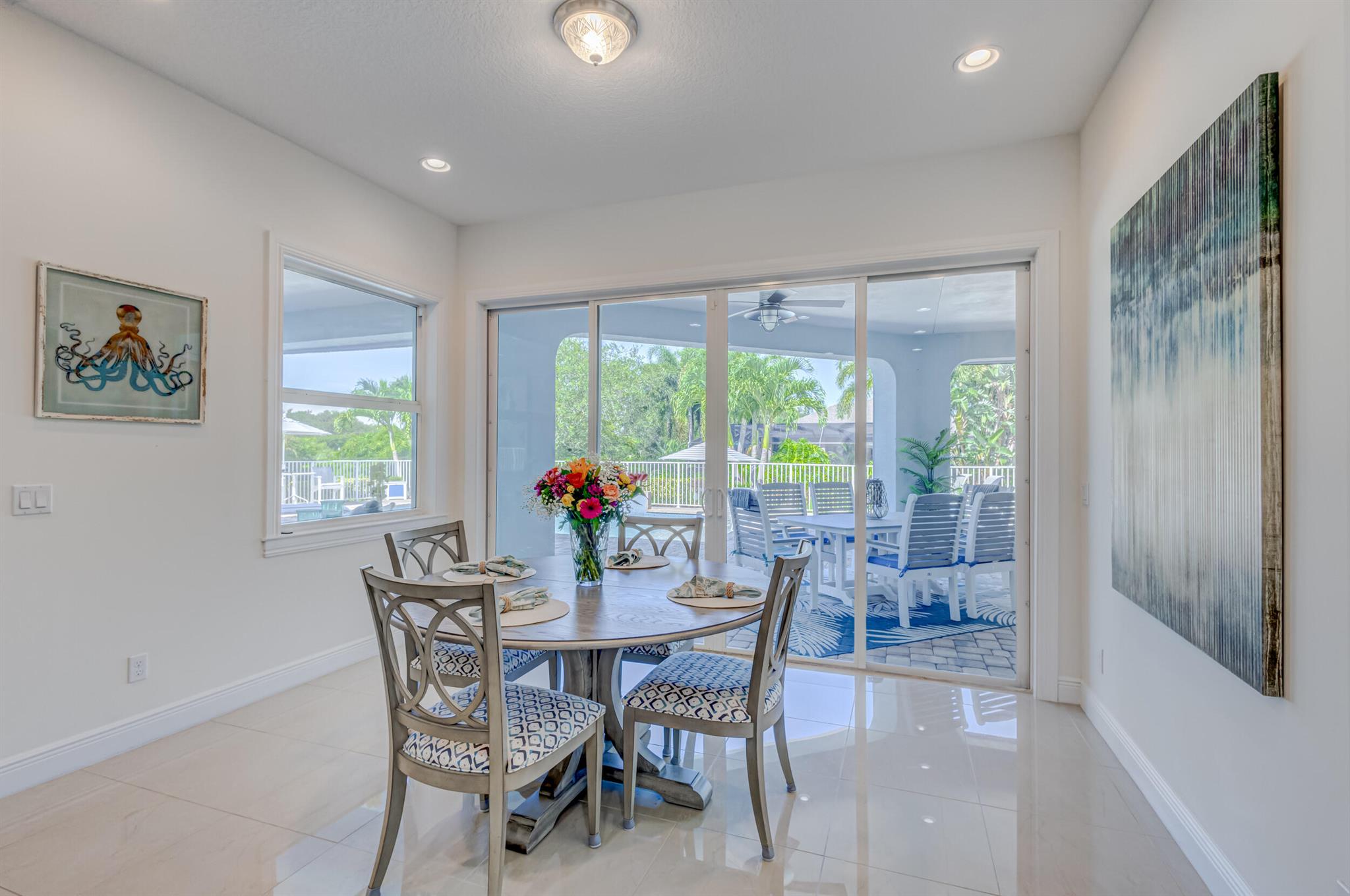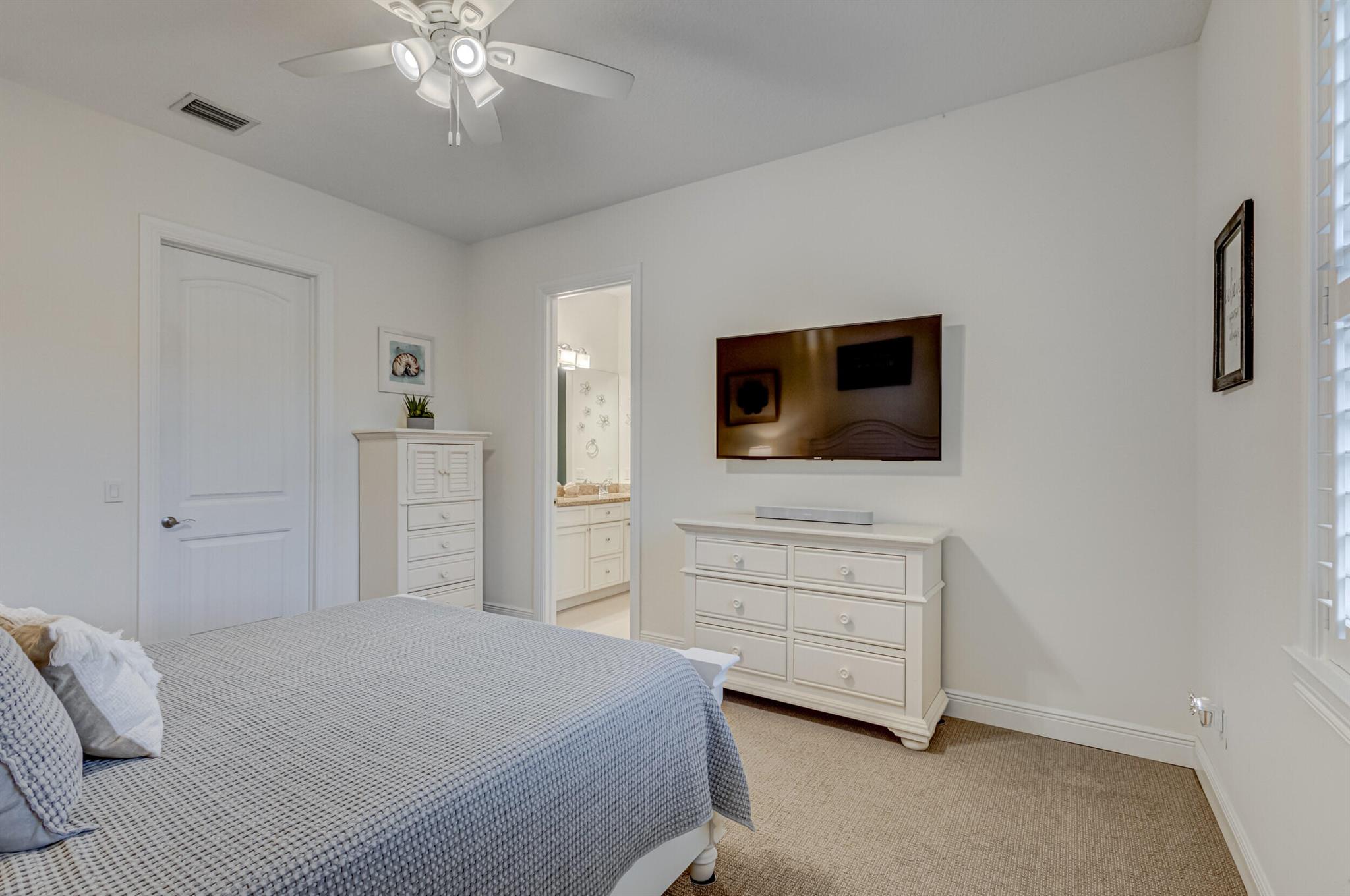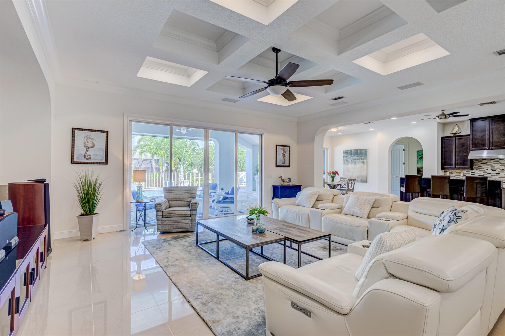 Welcome to your prefect Palm Beach Country Estates home! Built in 2016 on 1.15 acres of high and dry, pristine tropical paradise, this pool home offers 4 bedrooms, 3.5 baths, and over 3800 sqft of elegant Key West style with a stunning outdoor living space! Featuring volume ceilings, full impact glass throughout, an attractive open floor plan and custom plantation shutters throughout. The double entry doors lead to a foyer that views through a sprawling living room onto the patio and pool. Enjoy the tropical Florida outdoor lifestyle with this showstopper backyard! The custom pool features a sunshelf, extended paver patio, and multiple conversation areas to host the perfect sunset soiree. Electric roll down screens protect the patio and summer kitchen. The expansive primary suite features