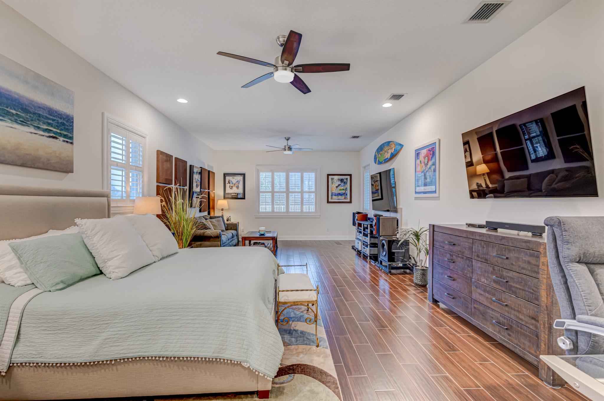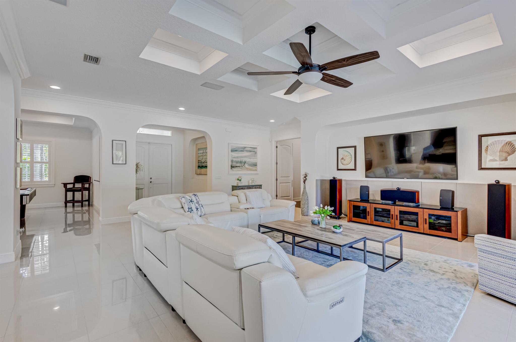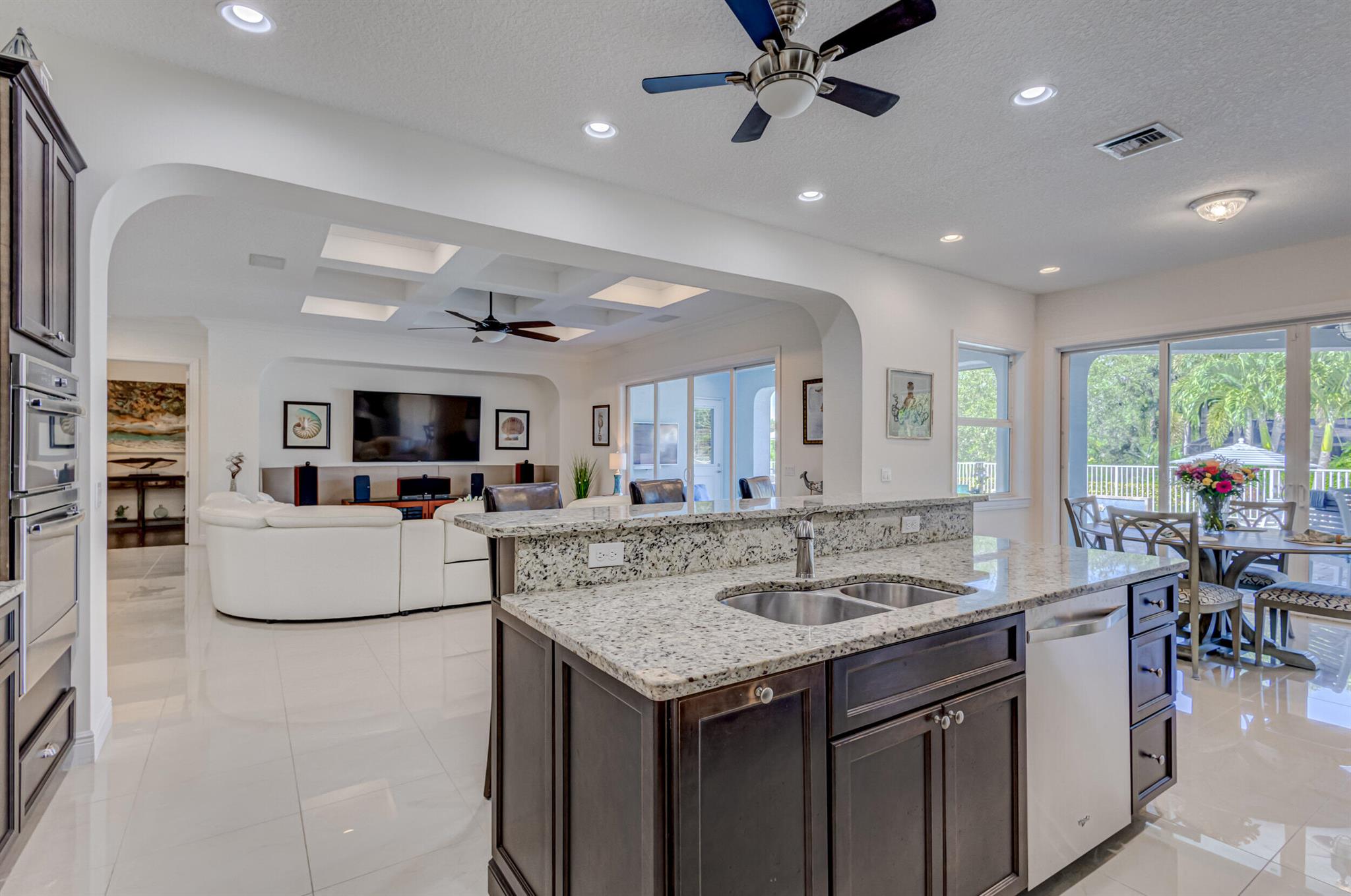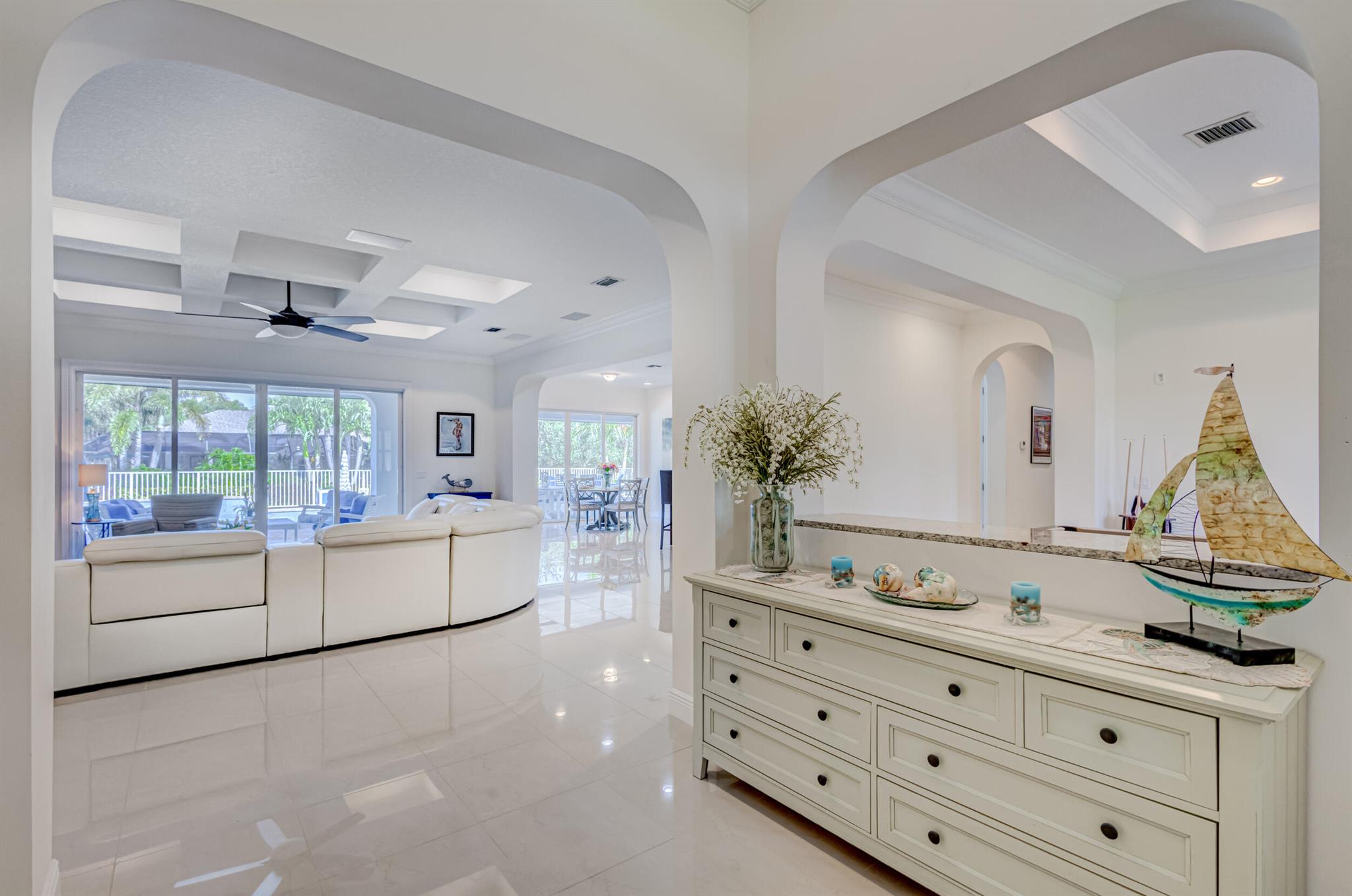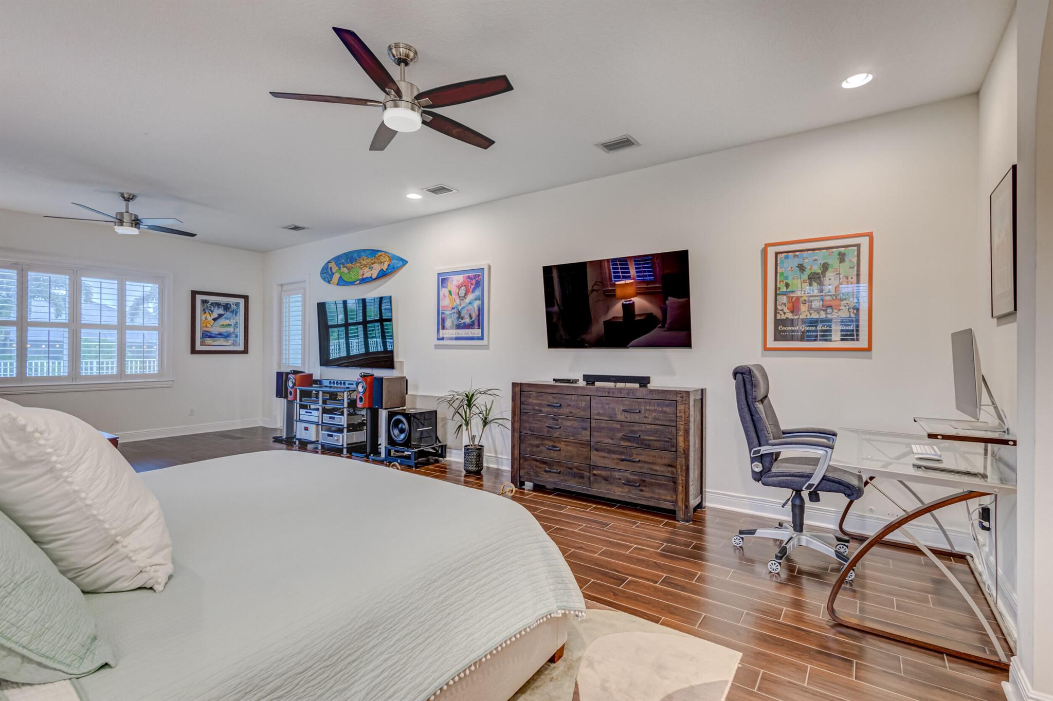Welcome to your prefect Palm Beach Country Estates home! Built in 2016 on 1.15 acres of high and dry, pristine tropical paradise, this pool home offers 4 bedrooms, 3.5 baths, and over 3800 sqft of elegant Key West style with a stunning outdoor living space! Featuring volume ceilings, full impact glass throughout, an attractive open floor plan and custom plantation shutters throughout. The double entry doors lead to a foyer that views through a sprawling living room onto the patio and pool. Enjoy the tropical Florida outdoor lifestyle with this showstopper backyard! The custom pool features a sunshelf, extended paver patio, and multiple conversation areas to host the perfect sunset soiree. Electric roll down screens protect the patio and summer kitchen. The expansive primary suite features