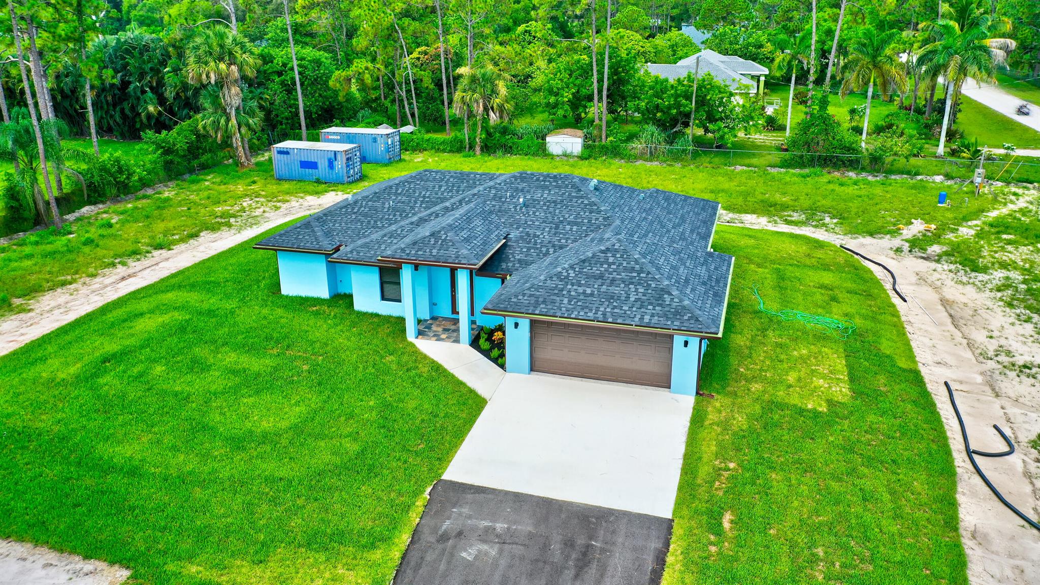 Brand New Home just completed in July 2023, Totaling 2275sqft: featuring 3 bedrooms + den, 2 bathrooms and a 2 car garage, Home sits on 1.37 acres and is on a desirably paved road. Upon entrance you will be greeted with an abundance of natural light pouring in at every angle. You will first walk by a bonus room that is perfect for an office or den. The kitchen custom kitchen includes wood cabinetry and quartz countertops. Master bedroom is large with a spa like bathroom with extra large walk in shower. Complete hurricane impact windows and doors along with a top of the line water softener system. Garage has brand new epoxy flooring. Enjoy the freedoms of Acreage living with NO HOA. Yard is fully fenced. Storage container on property is included in the sale.