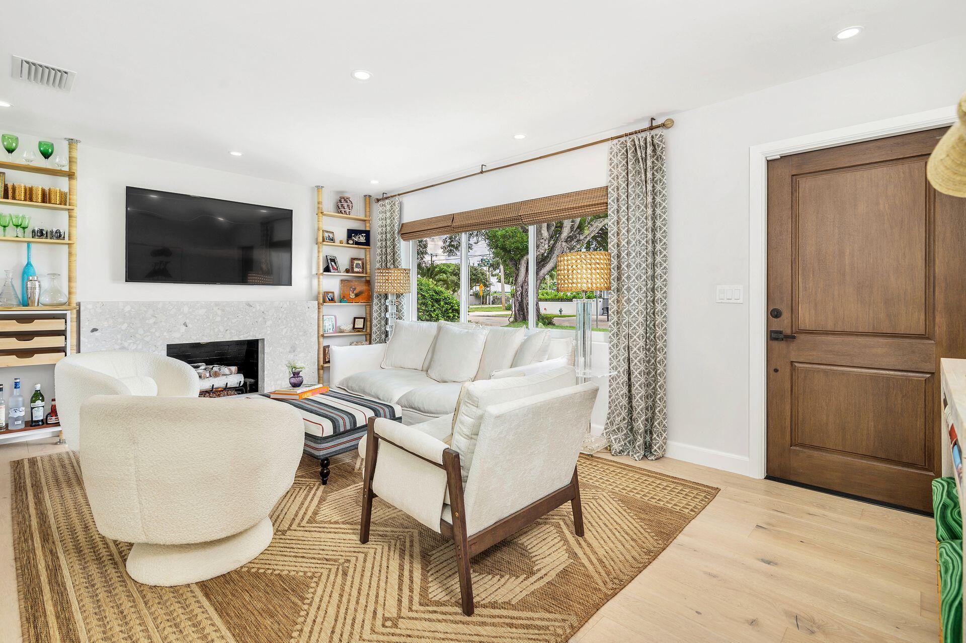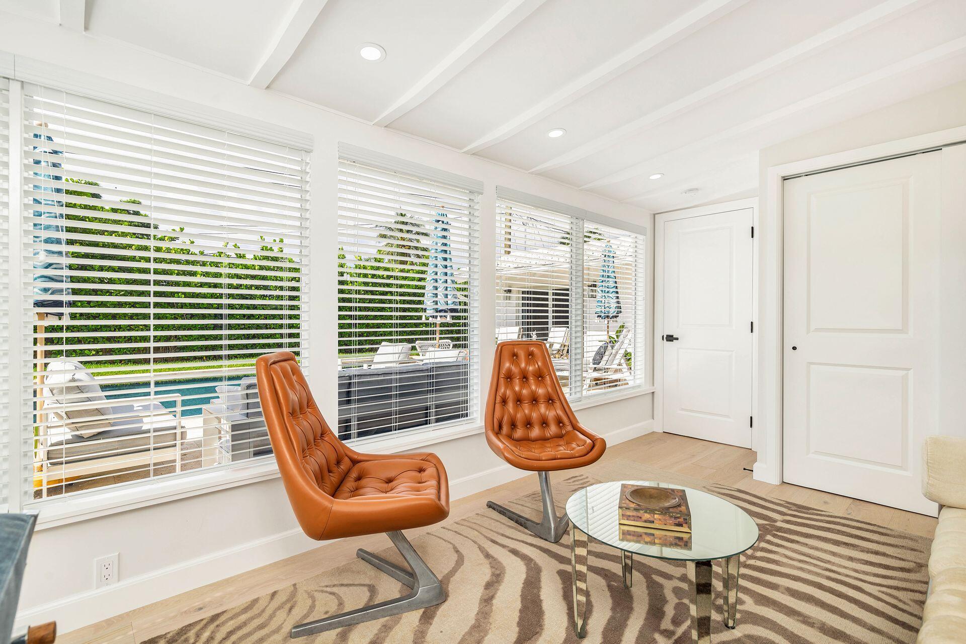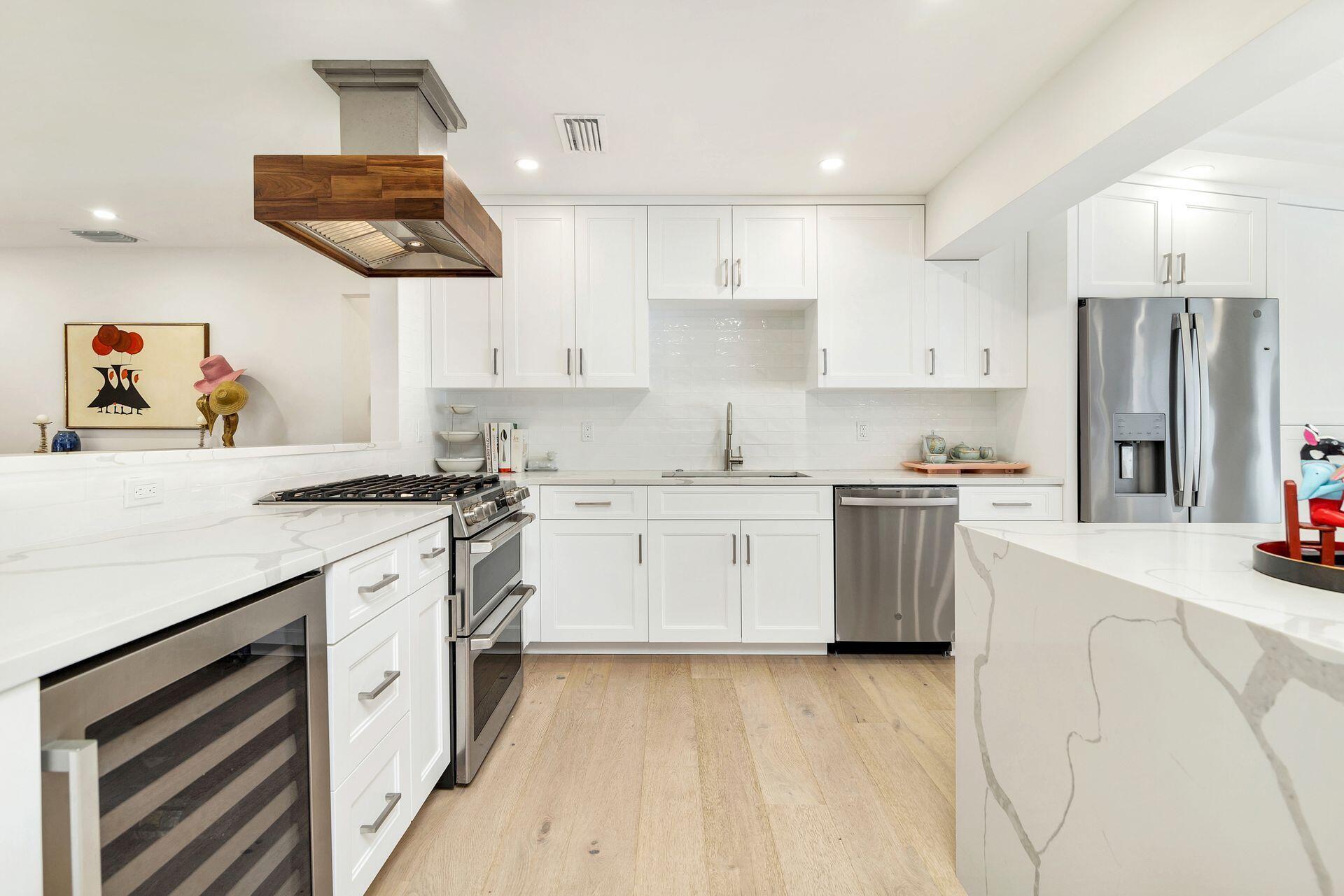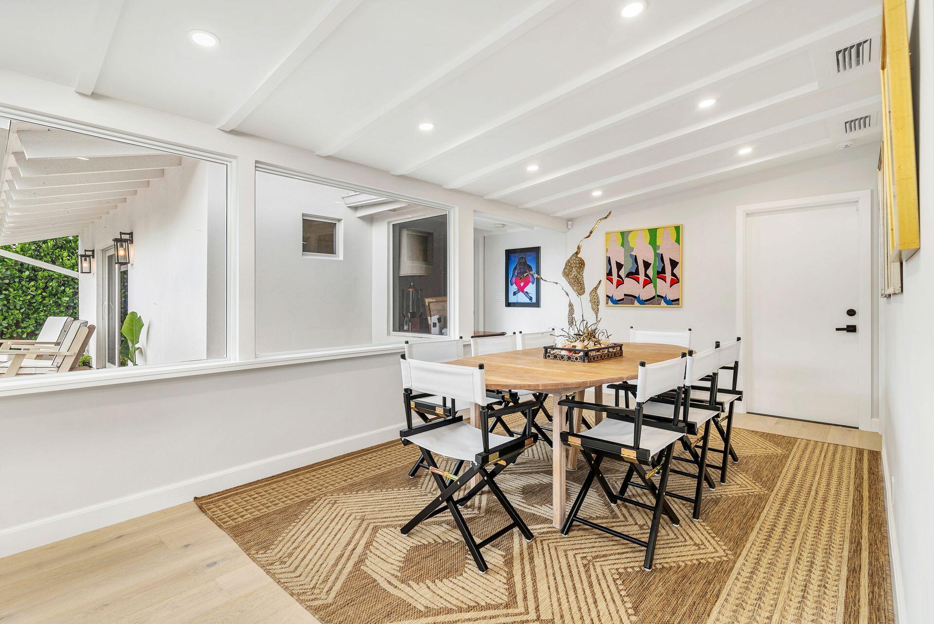 Charming renovated 3 br. + den home. Complete renovation in 2021 and 2022, including all impact windows, French Oak Floors, beamed ceiling, custom cabinetry,quartz counter tops, kitchen island, microwave drawer, stainless steel appliances, wine fridge, gas cooktop. Brand new pool in 2023 with limestone decking, spa. Natural gas linebrought to the house in 2022 with additional remodeling removing an interior wall to kitchen, creating a beautiful open floor plan between kitchen, living, dining room, gas fireplace, gasstove and gas pool heater.. Beautiful views of the pool and deck area from kitchen & dining room, den & living room. Spacious front yard too! 1 car garage.