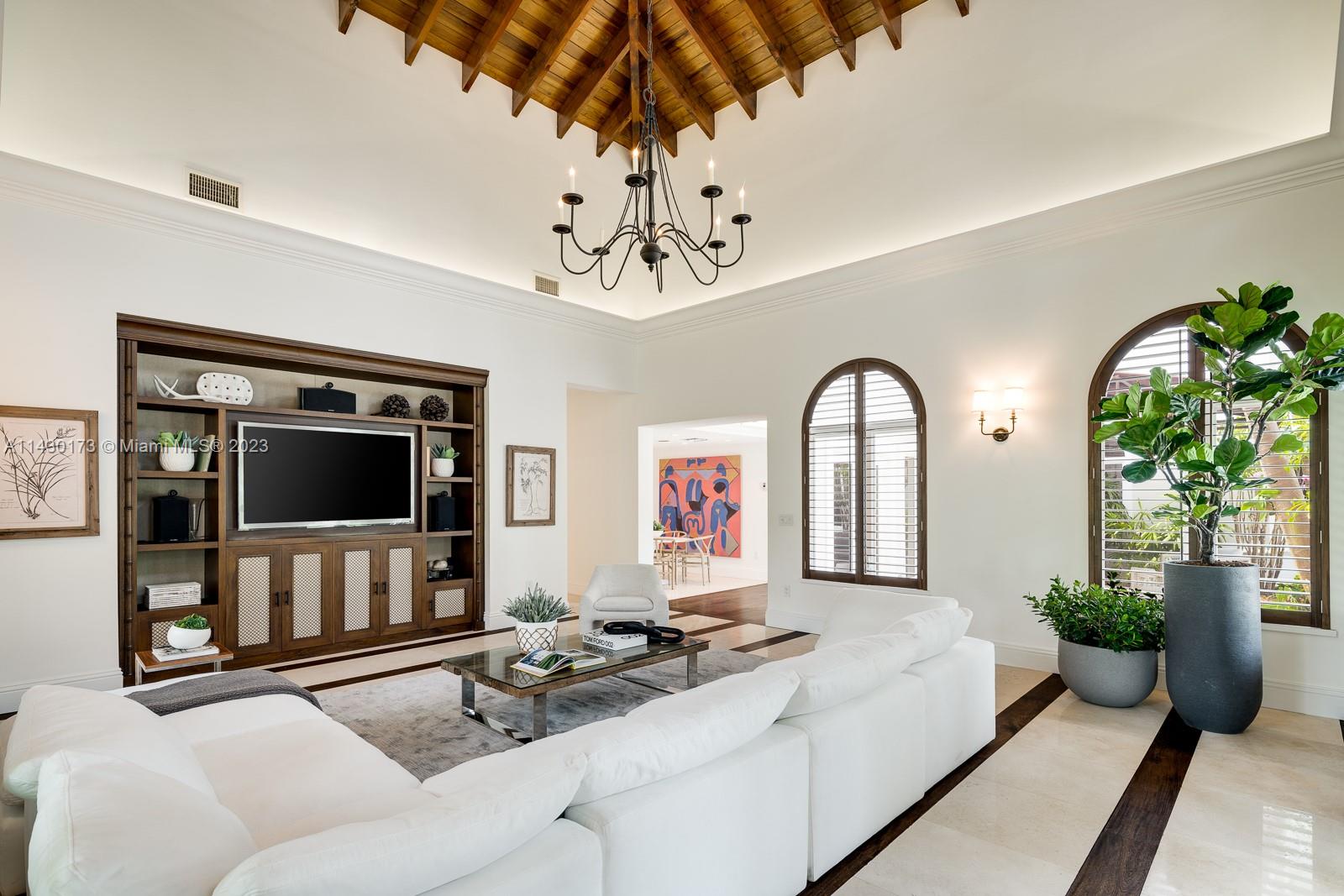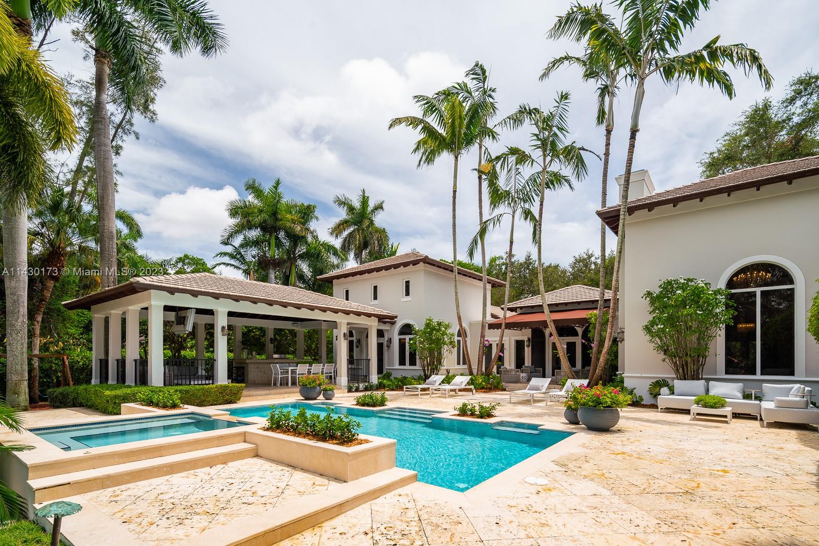 Fantastic opportunity to live on a private cul-de-sac in the exclusive, guard-gated community of Snapper Creek Lakes. Built in 2005, this 6 bed, 7.5 bath 6,528SF home was thoughtfully renovated in 2022, ensuring modern comforts and stylish living. This home boasts vaulted and beamed volume ceilings and abundant light throughout. A desirable layout features a primary suite on second level, formal living and dining rooms, an ample chef’s kitchen, and a spacious pool area with decks and gazebo perfect for entertaining. Ideal family home with basketball court, batting cage, playground, and ample yard. Snapper Creek Lakes provides amenities such as a private marina available to residents only, a clubhouse, and a 24/7 security patrol.