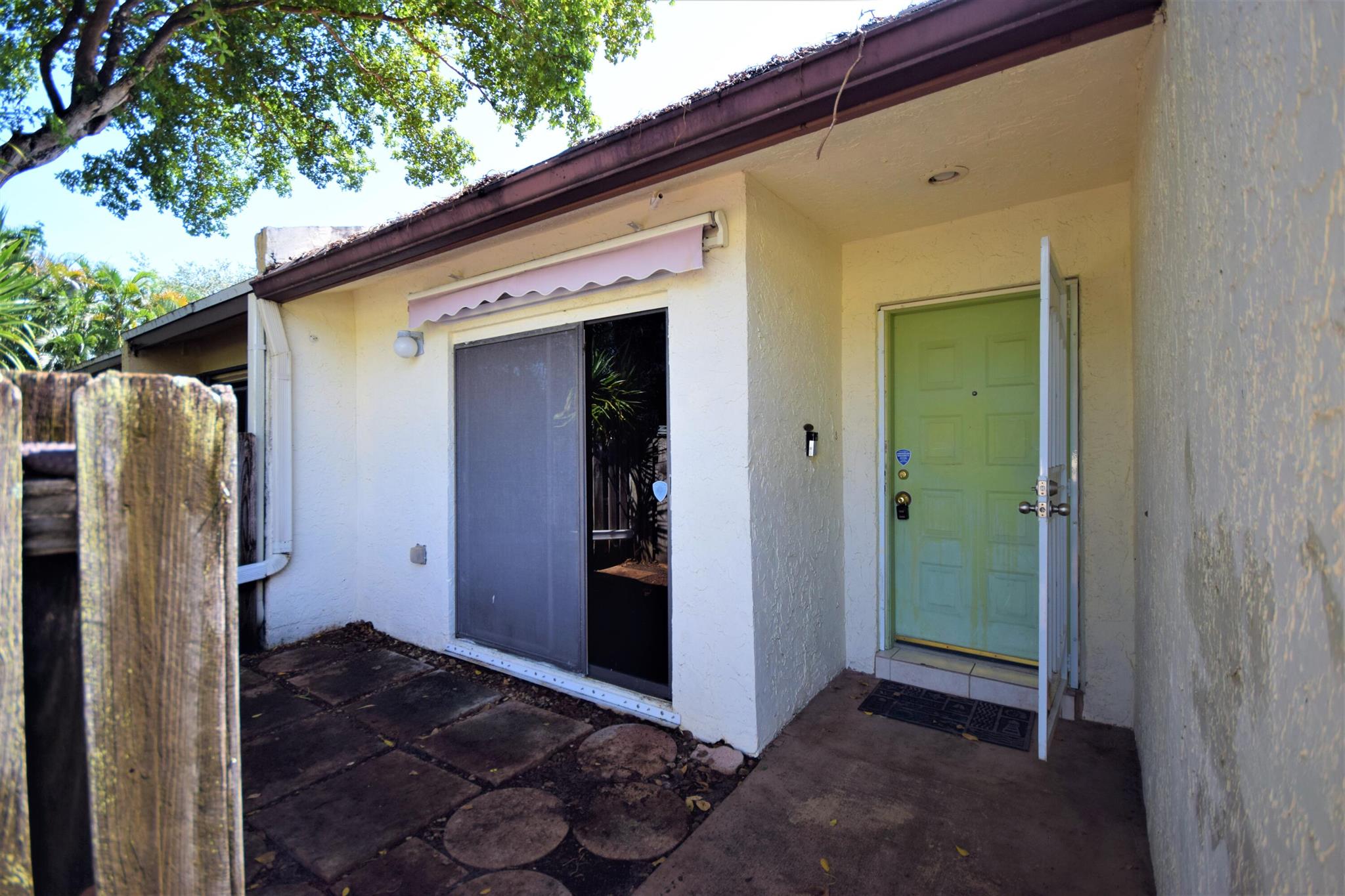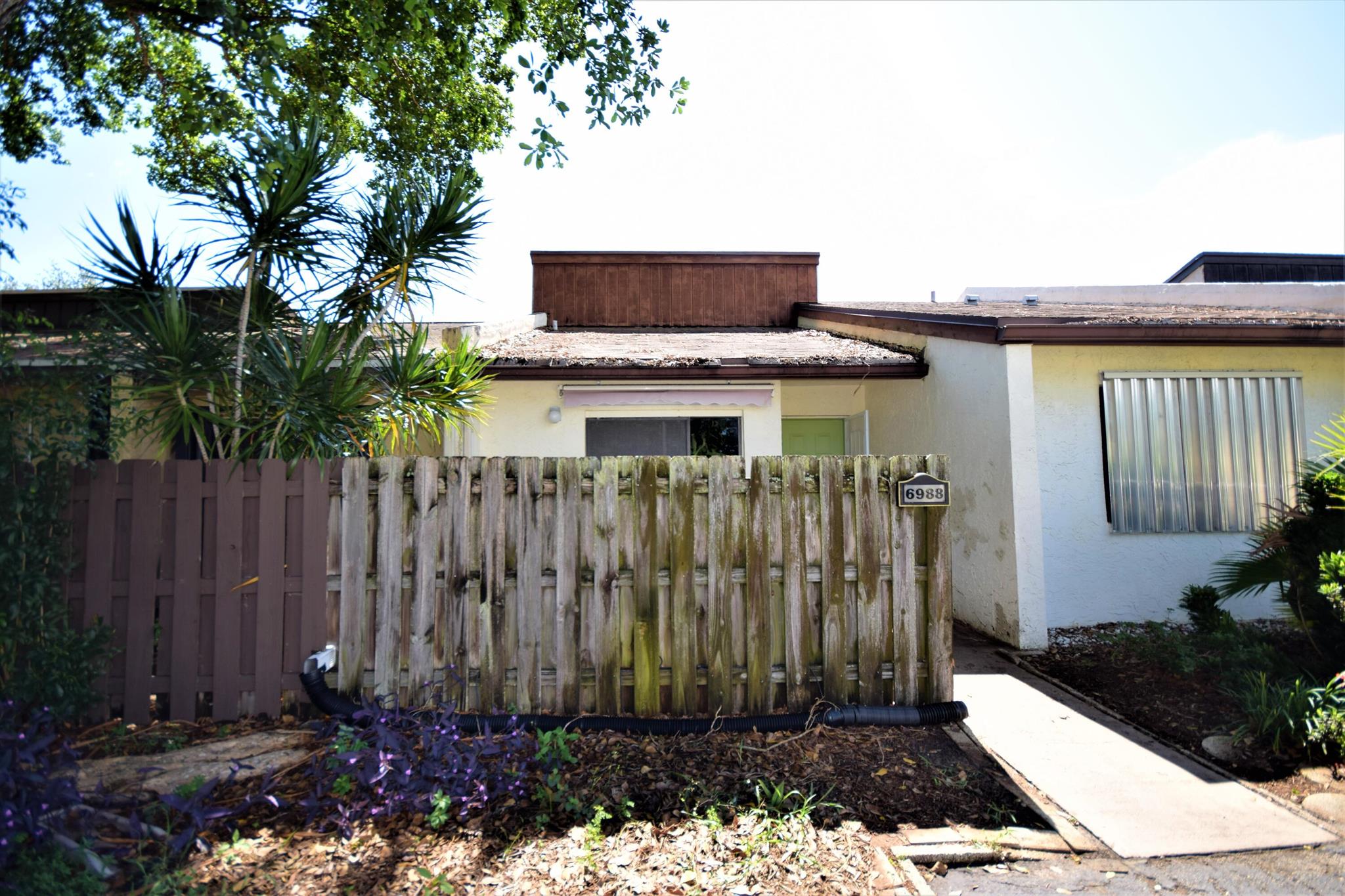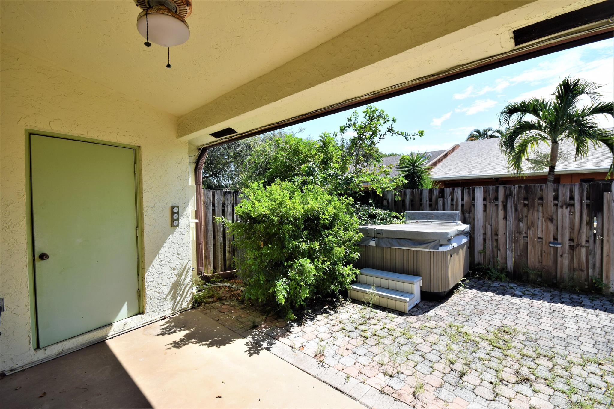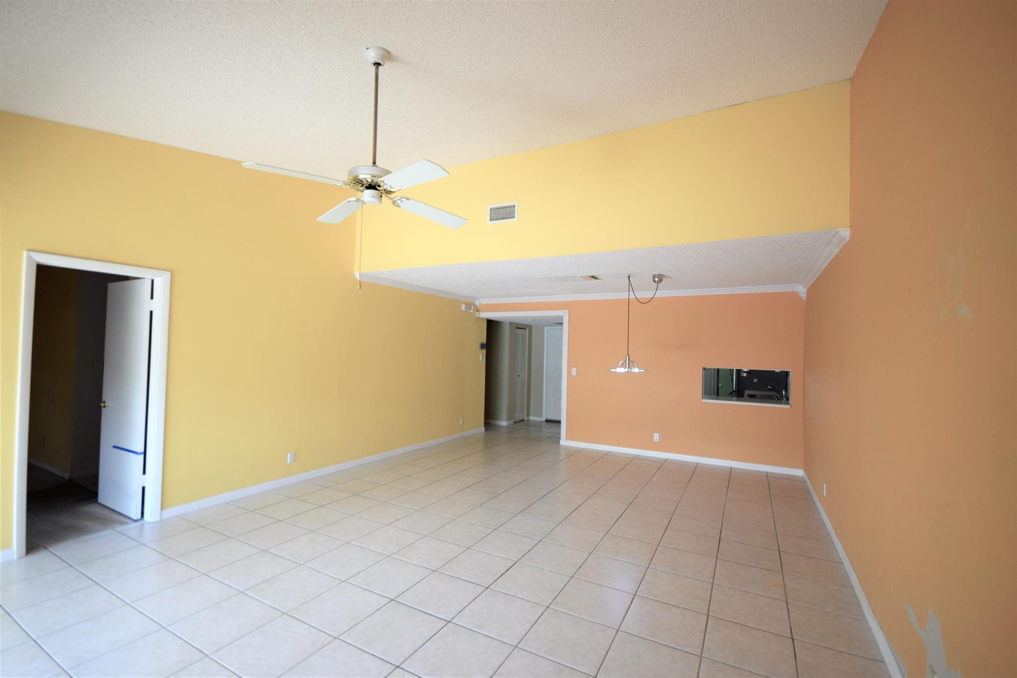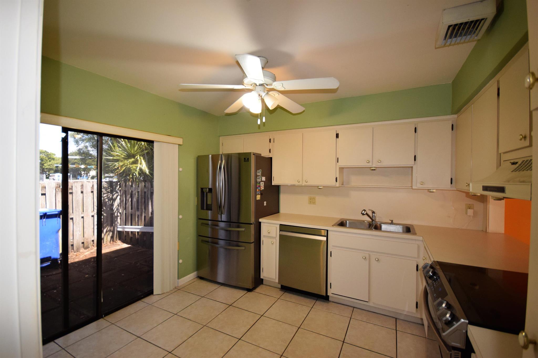 Welcome to this Two Bedroom Two Bath single story villa located in all ages community of Palm Aire Village. This villa features a charming front courtyard with sliders from the kitchen providing a cozy and intimate outdoor space to relax and entertain. Inside the villa features a split bedroom floor plan, tile throughout the living areas, newer kitchen appliances and a vaulted ceiling. The bedrooms are both carpeted and Master Bedroom features an en suite bathroom and walk in closet. The oversized utility room has a washer and dryer and room for storage. The fully fenced backyard area features a covered patio and a large open patio with pavers. This property presents a fantastic opportunity to buyers looking for a renovation project. No HOA and pet-friendly!