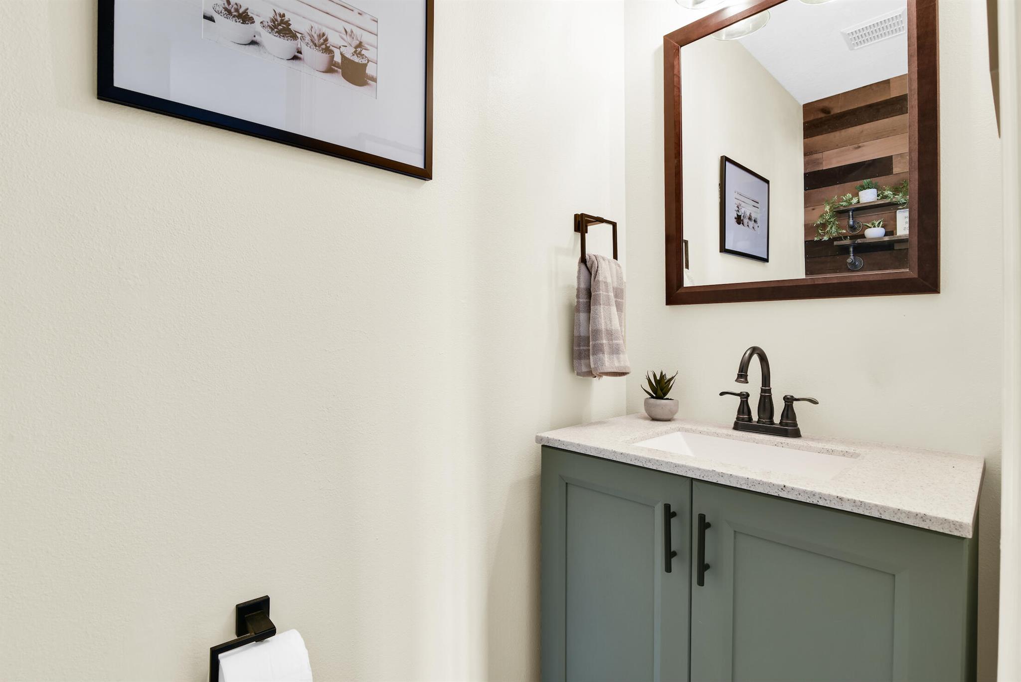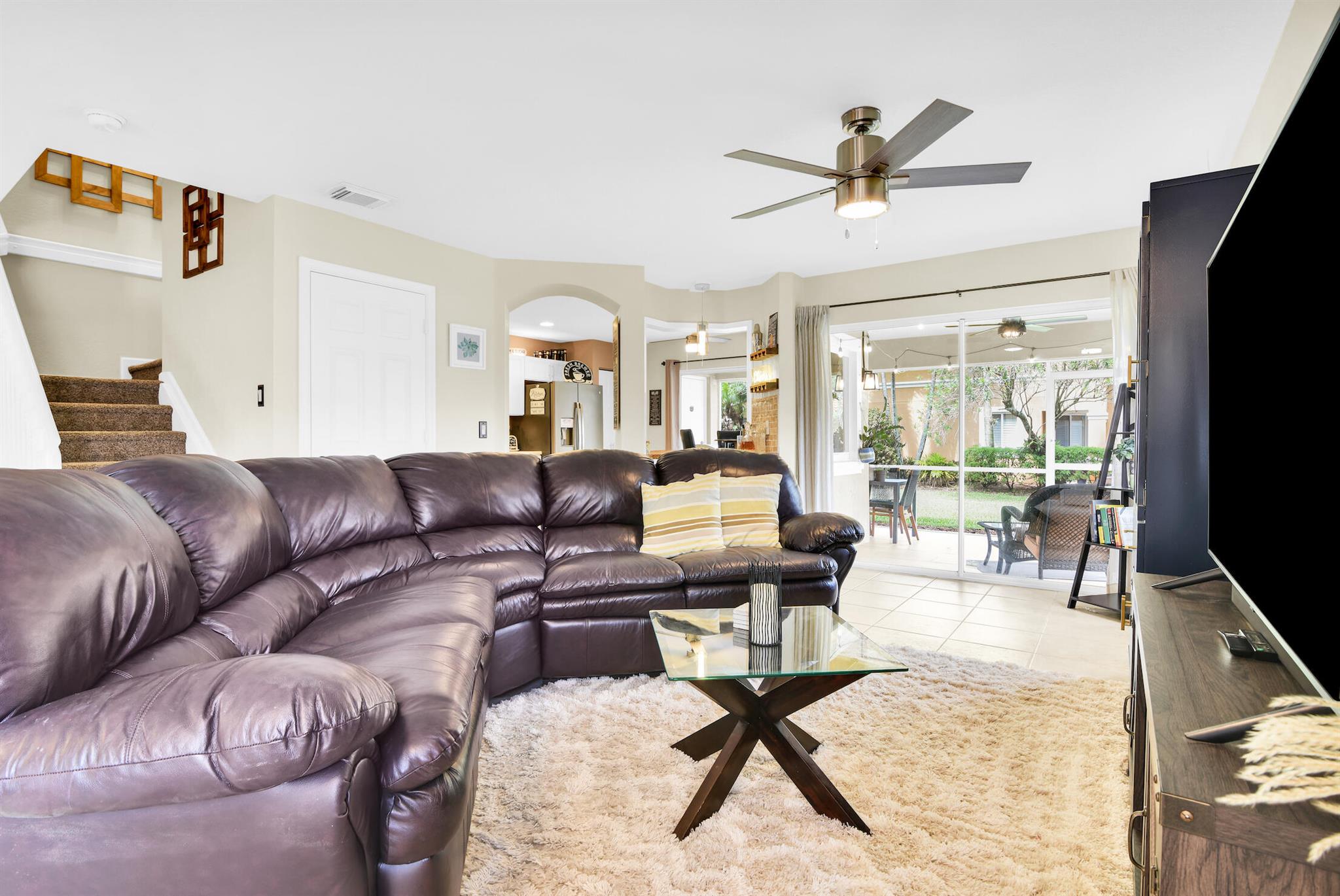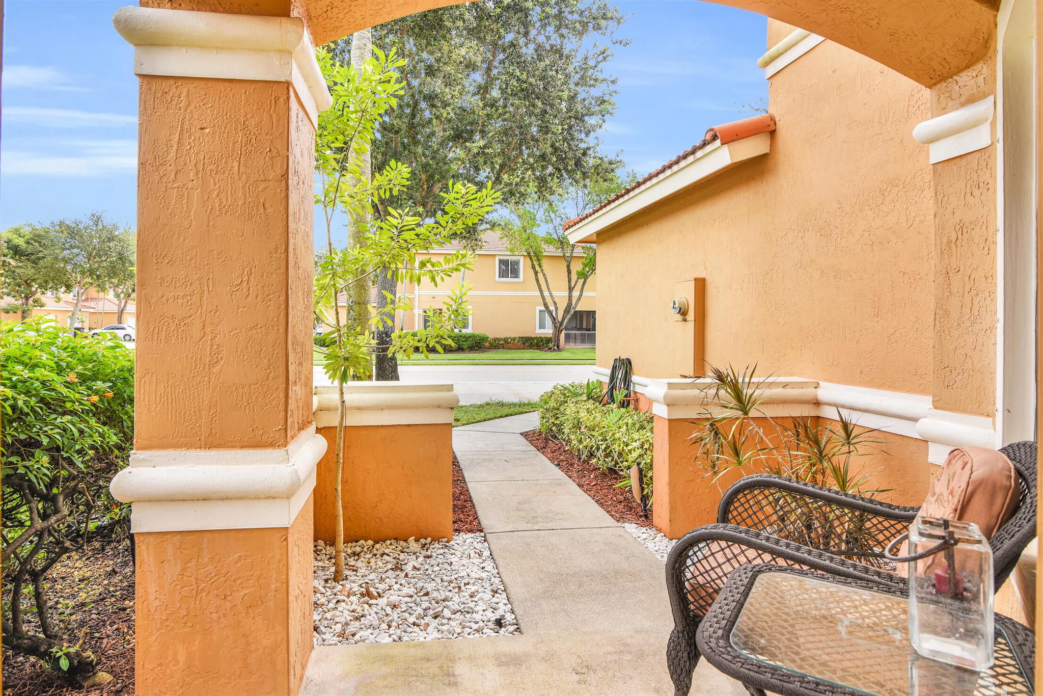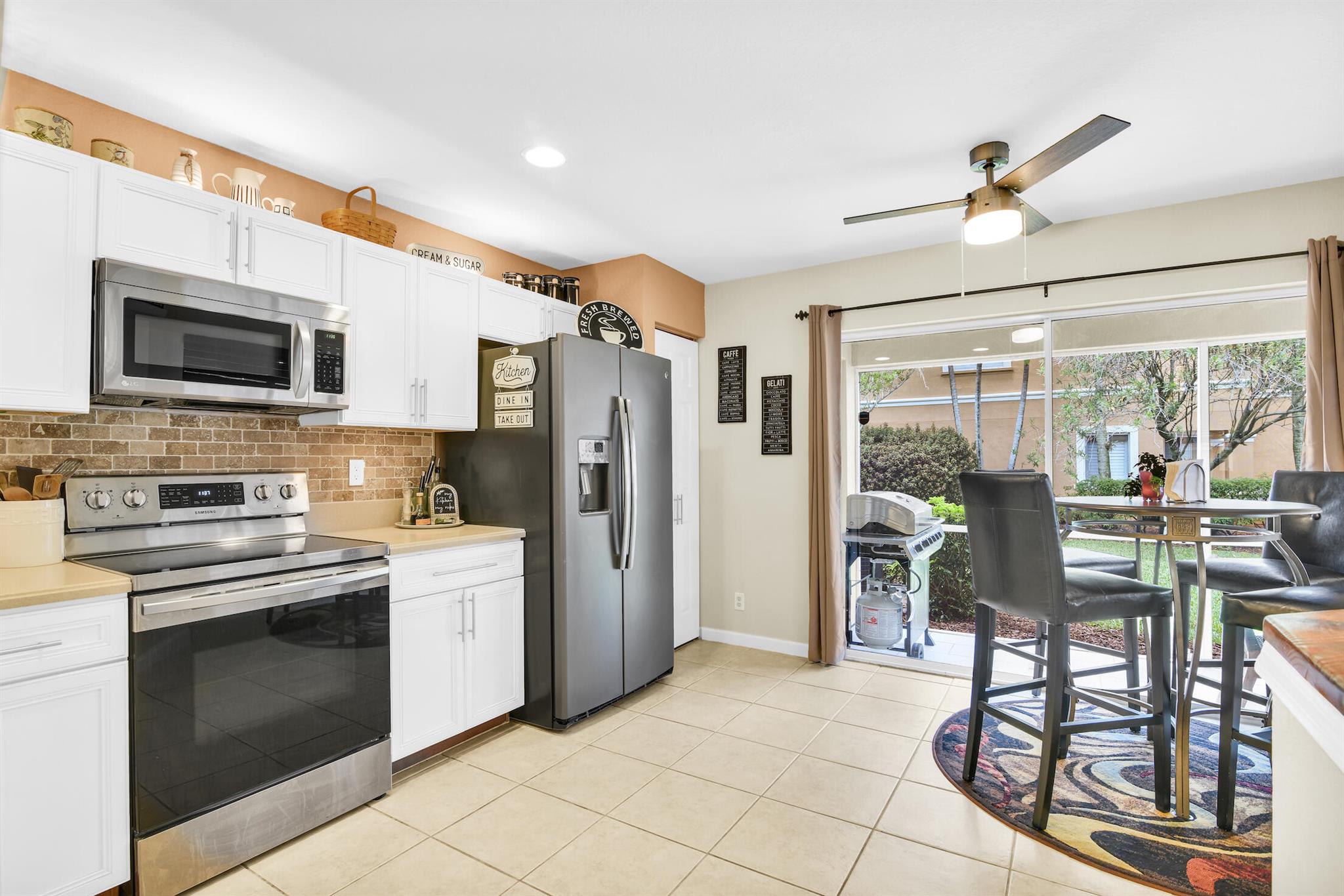 Welcome to this stunning 3 bed 2.5 bath light and bright corner unit townhome in a desirable centrally located gated WPB community with low HOA dues. Close to the Turnpike and other major thoroughfares. This spacious townhome has a bonus loft, which can be used as a den/office/playroom, providing endless possibilities! This home features many upgrades, including fresh interior paint, upgraded floor/wall tiles & modern fixtures throughout. The kitchen features upgraded cabinets with custom lighting, Corian countertops, stainless steel appliances, new backsplash, and a custom-built kitchen bar with mini fridge. The bathrooms have been remodeled and include modern vanities with upgraded counter tops, LED lighting and upgraded hardware & fixtures.