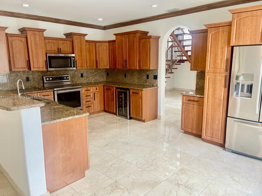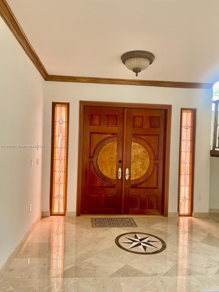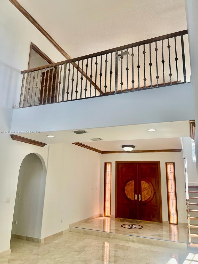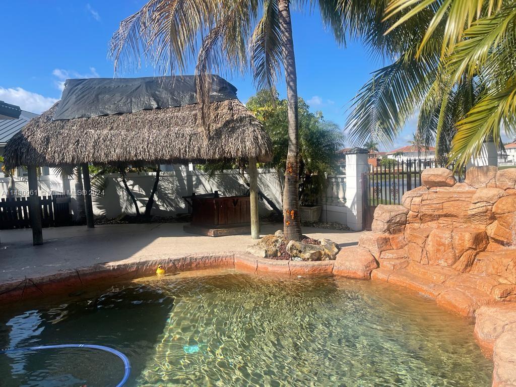 This lakefront home has an elegant stairwell that leads up to the a large master bedroom with an updated master bathroom with a hot tub and bidet. The upstairs also has 2 large bedrooms with a full bathroom and a loft which possibly can be a 5th bedroom. The home features a fourth large bedroom on the first floor for in-law quarters or a guest bedroom with a full bathroom downstairs. Beautiful Marble floors on the ground floor and wood floors on the second level. The gourmet kitchen opens to the family room and breakfast nook, beautiful living room, and formal dining . French doors open to the patio with A Chickee hut, an outdoor bar, and a pool with a jacuzzi by the serene lake. Possible seller contribution . This house is located by Miami Lakes in Unincorporated Miami-Dade.