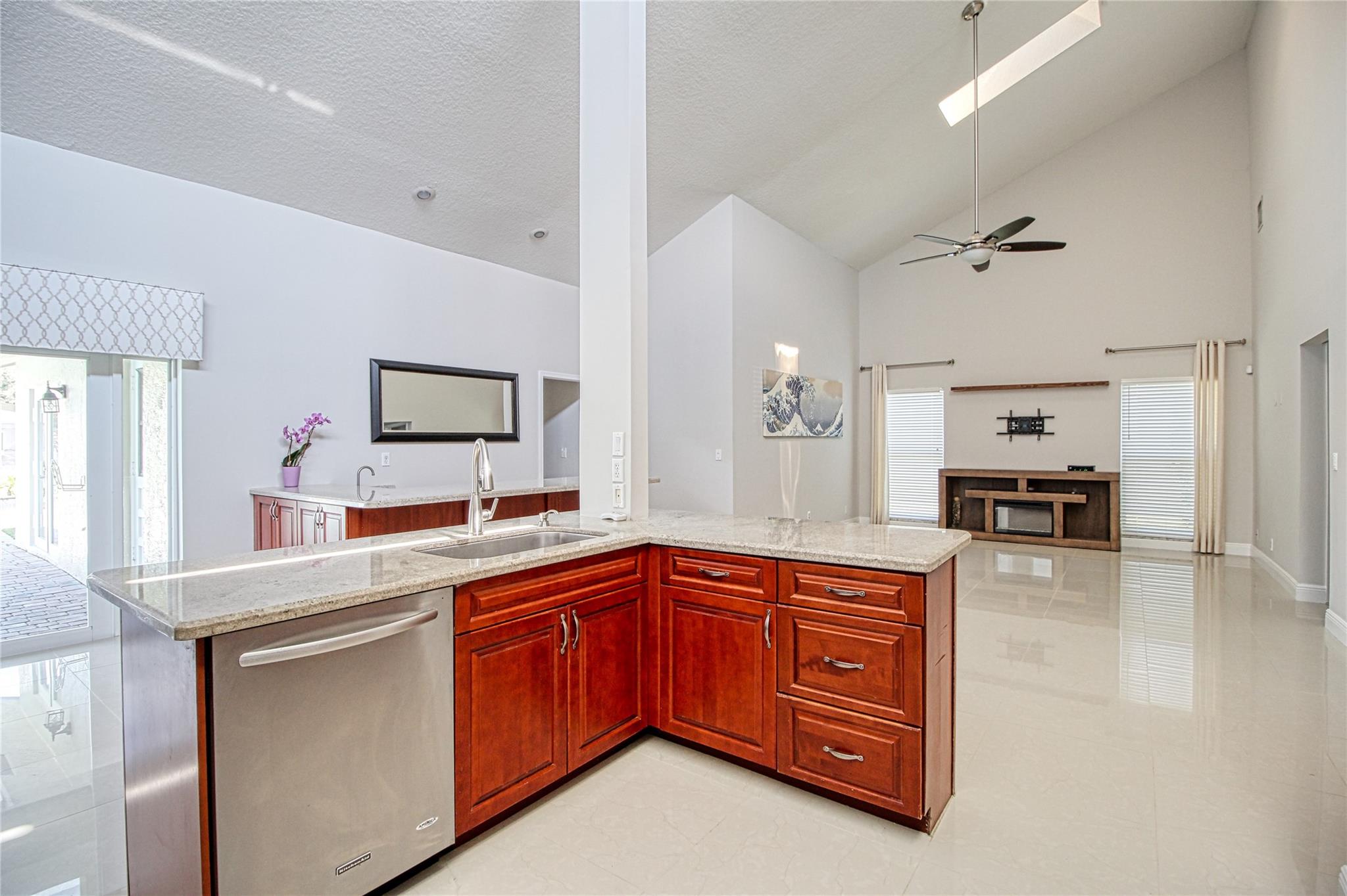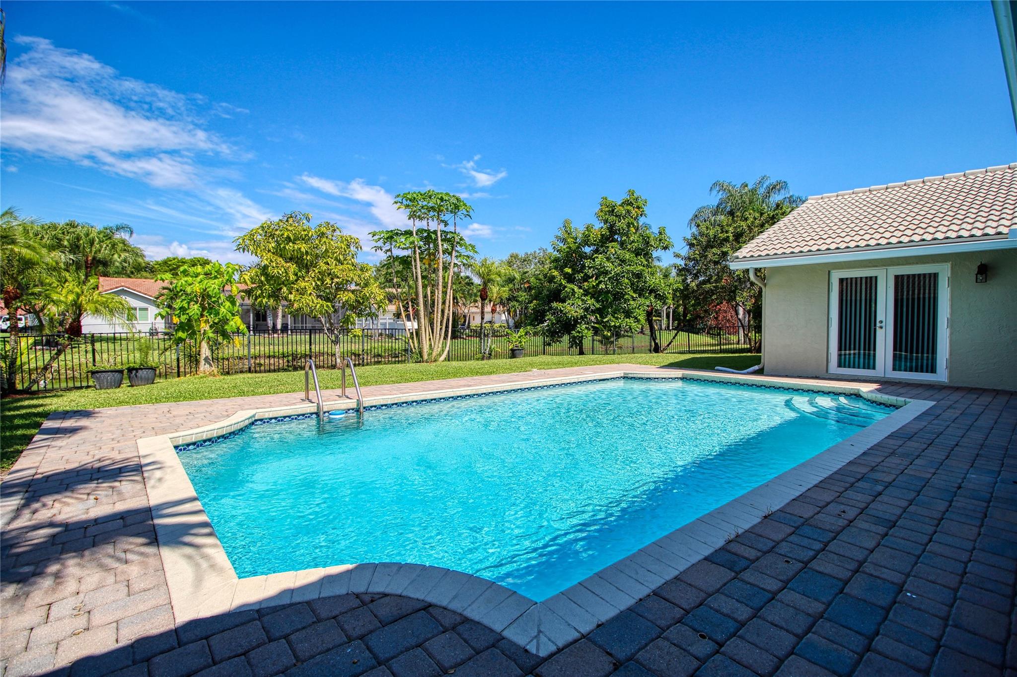Welcome to this beautiful updated 4 bed & 2.5 bath pool home in desirable Pine Ridge! This immaculate split floor plan has impact windows, doors, garage door & skylights, vaulted ceilings & porcelain tile in living areas, wood look laminate floors in all bedrooms, built-ins in secondary bedrooms, master bedroom has dual walk-in closets and updated bathroom, open kitchen has cherry cabinets w/granite counters & SS appliances, wet bar for entertaining, interior recently painted neutral color, exterior just painted, new water heater, new mail box, AC 2020. This home is very bright & open with french doors that lead to a paved pool area w/large pool on fenced in water lot with fruit trees. This is an excellent location on a quiet cul-de-sac! Don't miss your chance to own this beautiful home!