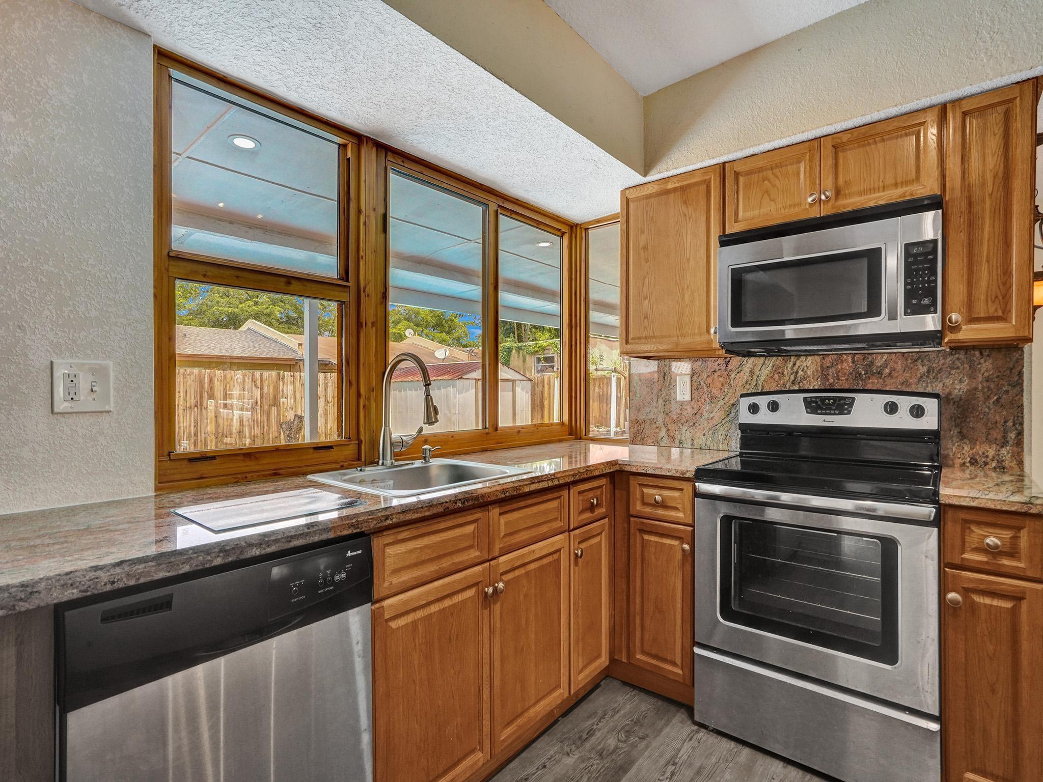 Welcome to this charming well maintained home, nestled in a quiet neighborhood of historic Miramar. The Spacious open floor plan boasts lots of natural light and windows. The main house is a 2 bedroom 1 bathroom with an extra office nook in the laundry room. There is a Full 1 bed studio in the garage with a separate entrance on the side. The garage can be converted back easily if desired or enjoy the extra space or as an income property. The Backyard is ex-large with a beautiful newly diamond brited pool and covered patio for entertaining family and friends. The kitchen has stainless appliances, granite counters, and ample cabinet space. This home has a Brand New 2022 Roof, circular driveway for ample parking and fully fenced in backyard. Don't miss this meticulously kept home!
