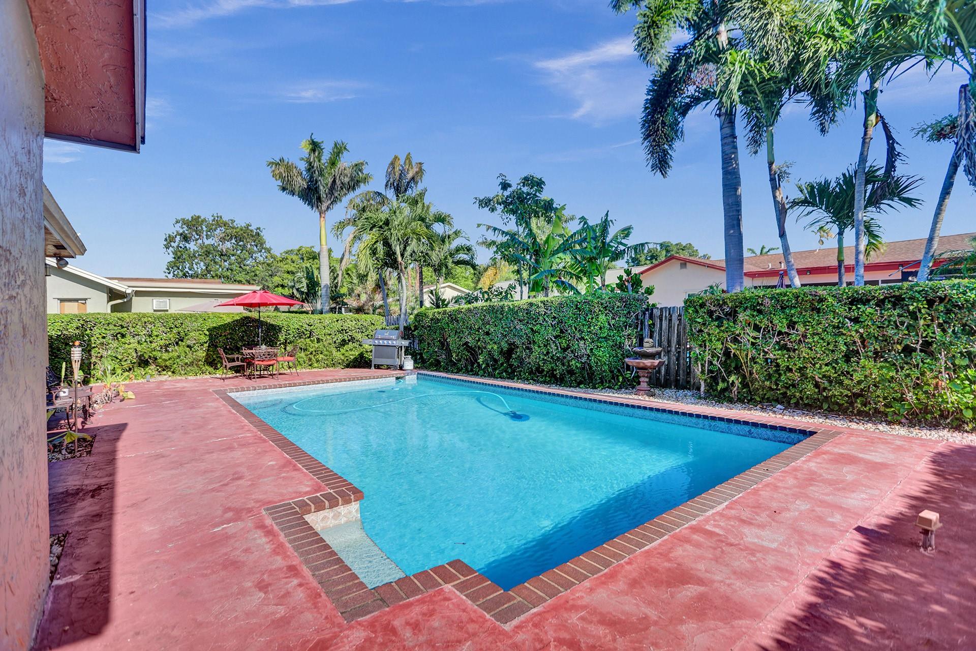 4 Bedroom 2 Bath Pool Home In Woodstock in Sunrise. Interior features open floor plan with large family room, kitchen with pantry, stainless steel appliances, countertop seating overlooking pool area. Expanded Florida room, formal dining room. Large outdoor entertaining area with pool, fenced in yard. 1 car garage, washer and dryer, hurricane shutters, alarm and video doorbell system. Roof 2016, A/C 3 years old. Priced to sell!
