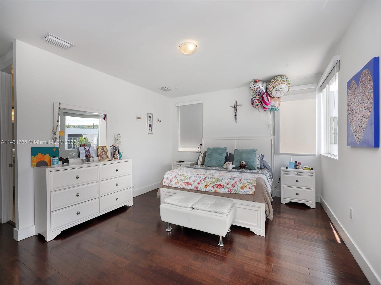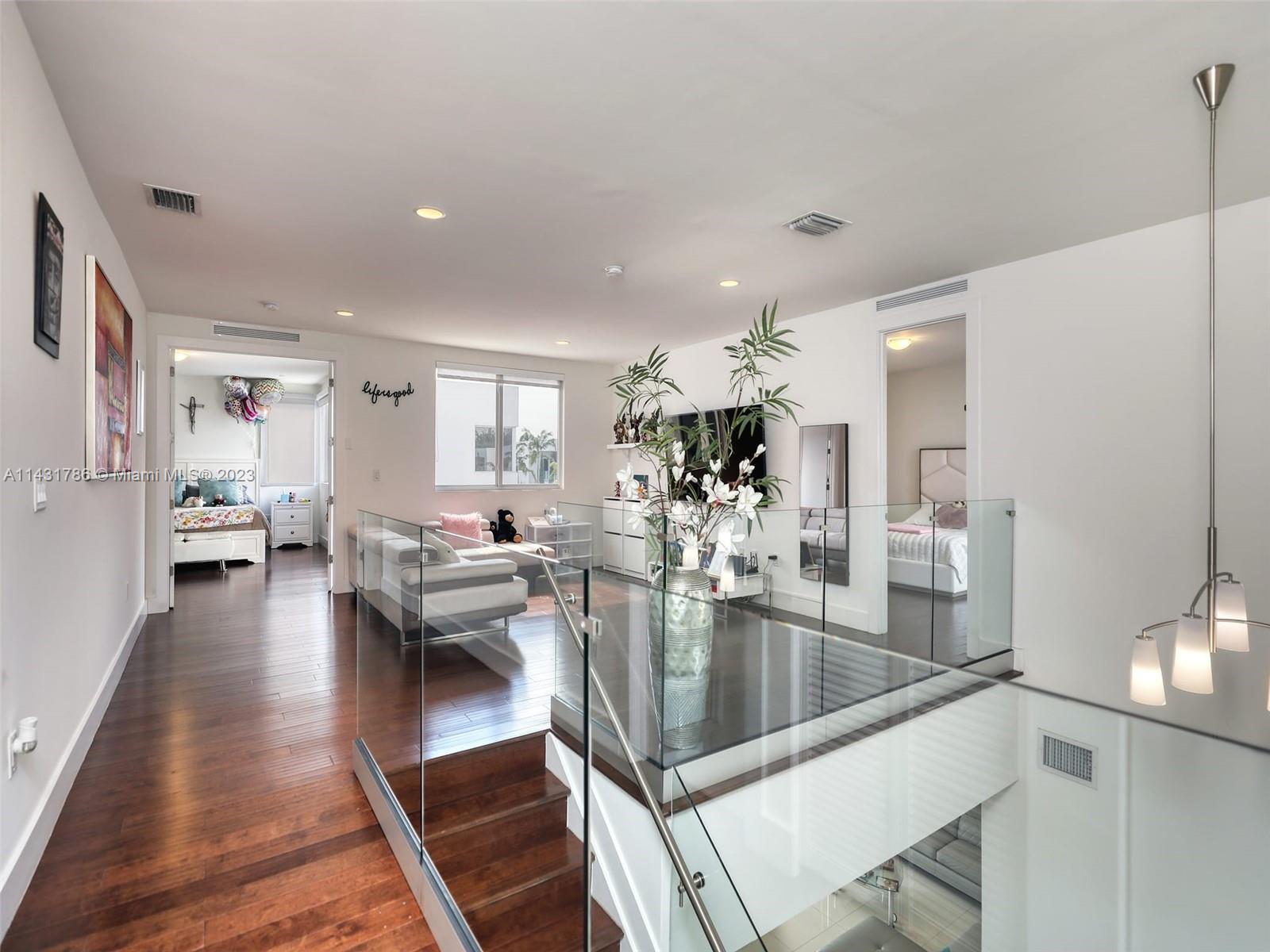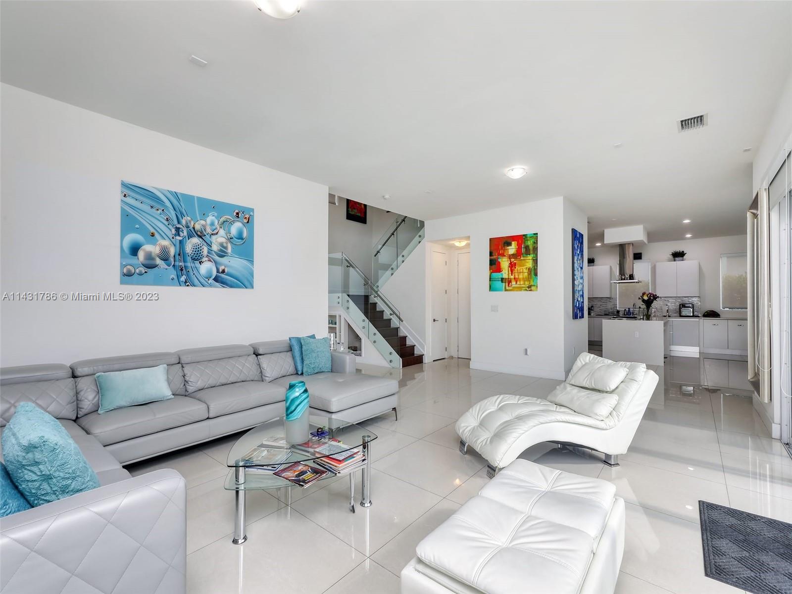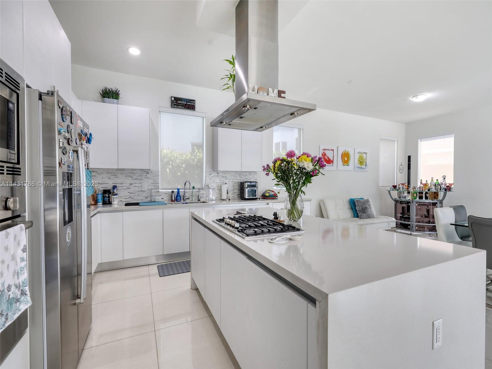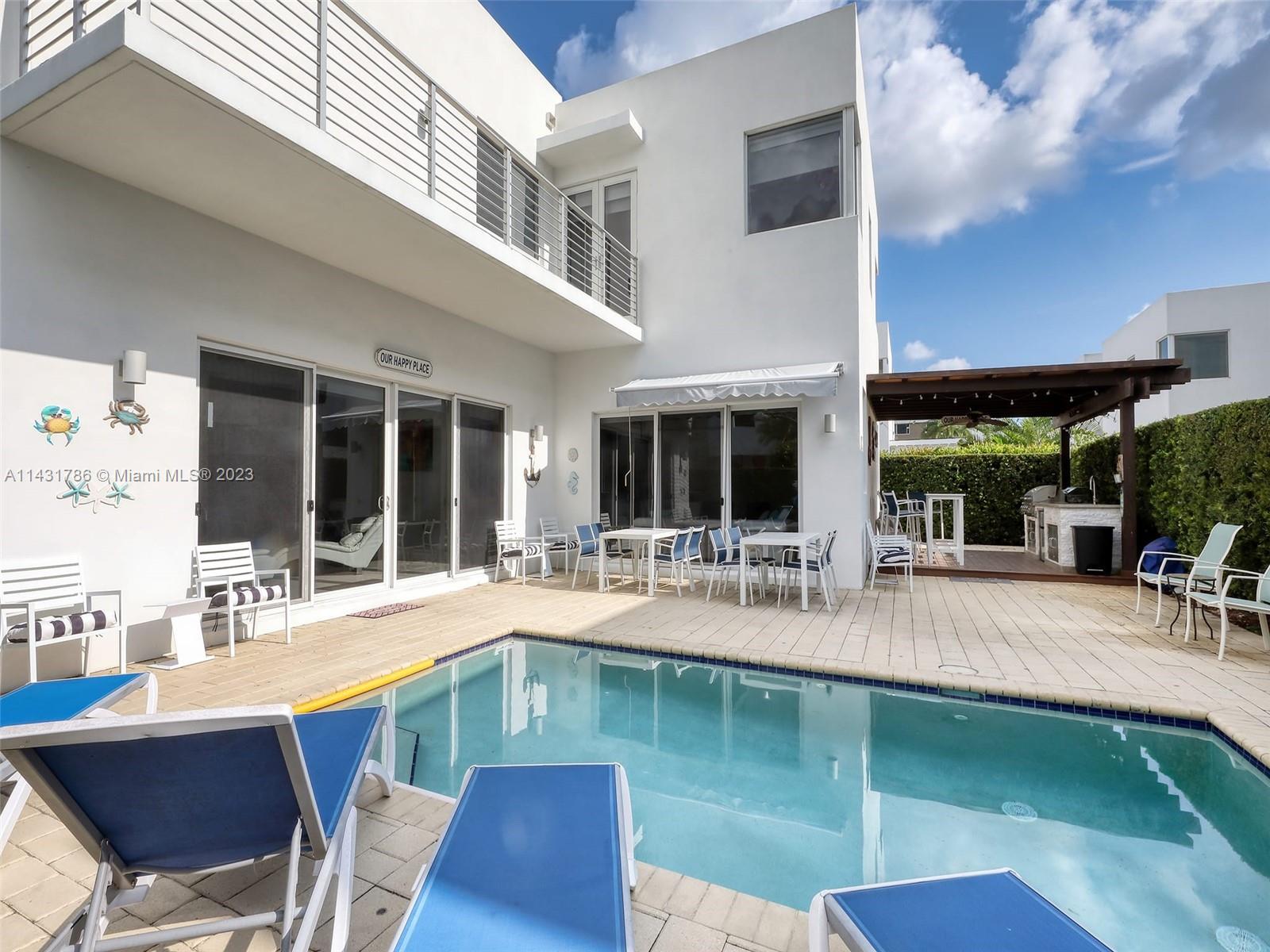 Beautiful 5-bedroom, 5-bathroom CORNER home for sale in the exclusive Modern 60 contemporary community in Doral. Open floor plan, 1 bedroom 1 bath on the first floor and elegant interior, high ceiling, impact windows and doors, porcelain floors on the first floor and hardwood floors on the second floor and stairs, white kitchen cabinets, quartz countertops and top of the line Bosch Stainless Steel appliances, under counter wine cooler, gas stove and water heater, 2 car garage and electric car charger, with a good size private pool and patio rear, Pergola with outdoor kitchen. includes sonox sound in outdoor patio and smart camera and doorbell system, Clubhouse with meeting areas, fully equipped gym and children's playroom, media room and kitchenette, pool, spa, gazebo area and more.