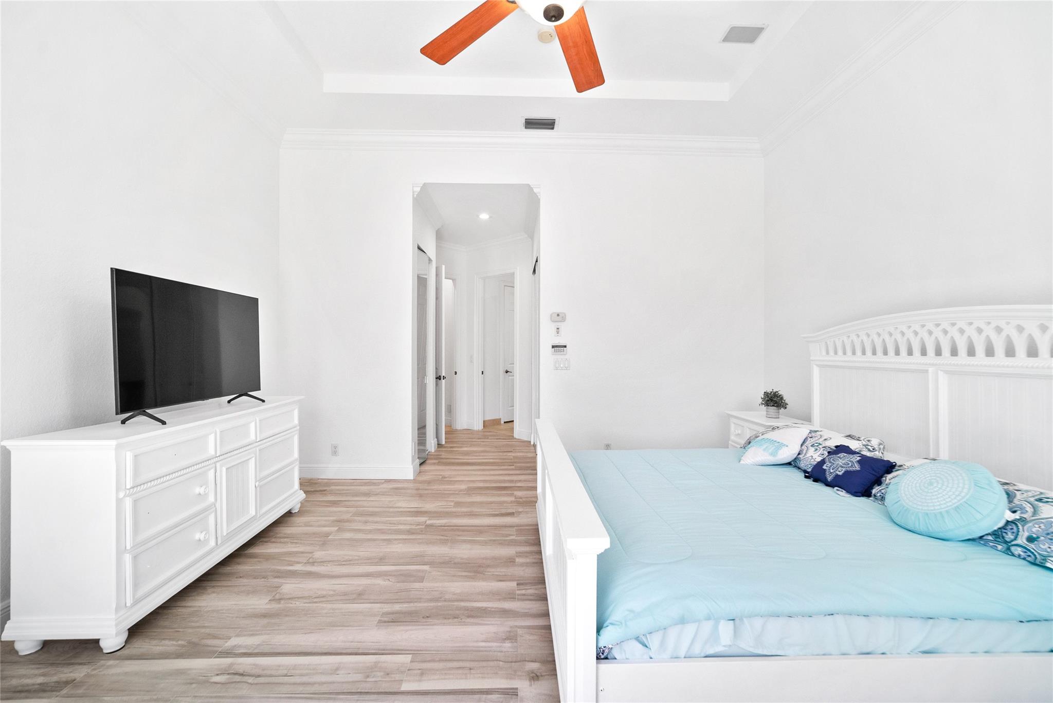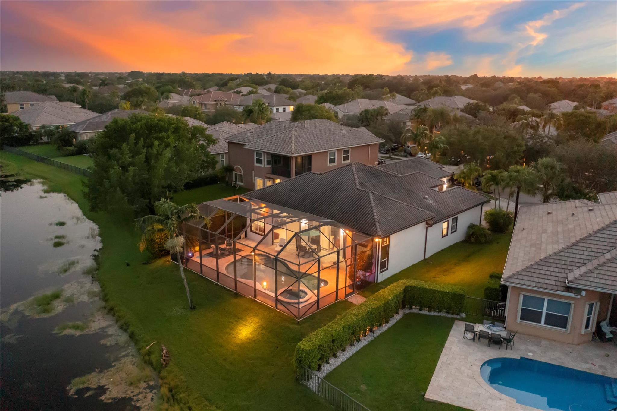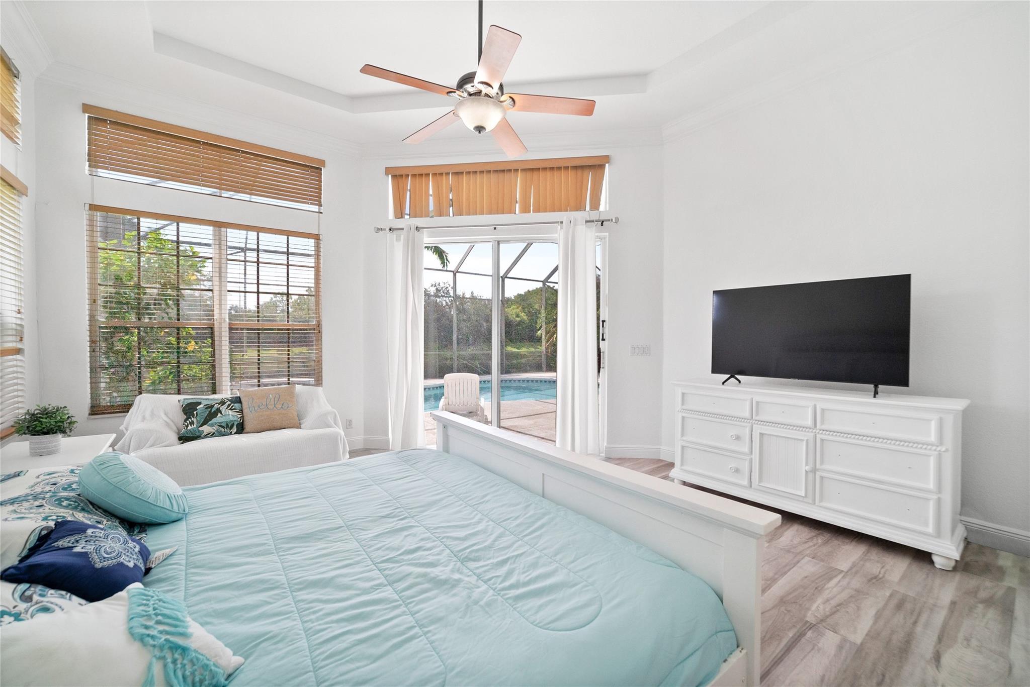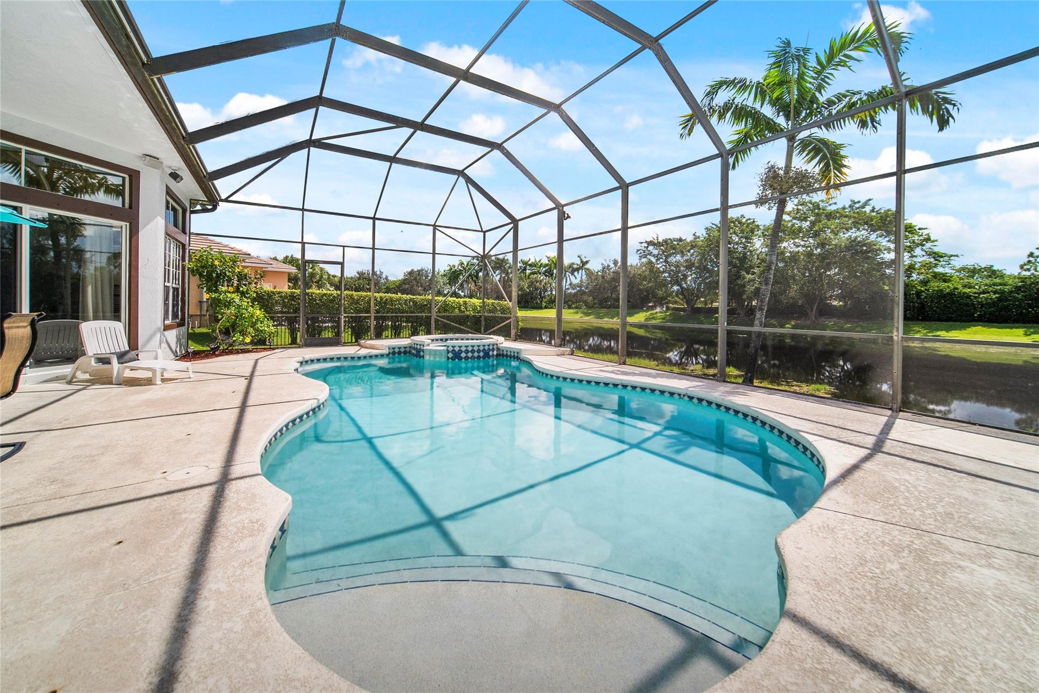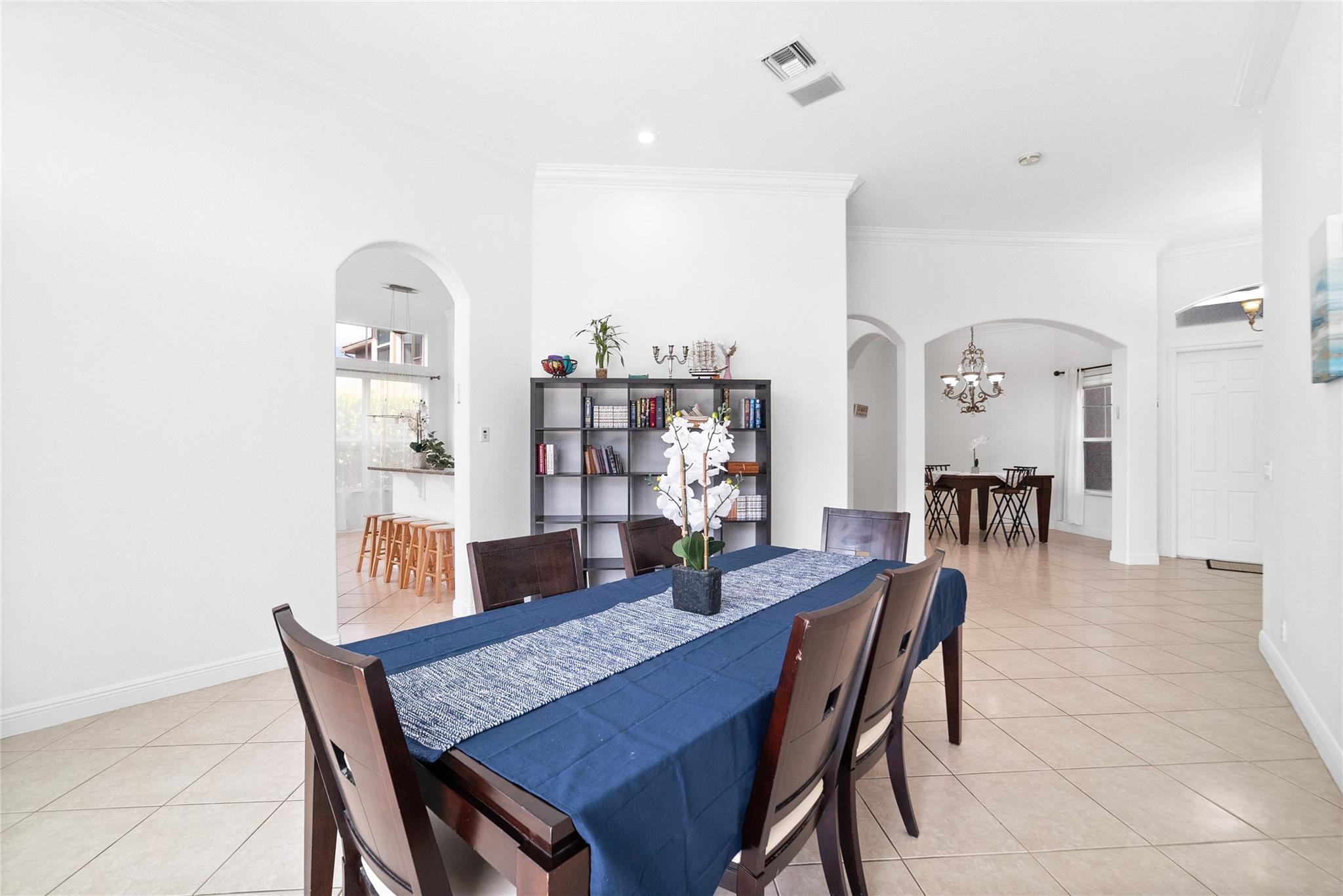 Discover the Heron Bay Gem! 5 Beds + 3 Baths + 3 Car Garage + Pool, all under $1M! Embrace Breathtaking Water Views. Perfect Split Floor plan for the Whole Family. Spacious Primary Bedroom, Pool View, 2 Lg Walk-In Closets. Primary Bath w/ Dual Vanities, Separate Tub/Shower. Ashton Model, Formal Dining, Living & Family Room. New Luxury Vinyl Floors in 4 Bedrooms and tile in the 5th bedroom. Double Door Entryway With Crown Molding Throughout the entire home. Plantation Shutters in Front Bedroom. Galley Kitchen, Large Wood Cabinets, Granite Counters, Pantry & Breakfast Bar. Private Screened Patio & Pool, Under Cover Outdoor Dining for Year-round Enjoyment. Walking distance to Gorgeous Resort Style Clubhouse & Top A-Rated schools! Lots of Natural Light throughout the house.