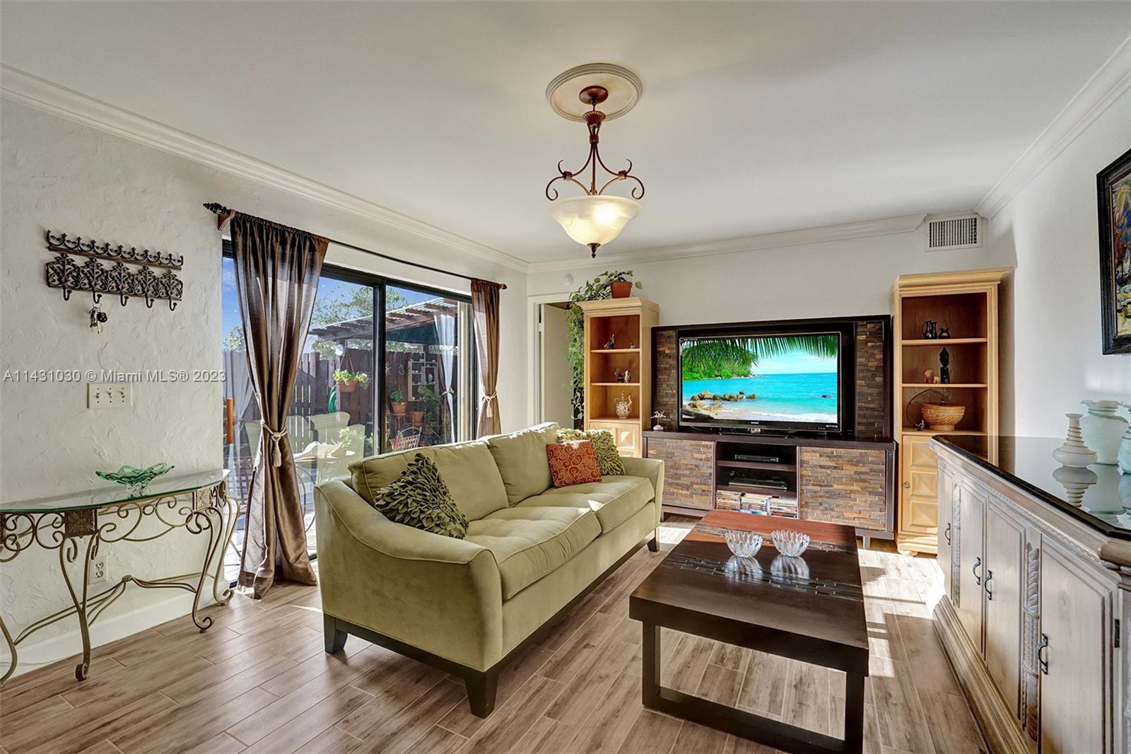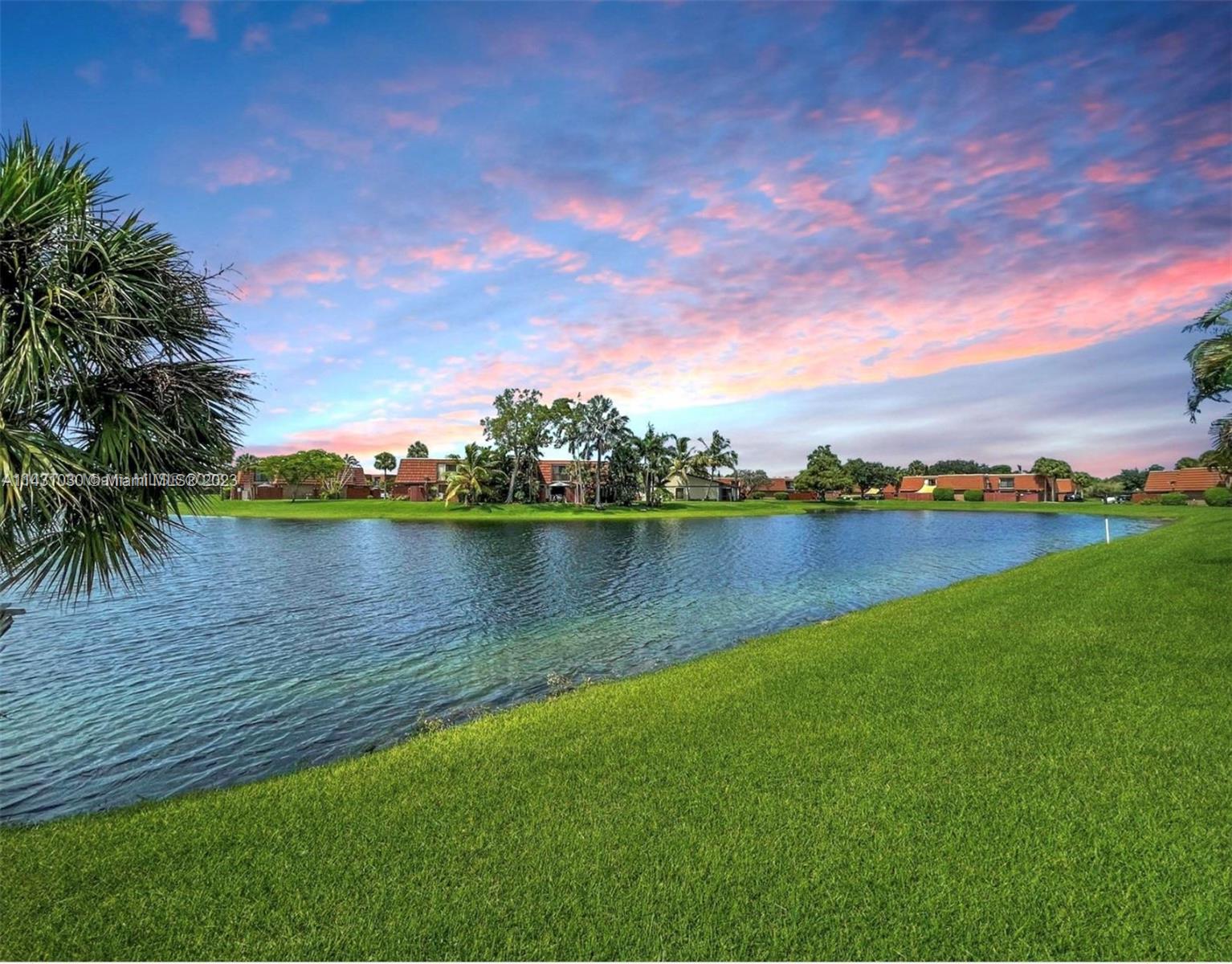 Beautiful 3 beds with 2 and 1/2 baths townhouse in a nice and quiet community. Property is located by the lake and has a gorgeous water view from balconies. Very private patio and one bedroom is on main floor. Unit has a half bathroom with a washer and dryer machine. Townhouse has new appliances, new air conditioning and accordion shutters. Lower Association fees and they cover the roof for repairs or replacement. Community has nice amenities like pool, kids playground, basketball and tennis court.