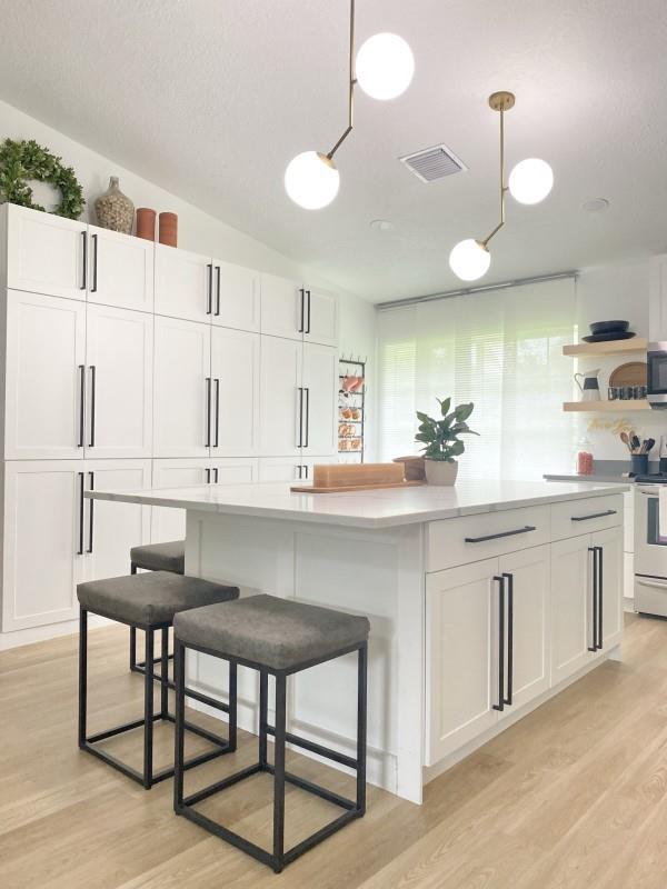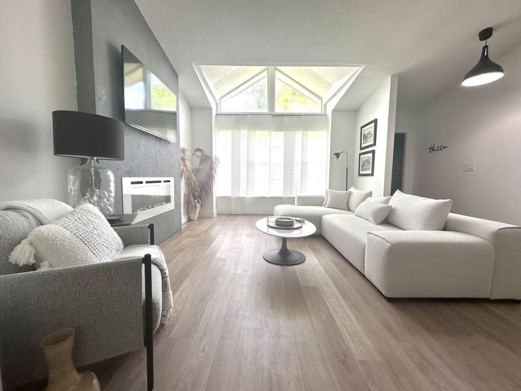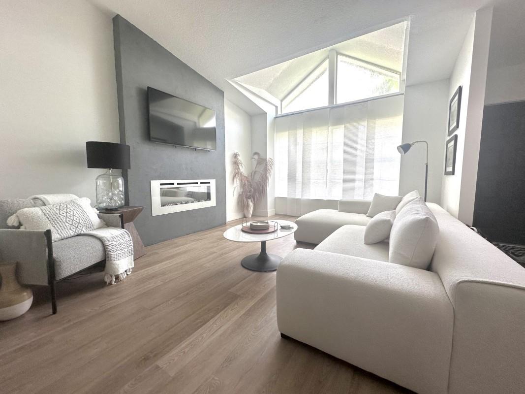 MOVE IN READY, 3/2 MODERN WATERFRONT HOME IN HIGHLY SOUGHT AFTER PINE RIDGE VILLAS!! Entirely updated!! Open concept with vaulted ceilings, high end luxury vinyl wood floors, and custom electric fireplace. Top of the line modern open kitchen with two toned quartz countertops, stainless steel appliances brand new Samsung bespoke refrigerator, wall of custom pantry, large kitchen island with endless storage, and high end finishes! Split foreplan with two guest bedrooms off to one side of the main living area with modern updated bathroom nestled in-between. On the other side is the primary bedroom suite, with tall tray ceilings, sliding door to patio, walk in closet, and spa like bathroom with marble top floating cabinetry, gold fixtures, and waterfall showerhead!!