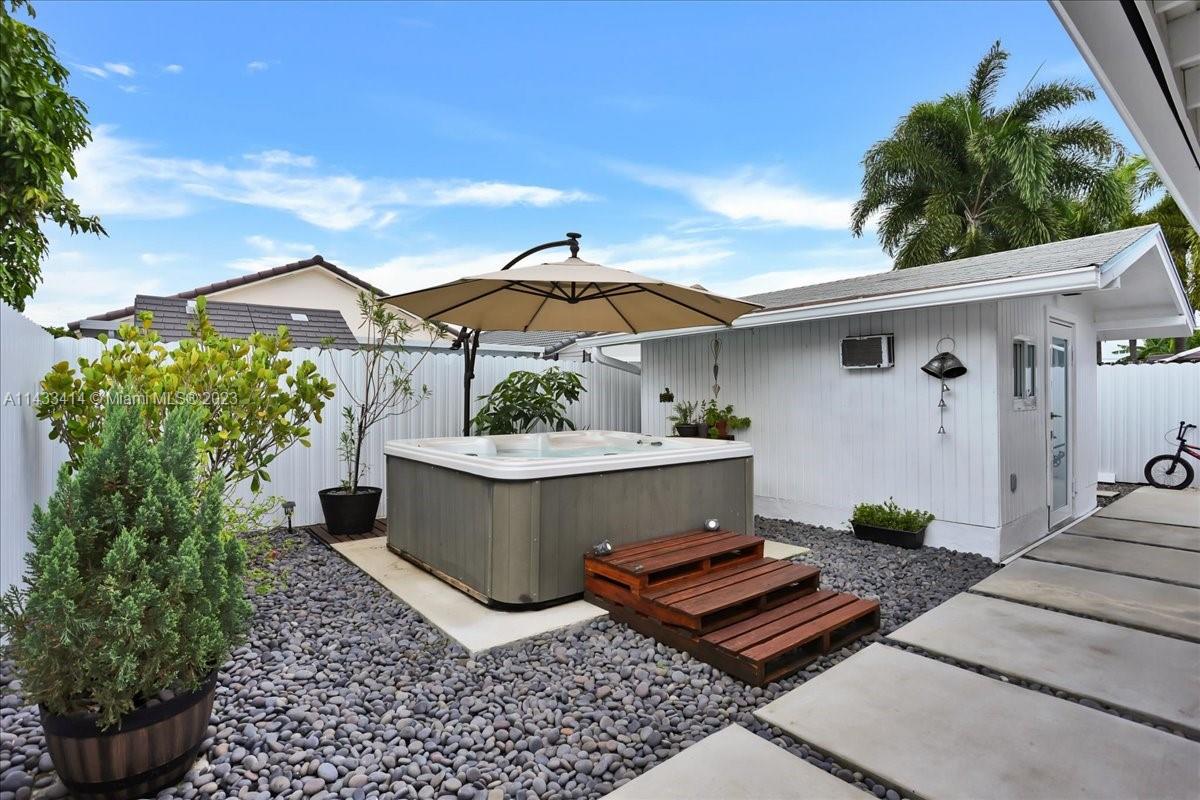 Stunning and exquisitely remodeled house in the charming neighborhood of Hialeah! Immaculate One Story home with 3 beds & 2 baths, offering a comfortable and spacious living space for you and your family. As you step inside, you'll be greeted by the modern elegance of brand-new appliances in the fully updated kitchen. The open-concept layout connects the living and dining areas, creating a warm and inviting ambiance. But the true highlight of this home lies in the backyard oasis—a luxurious Jacuzzi awaits, inviting you to unwind and relax in the utmost privacy. Additionally, you'll find an efficiency in the backyard, which is included in the house floor plan since 1996, offering versatility for guests, a home office, or an income-generating rental. Ready for move-in. NO HOA.
