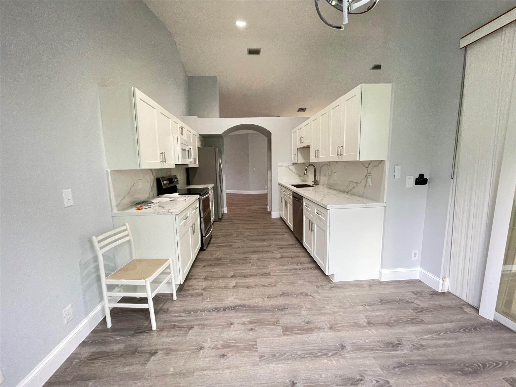Beautiful 3 Bedroom 2 Bathroom Townhouse. Largest home in the complex! Vaulted Ceilings. Fully upgrade the whole house. Brand New Kitchen with Quartz Countertop, Stainless Steel Appliances. New Vinyl floor though the whole house. Open spacious living room with dining room, breakfast area at the kitchen. Huge master bedroom with two large walk in closet and Upgraded bathroom, Ceiling fans in every Bedroom! Newer Roof 2018, A/C 2012, Brand new water heater, Gated community and well maintenance community. Move in ready! Don't miss it!