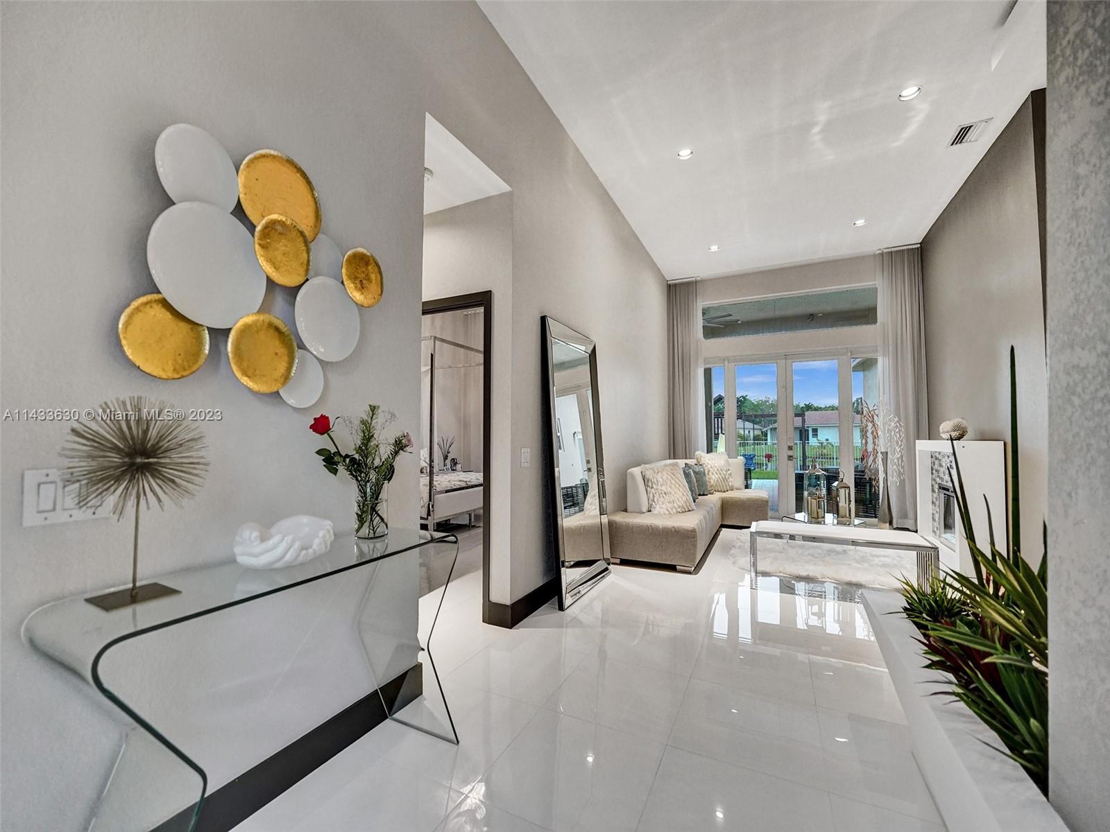 Price adjustment! This remodeled to perfection waterfront beauty is available now.High impact windows & doors throughout the home. New roof done in 2022. State of the art kitchen offers everything needed with an extended island with seating, beautiful cabinetry, white quartz counter and double ovens. All appliances have been upgraded. Split bedroom plan offers maximum privacy. Upgrades include, custom closets doors and made to order closets organization systems, deluxe motorized exterior patio shades, custom black out zebra shades in white, outdoor speakers for maximum ambiance, mature landscaping and more! Outdoors Oasis with a Jacuzzi and custom made Grill. New very large patio is ready for weekends enjoyment. A Rated schools.Location!! Minutes to highways, beaches etc.