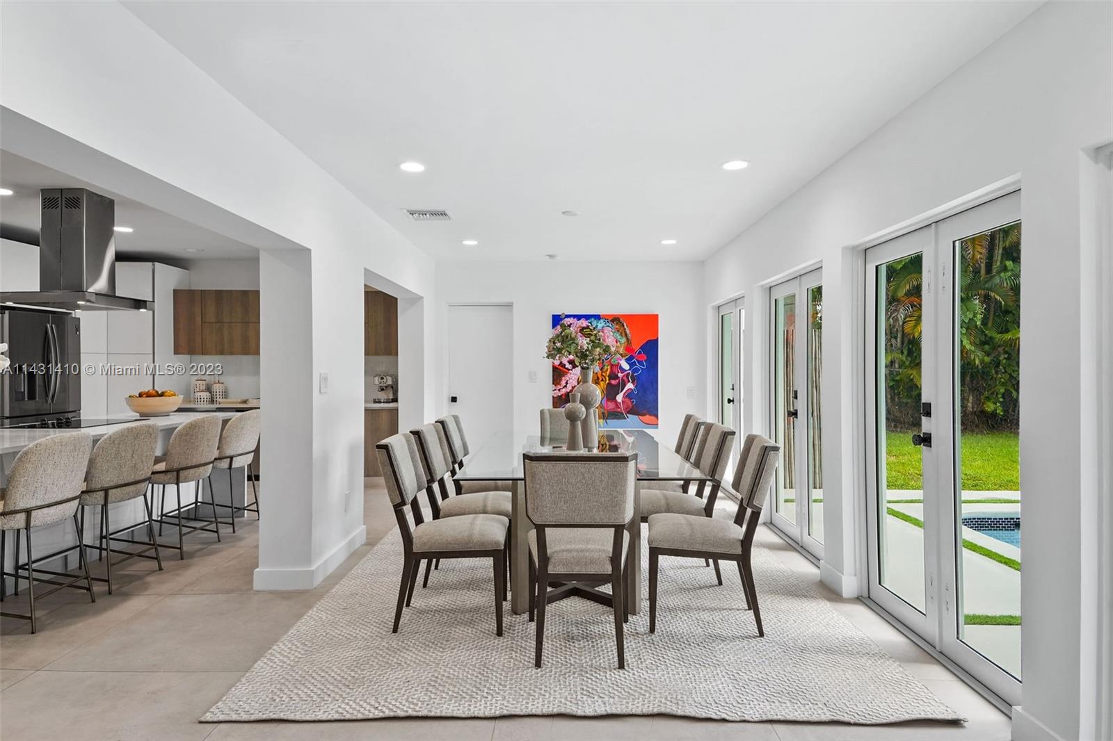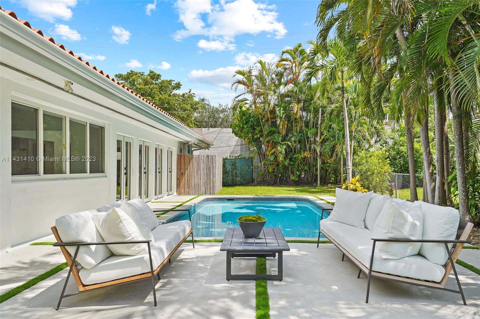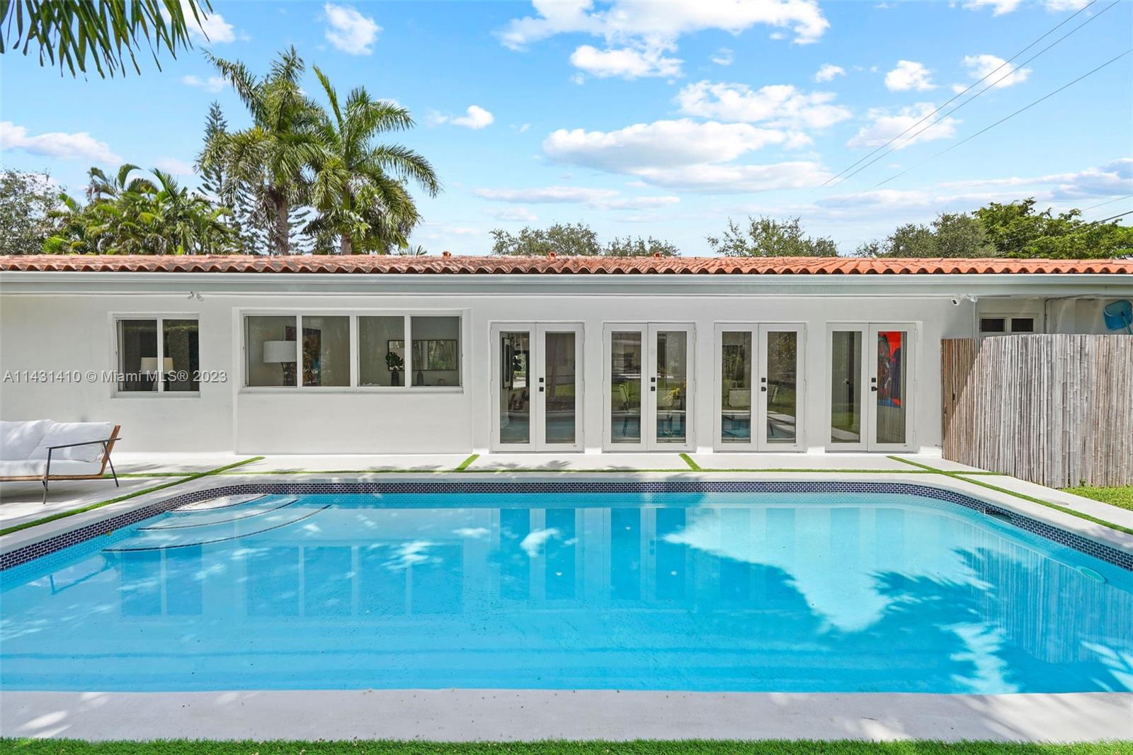 Beautiful, renovated home in best location in Coral Gables. Open concept living areas with excellent distribution of 4 bedrooms with 4 "en suite" baths plus guest powder room for your guests. Elegantly appointed kitchen w/ smart appliances, Italian YAMINI kitchen and quartz countertop island. Four sets of french doors overlooking the pool provide a light, bright home and all flooring is seamless 40” tiles, very easy to maintain. New hurricane Windows with double front door, new landscaping with mature royal palms. New A/C units, SMART House, 2 Car Garage. Must see family home with best schools and 1 block to Riveria Country Club and close to Biltmore. Walk to Baptist Hosptial and UM. Great family home or investment. Available immediately. May be larger than tax records.