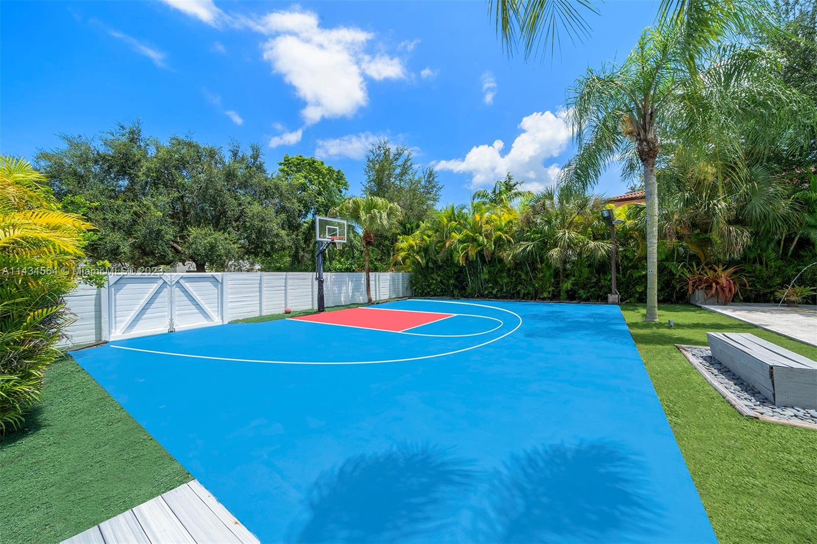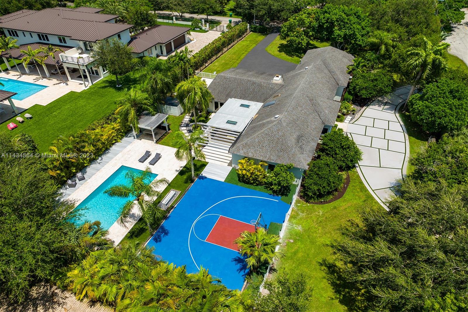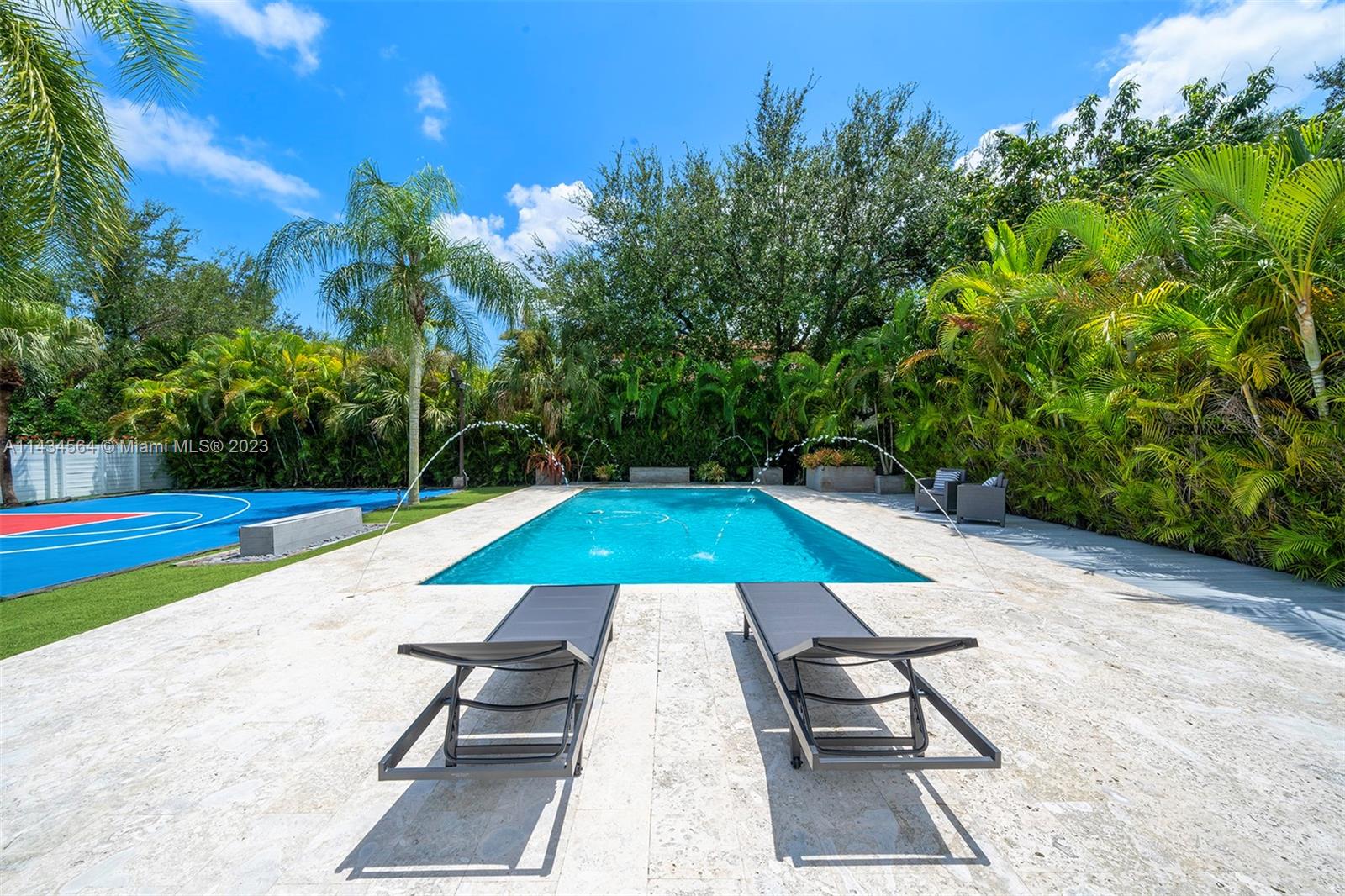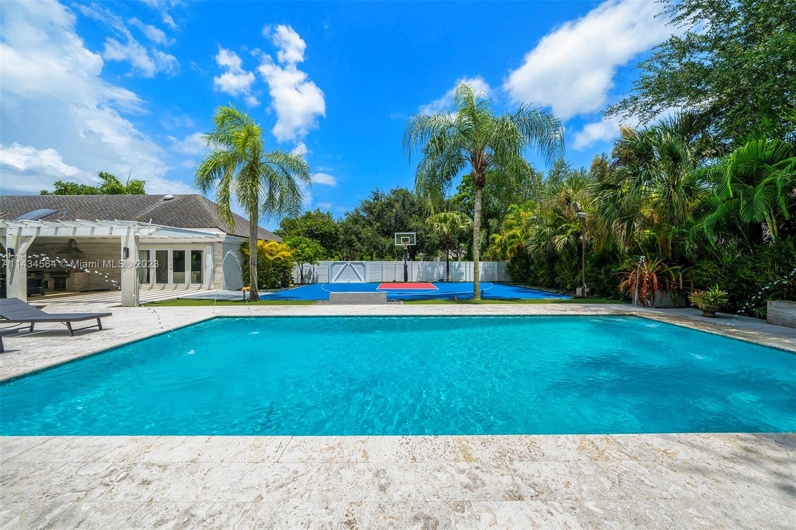 Uncover an exquisite one-story North Pinecrest gem with a half-moon basketball court. Enjoye 5 bedrooms and 4 bathrooms and sprawling entertaining spaces: formal living, dining, bar, gourmet kitchen, and a vast family room overlooking the pool. The luxurious master suite boasts a sitting area, spa-like bath, and backyard access. Outside, a serene oasis offers a covered terrace, pool, gazebo and summer kitchen. Additional features: impact windows/doors, maid’s quarters, 3-car garage, proximity to top-rated schools.