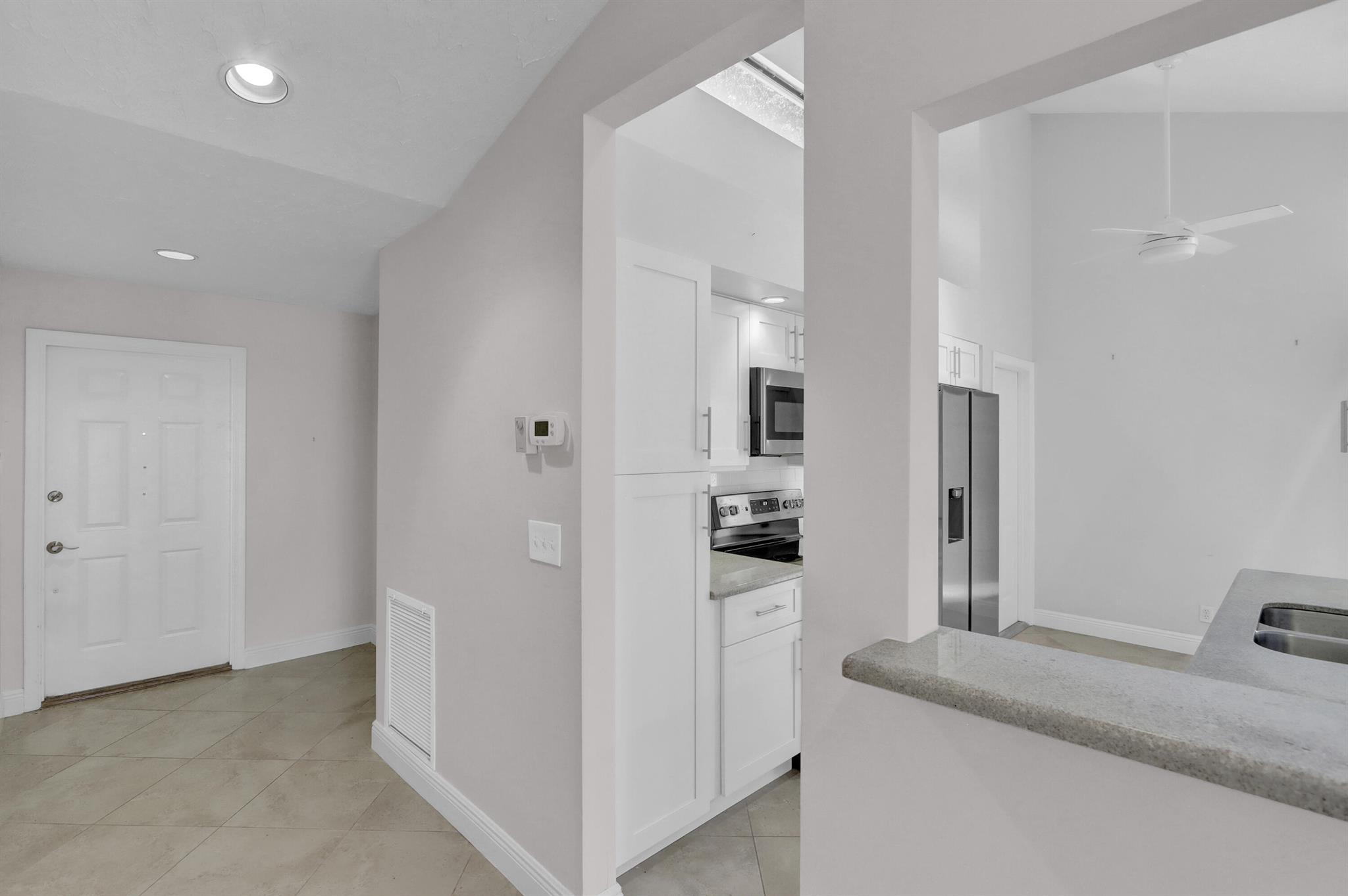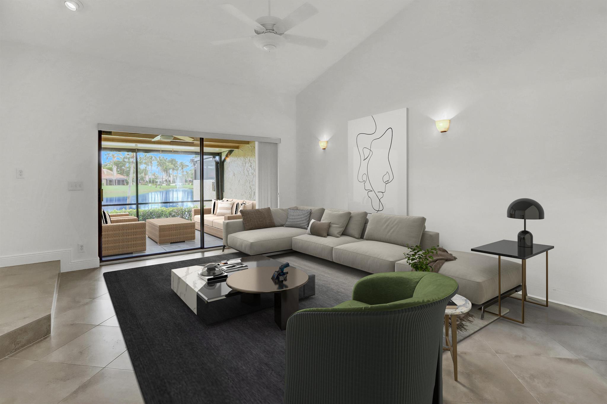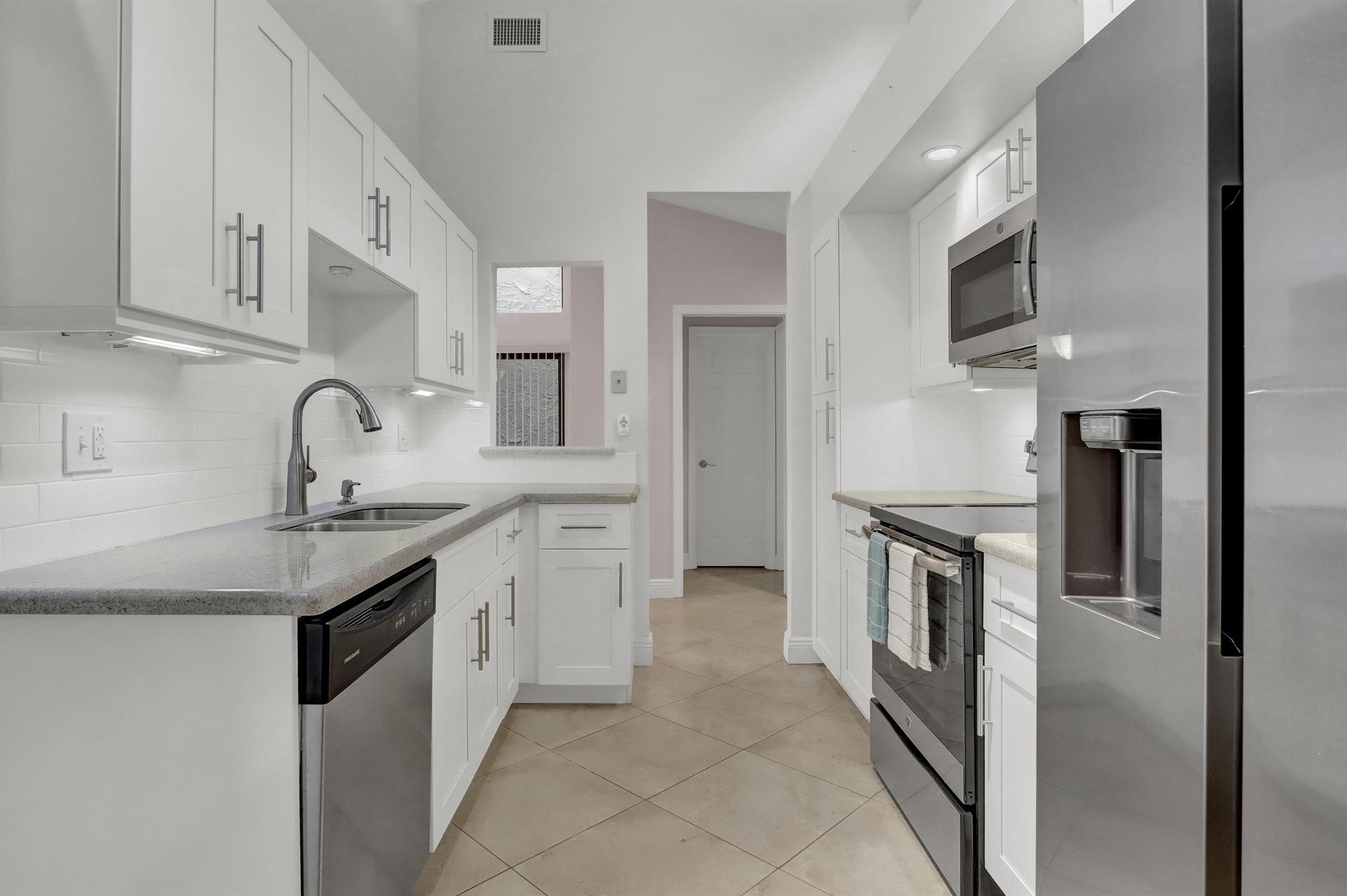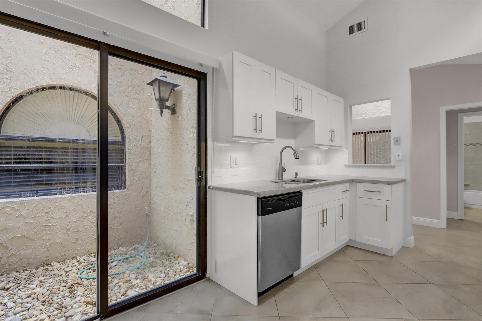 Embrace the luxury living in this STUNNING LAKEFRONT VILLA at 22674 Meridiana Drive, Boca Raton, FL. Enjoy the best of both worlds with tranquil lake views that soothe the senses while being nestled in the highly sought-after Meridiana community within Boca Pointe. This one-story villa showcases unparalleled elegance with a kitchen that features newer stainless steel appliances, White Shaker Cabinets, and Granite Countertops. Both bathrooms have been tastefully updated, offering a spa-like retreat. Revel in the comfort of NEW flooring in both bedrooms and a fresh coat of paint throughout. NO Popcorn Ceilings. Modern conveniences like remote-controlled ceiling fans and 2 Atriums infuse the home with natural light.Step onto the HUGE Covered & Screened Patio, perfect for outdoor