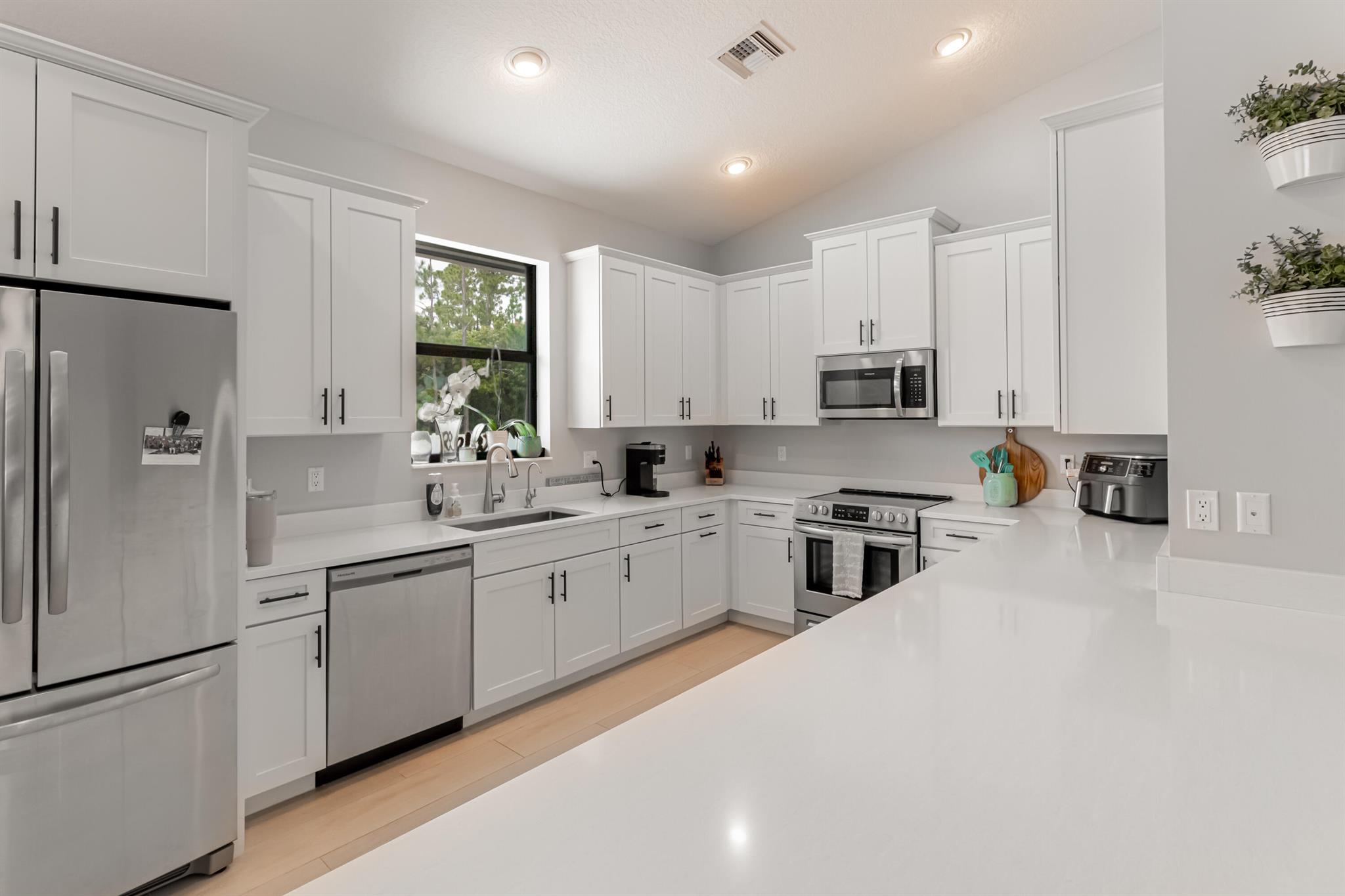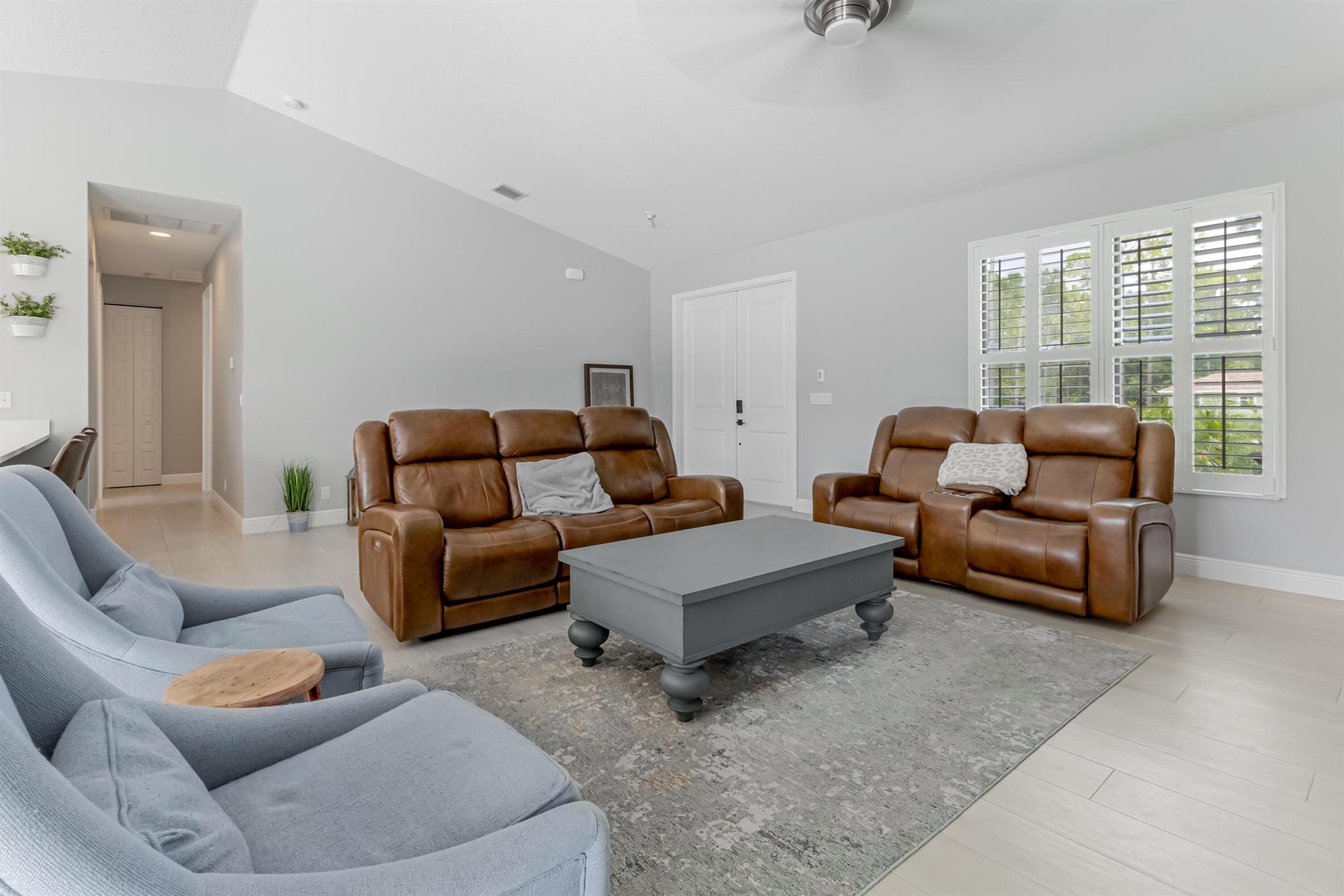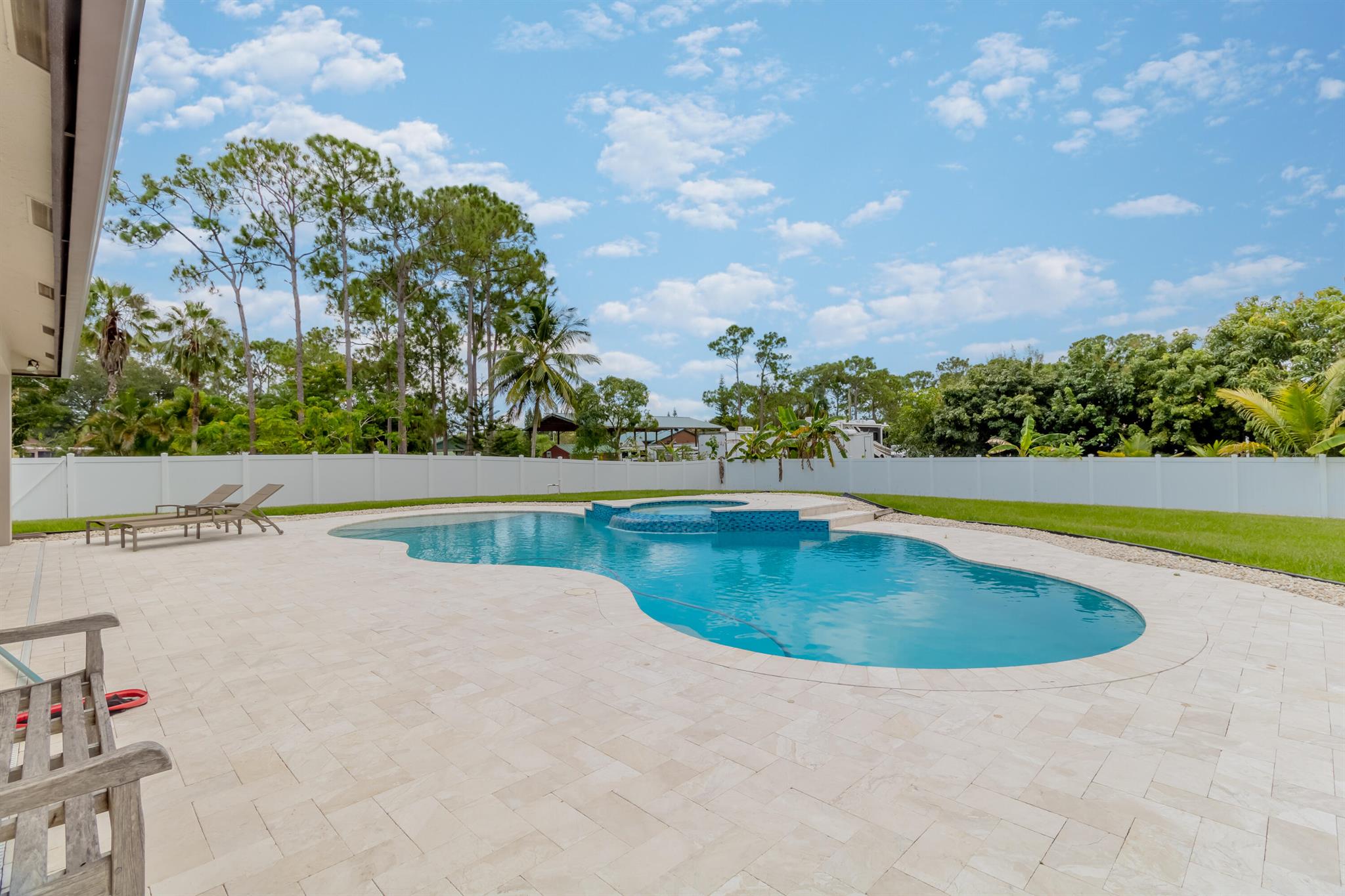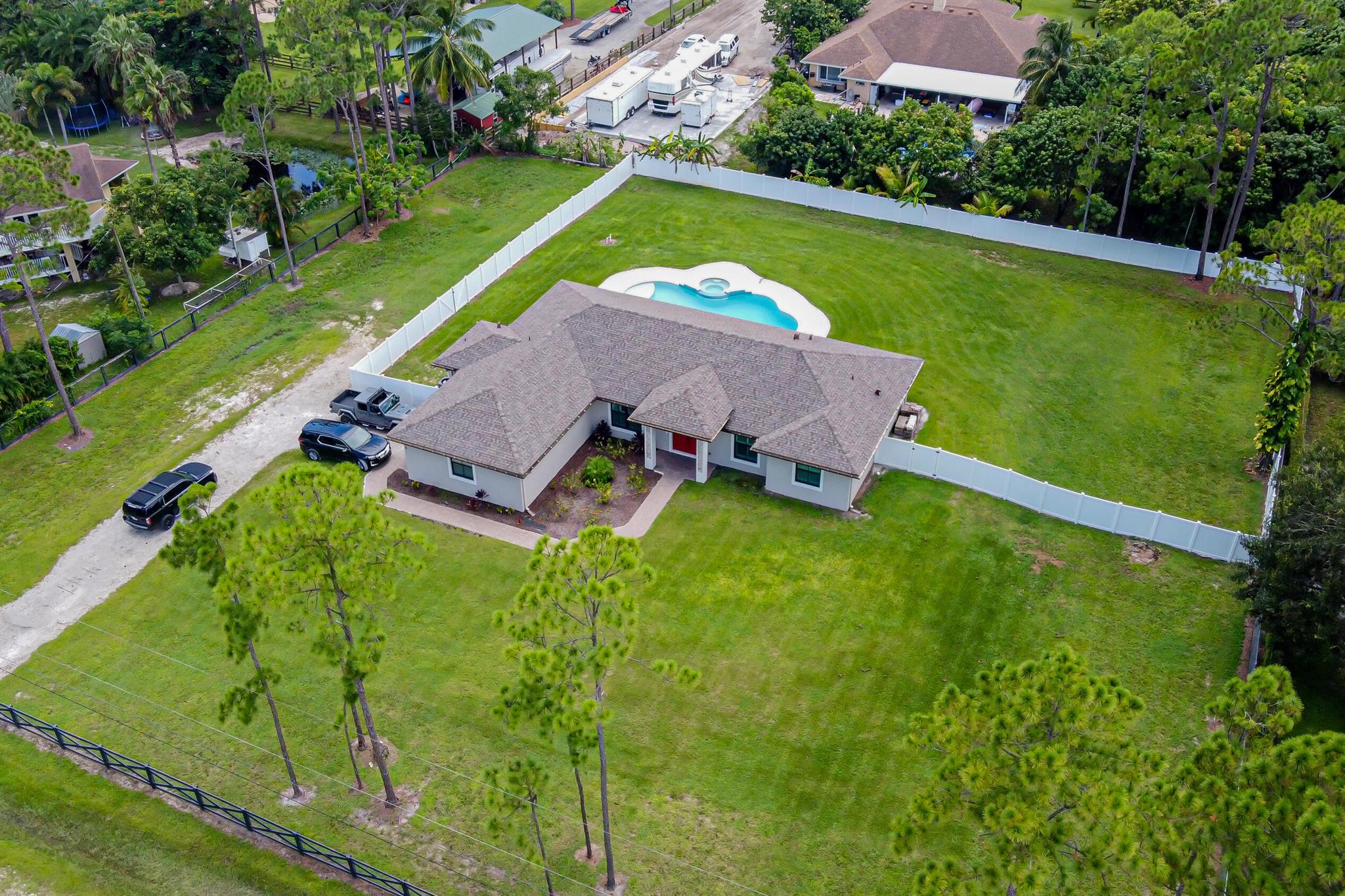 Welcome to The Acreage, this home sits on 1.15 acres, newly built home by Vista Builders in 2019, which has since had several attractive additions and upgrades. These additions include frameless shower in the primary bathroom, a fully fenced yard, impact windows, and plantation shutters throughout the house. The outdoor area seems equally impressive with a 20x40 saltwater heated pool and spa, accompanied by a stunning travertine deck.