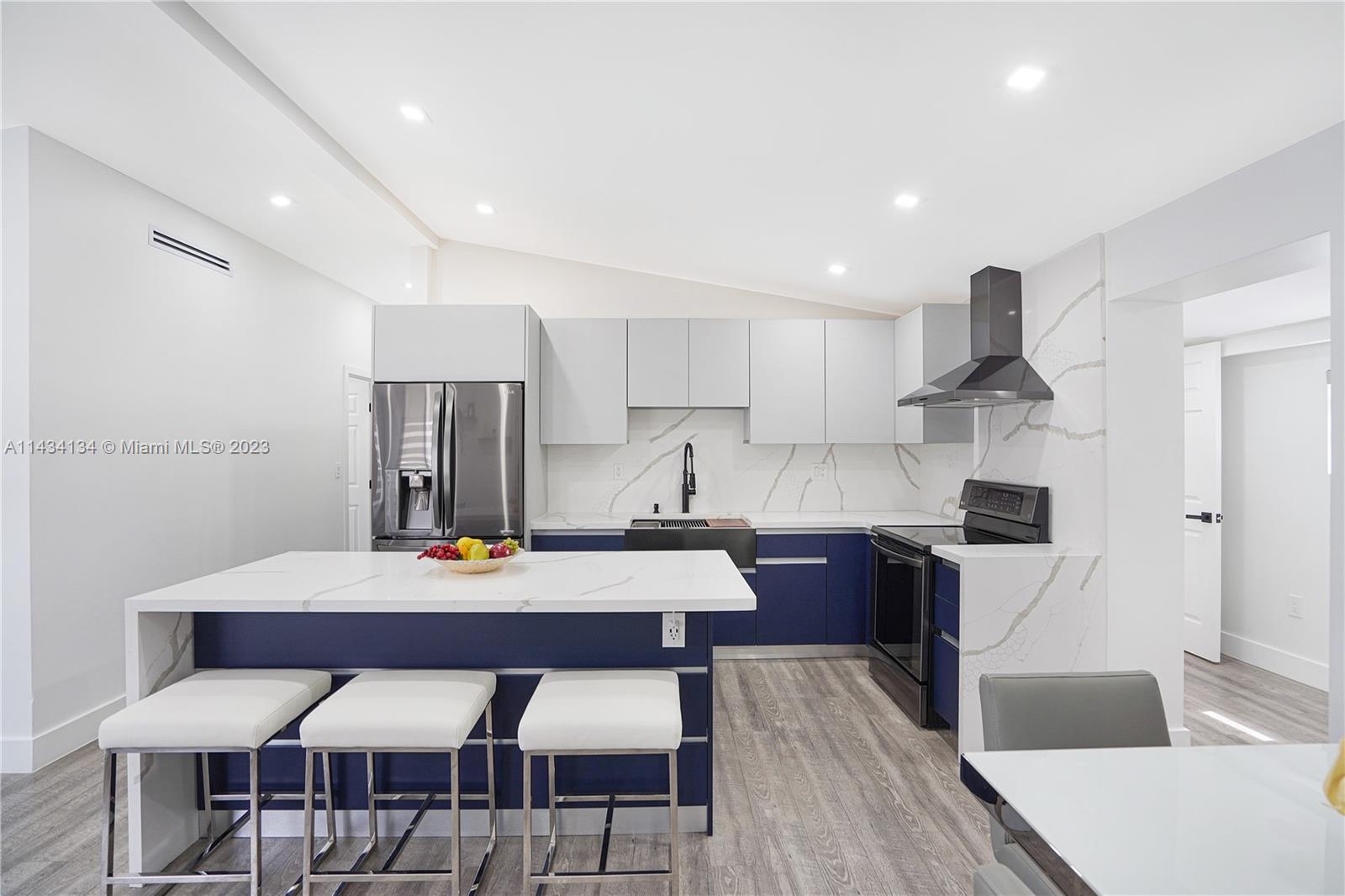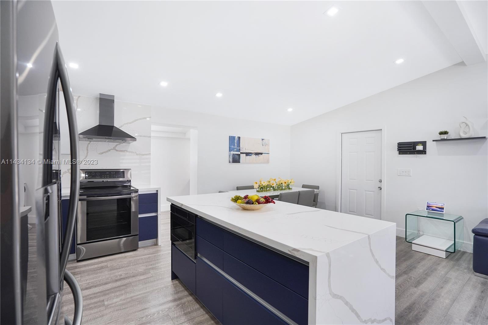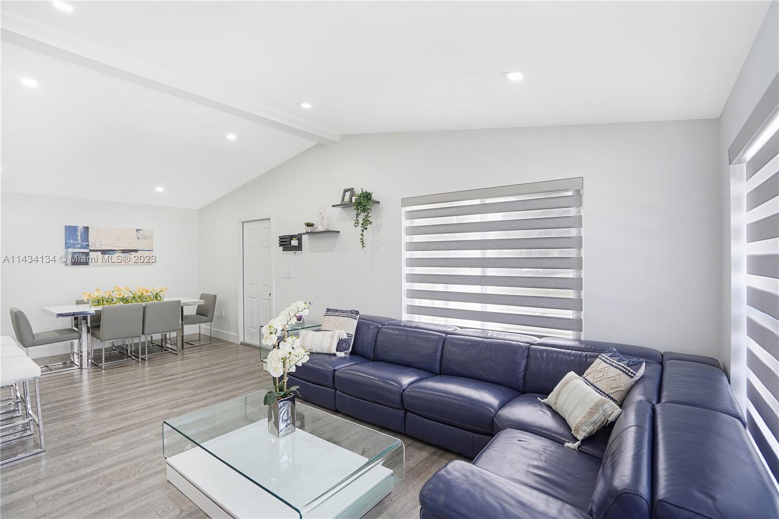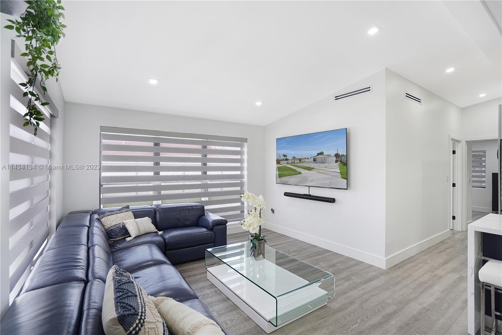 Spectacular & meticulously renovated, 1 of a kind SFR in highly appreciating Essex Village in Hialeah, FL. Boasting seamless integration of open, bright & airy 3 bed & 1.5 bath floorplan, grand volume ceilings, stunning gourmet kitchen featuring all SS appliances, striking quartz countertops & backsplash, sleek 2 tone cabinetry & grand waterfall island w/ seating, recessed LED lighting & a myriad of other detailed upgrades & enhancements. Spacious bedrooms, spa-like bathrooms 7 glass shower doors. 2021 (25) year roof. New floors, AC, water heater, washer/dryer. Insulated walls & ceiling. Upgraded plumbing & entire new electrical, remote control Zebra blinds, impact windows/doors. Separate Boat/RV parking, expansive square grid cement driveway for multiple vehicles (& commercial too) NO HOA