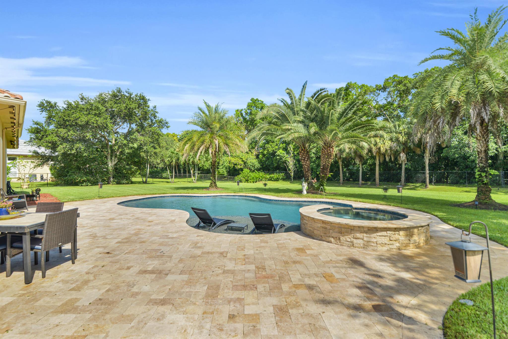 RARELY OFFERED COMMUNITY!! From top to bottom, you will fall in love with this meticulously maintained home located in Davie's top gated community, Grove Creek Ranches. This gorgeous home is situated on a sprawling one acre professionally landscaped lot backing to horse trails. Perfect open split floor plan with plenty of room for the growing family and or inlaws. !2'+ front doors, tumbled marble floors, updated kitchen and appliances, upgraded wood trim throughout, custom window treatments, hvac and pool system controlled through app on your phone and so much more. This truly is one of the most beautiful lots situated with in one the most beautiful communities in the entire Davie area.