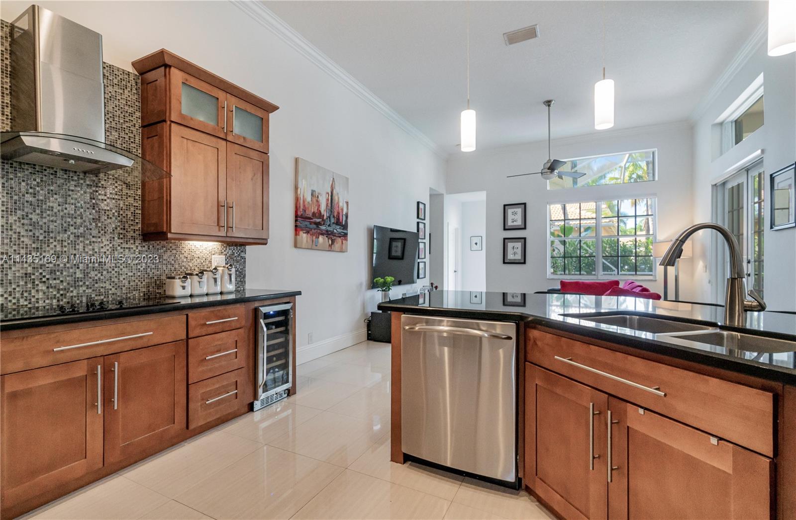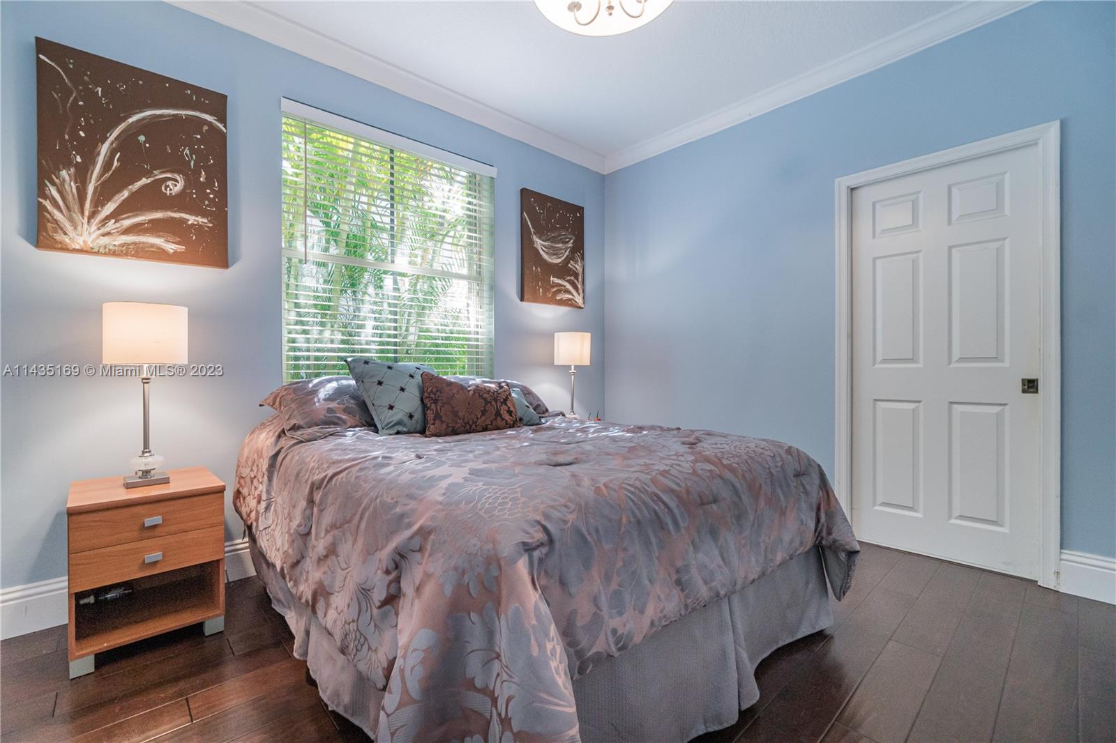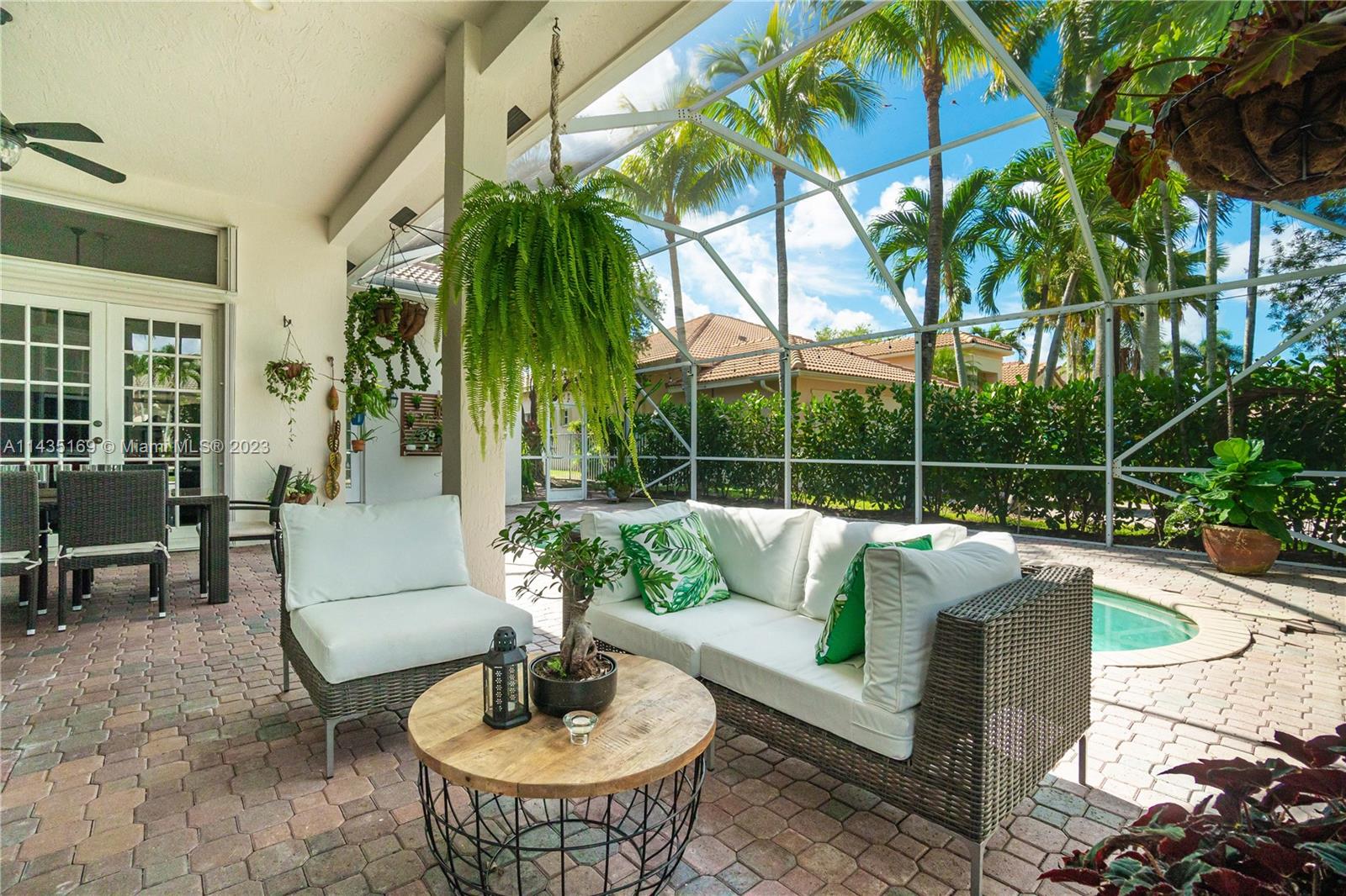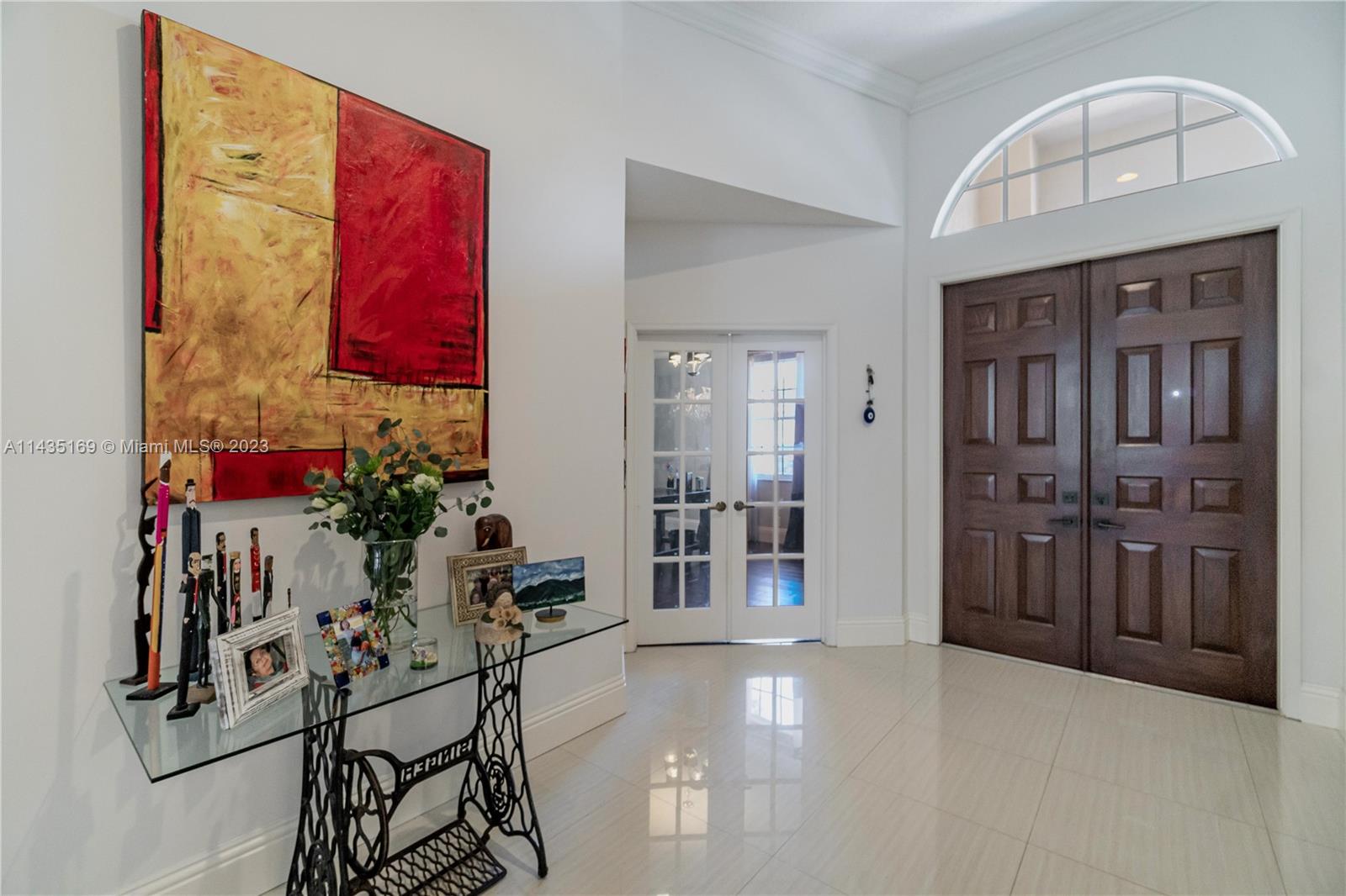 BACK TO THE MARKET WITH A NEW ROOF. Beautiful corner lot one-story home in Weston Hills Country Club Community; 4 bedrooms, 3.5 Bathrooms with a library/office. High ceiling bright house. Kitchen with custom double cabinets, SS appliances, and granite countertop. Huge Master Bedroom. Modern master bath with jacuzzi. All baths are renovated with modern concepts. All the bedrooms and offices with dark wood floors and living areas and baths with Italian porcelain tile. Cousy screed patio with a pool to feel the retread and tranquility in your own paradise. Accordion shutters and impact doors