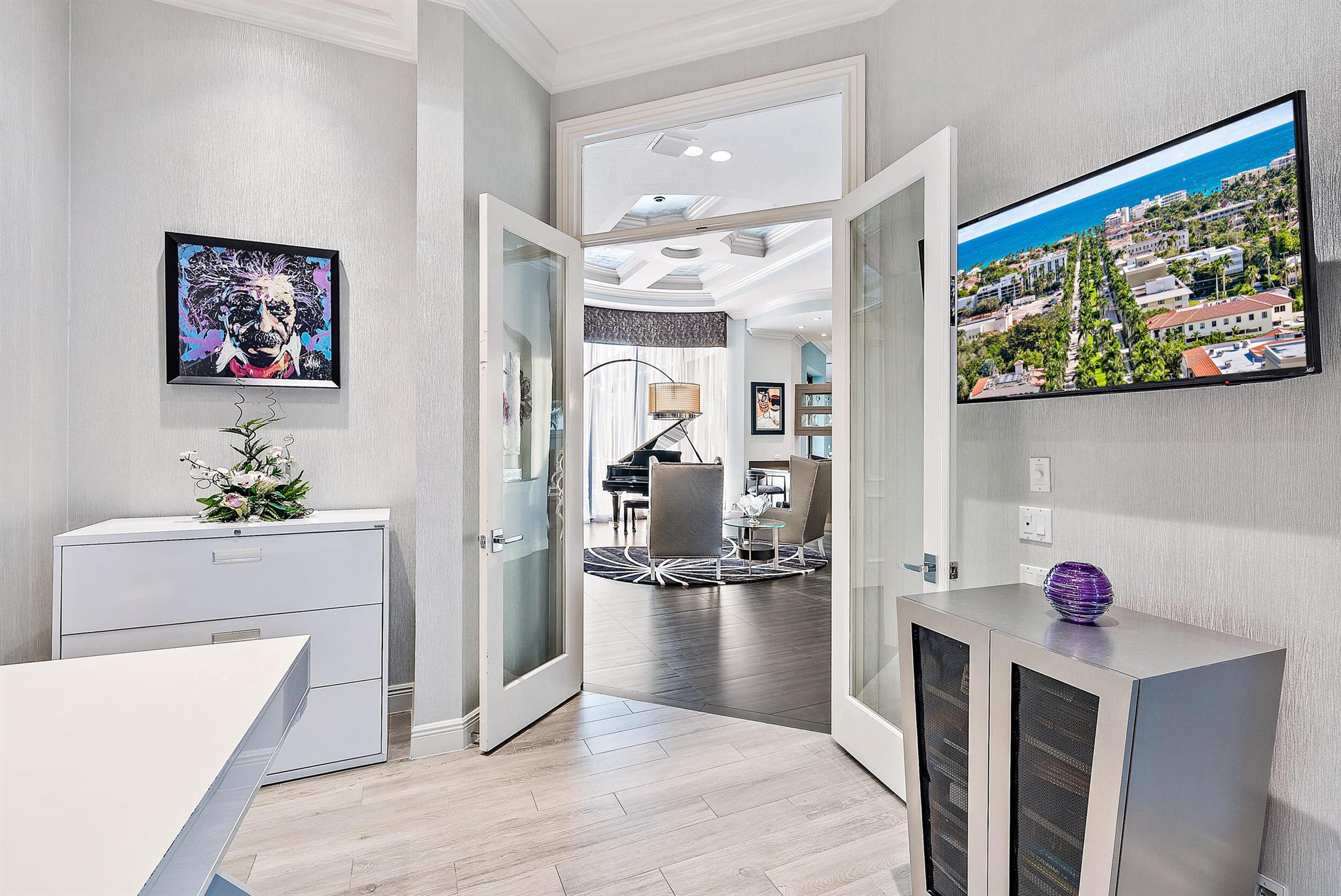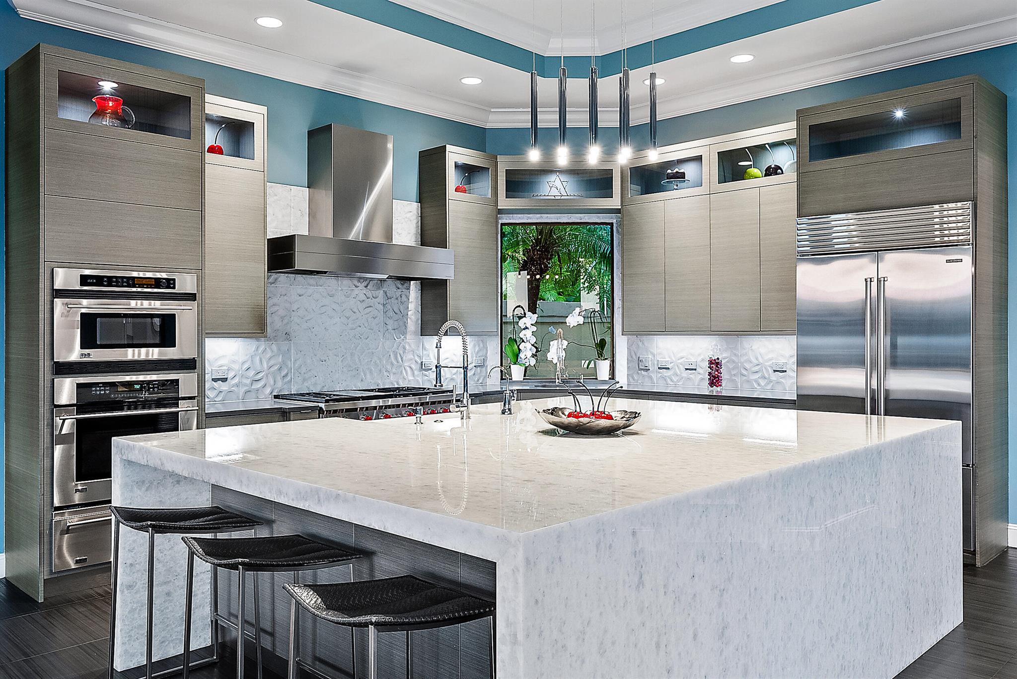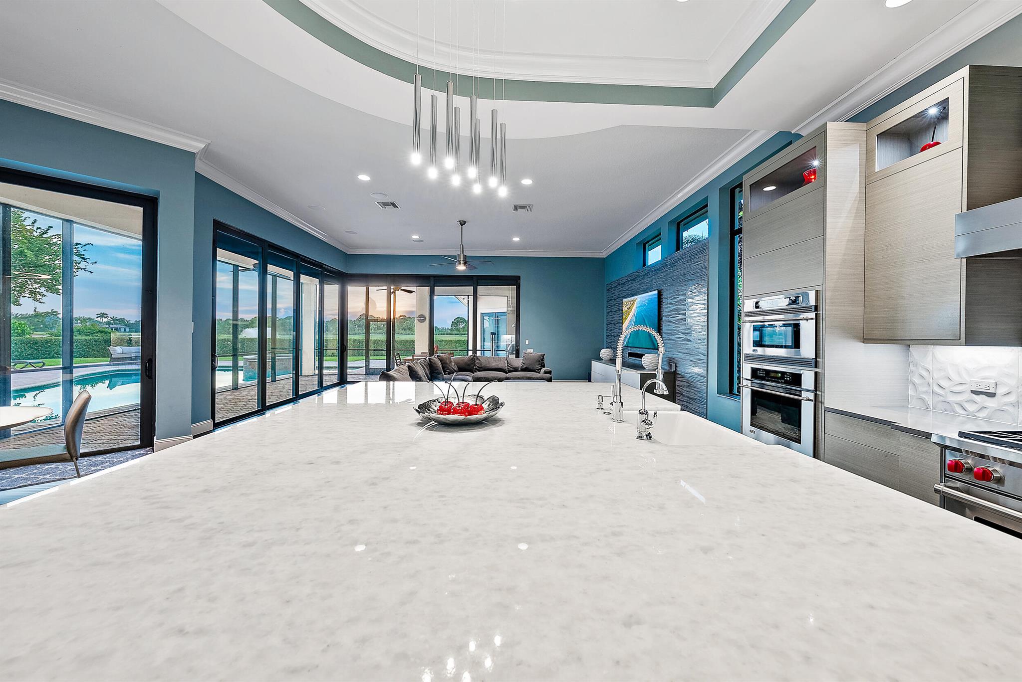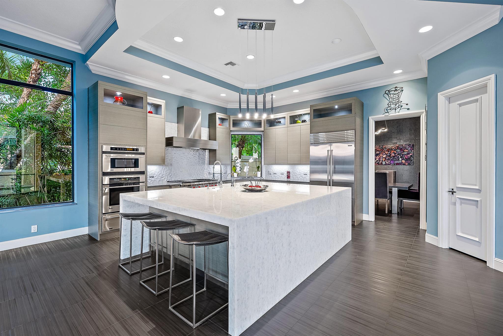 Spectacular Water Views... Renovated... Contemporary... Five Bedroom Plus Den on One Level... Guest House... Four-Car Garage--some of the most sought-after features in an Ibis home, and rarely offered in one property. Located on one of the most dramatic WATER lots in Ibis, this RENOVATED and EXPANDED CONTEMPORARY estate overlooks Ibis's largest lake and boasts 5BR/5.5BA+Den ON ONE LEVEL, including a recently added 32'x 13' GUEST HOUSE, IMPACT GLASS, GENERATOR, and a FOUR-CAR GARAGE. Dramatic Mahogany front doors welcome you inside, where the living room wows you with the sleek design, stunning black porcelain tile flooring, custom mosaic glass tile fireplace with stainless picture frame, and floor-to-ceiling windows that overlook the picturesque backdrop of Lake Ibis.