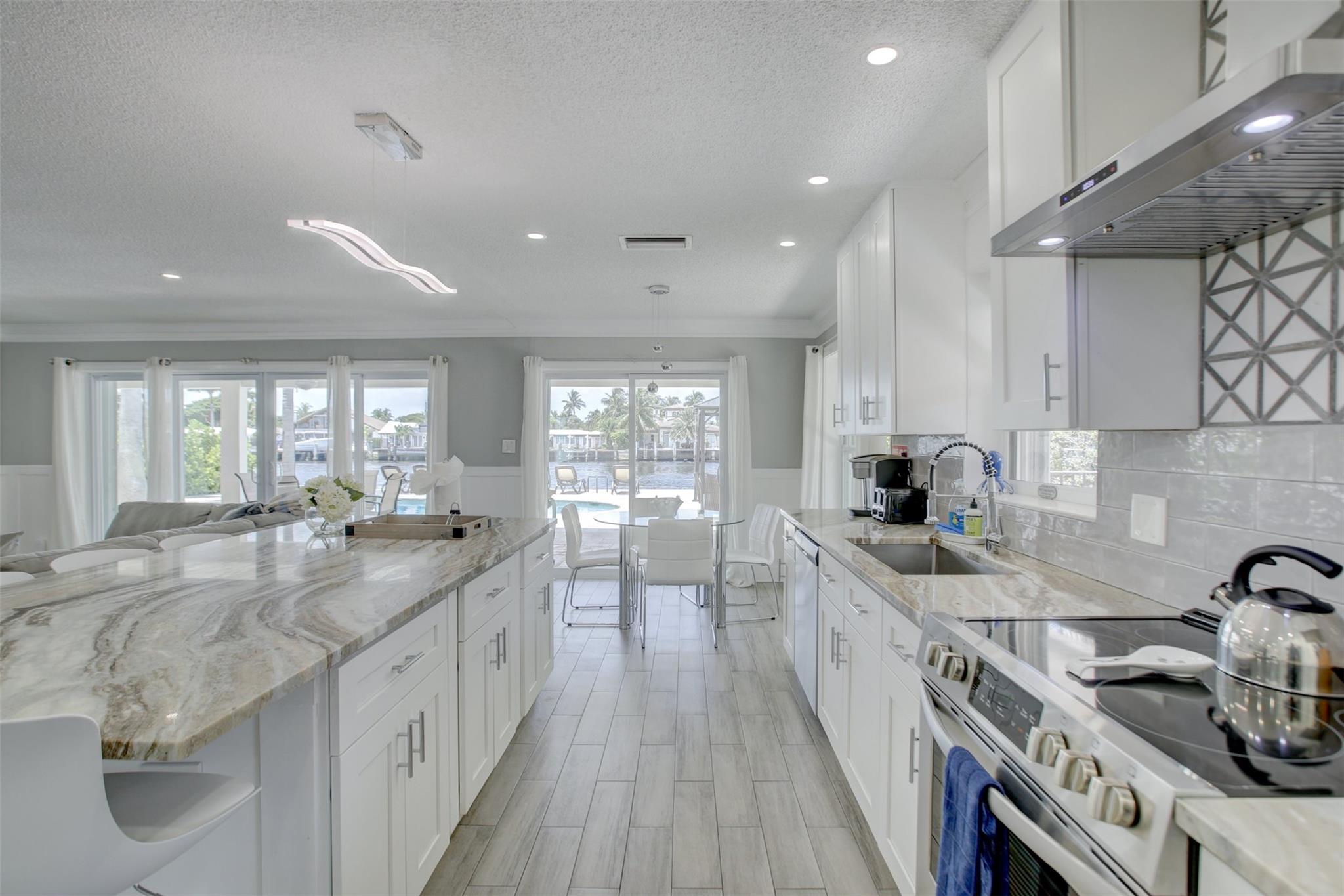 DIRECT INTRACOASTAL WITH 60' OF PRIME OCEAN ACCESS & STUNNING WATER VIEWS. THIS IMPECCABLE FULLY RENOVATED HOME OFFERS HIGH END COASTAL INSPIRED DESIGN FEATURING 3 BEDROOMS & 3 FULL RENOVATED BATHROOMS. OPEN FLOOR PLAN PERFECT FOR ENTERTAINING INDOORS & OUTDOORS. GOURMET KITCHEN WITH LARGE CENTER ISLAND OFFERING TOP OF LINE APPLIANCES, CUSTOM GREY SHAKER CABINETRY, GRANITE COUNTERS, SUBWAY TILE BACKSPLASH WITH BUILT-IN WINE FRIDGE. PORCELAIN WOOD PLANK FLOORING THROUGHOUT. SPACIOUS COVERED PATIO LEADS TO TRAVERTINE PAVERED OUTDOOR SPACE WITH HEATED POOL. IMPACT WINDOWS & HURRICANE SHUTTERS. BEAUTIFUL LUSH LANDSCAPING FRONT & BACK. GREAT CURB APPEAL WITH SPACIOUS 2-CAR GARAGE. BEACHSIDE COMMUNITY WITHIN WALKING DISTANCE TO BEACH, NEW POMPANO BEACH PIER WITH SHOPS & FINE DINING RESTUARANTS.