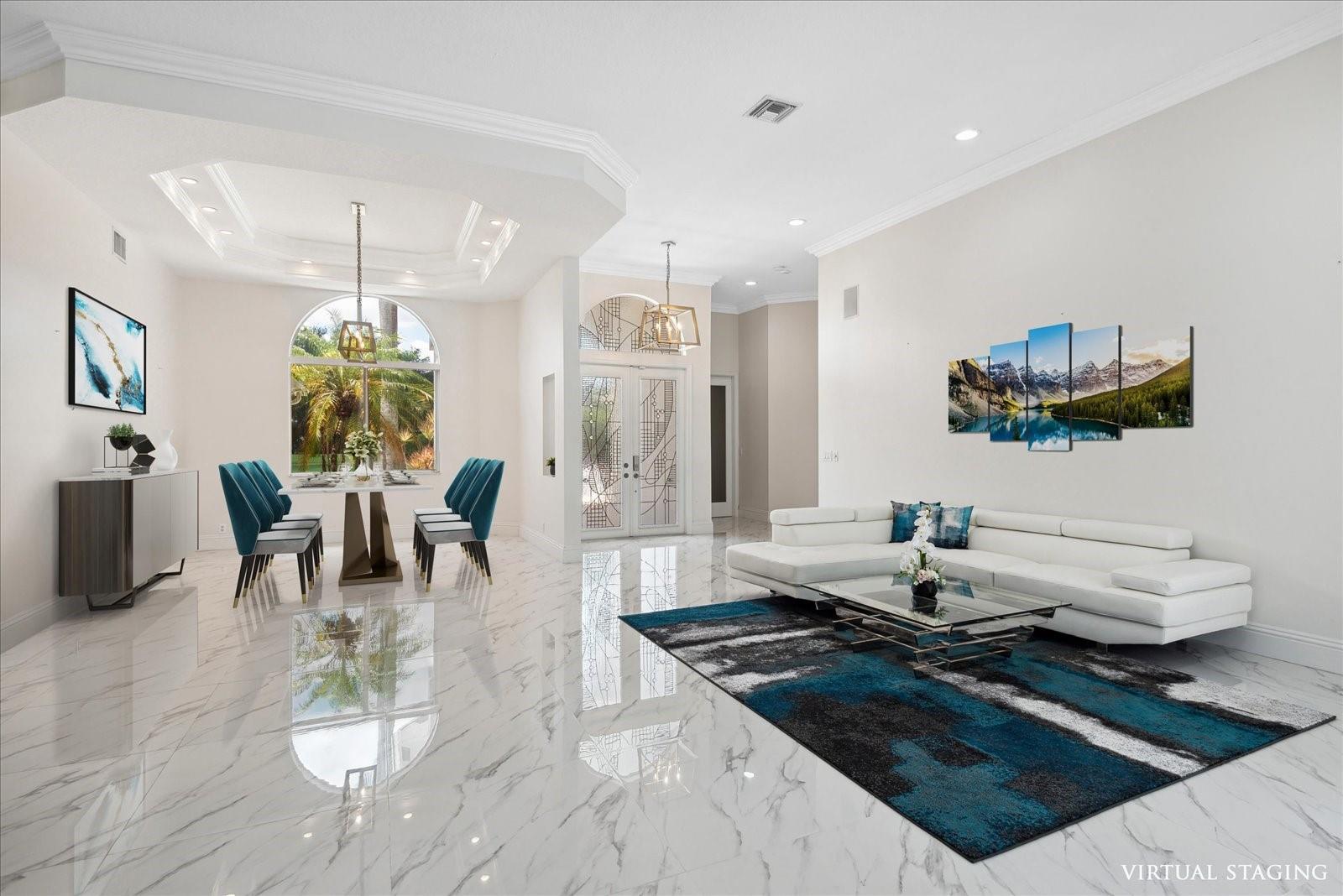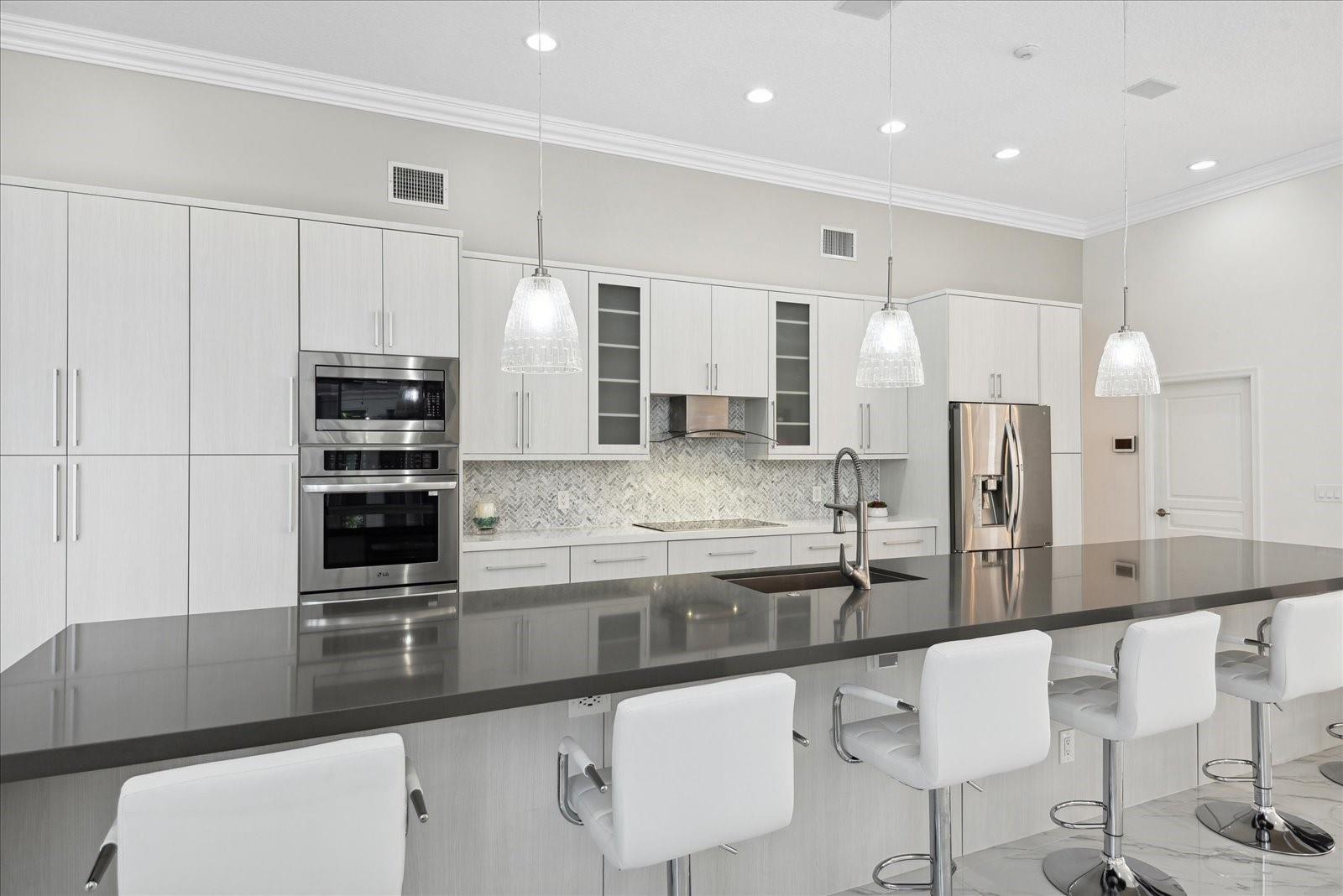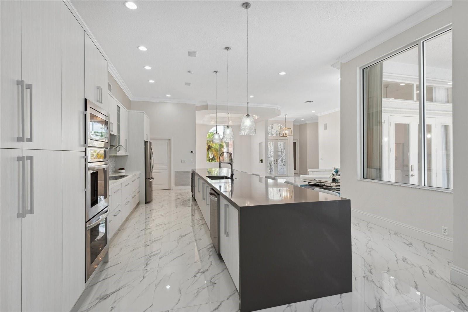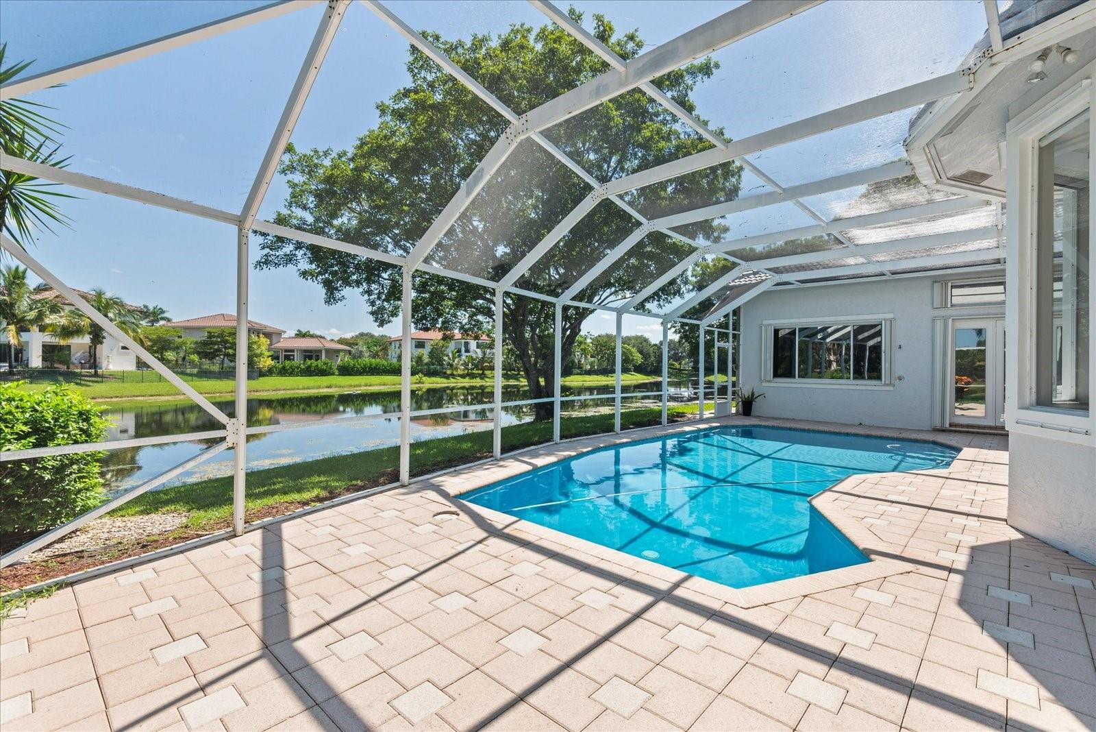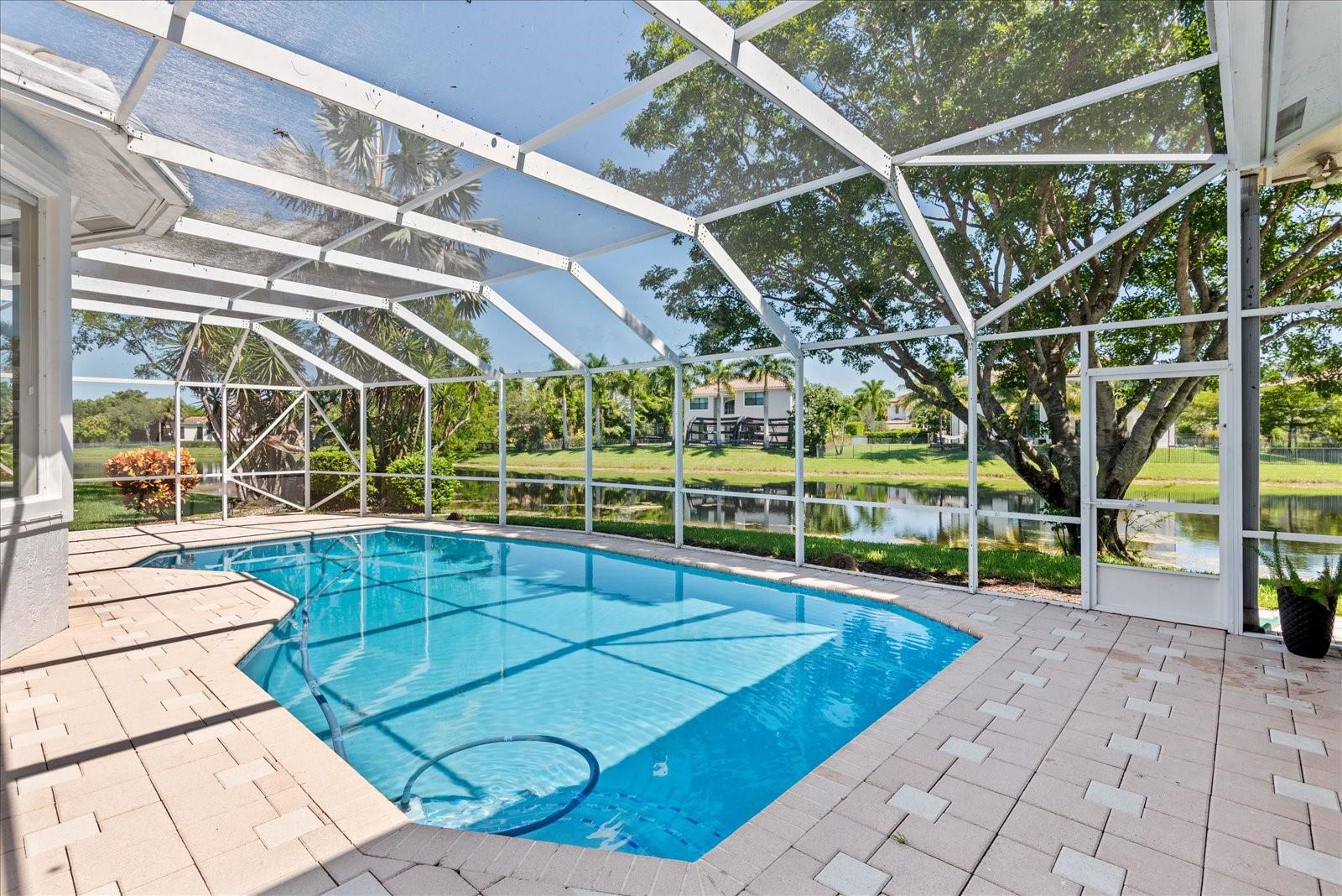 New Roof 2023! Beautiful Waterfront 5 Bed 3 Bath 3 Car Garage Triple Split Home On Over 1/3 Acre Lot In Meadow Run Estates. The Expansive Open Floor Plan Includes A Completely Renovated Kitchen With Quartz Counters, Extra Long Center Island, Stainless Appliances, Double Ovens, Wine Cooler, Pantry With Pullouts, Soft Close Drawers, 42" Cabinets, Stove Top Hood & More. Spacious Master Includes: Sitting Area, 2 Walk-ins, Dual Sinks, Shower With Body Jets, Private Bidet & Toilet. Screened Pool With Multi Color LED Lights - 2022 Upgrades: Heater, Resurfaced & Tile. Additional Features: Accordion Shutters, Circular Driveway, Stunning Tile Living Area Floors & Wood Like Floors In Bedrooms, ADT Alarm, Cameras & Much More. Guard Gated, Community Tennis, Pickleball & Top-Rated Schools.