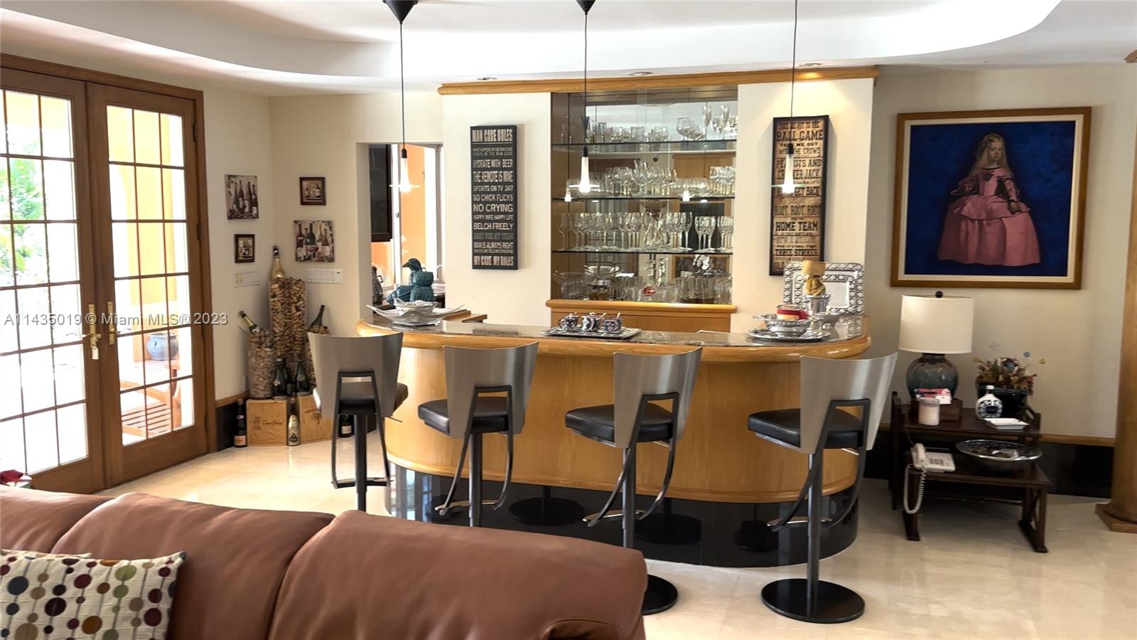 ISLANDS OF COCOPLUM - WATER FRONT - PRICED TO SELL Majestic 2-story Mediterranean-style waterfront home with 5 bedrooms, 5 baths and 2 flexible bonus rooms, on a 0.4 acre lot and 130 foot water frontage with private dock. Upon entering you are greeted by the large living room with high ceilings, marble floors and a large window overlooking the garden. You will also see the staircase and other details of natural wood. An elevator enhances the feeling of grandeur and provides easy access between the two floors. The living room, with a separate bar, and large French doors that provide natural lighting, give one of the accesses to the Florida room with views of the gardens, summer kitchen and pool. The formal dining room receives natural lighting from the large front terrace of the house.