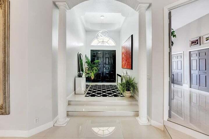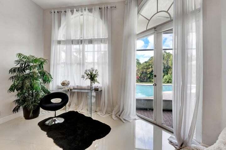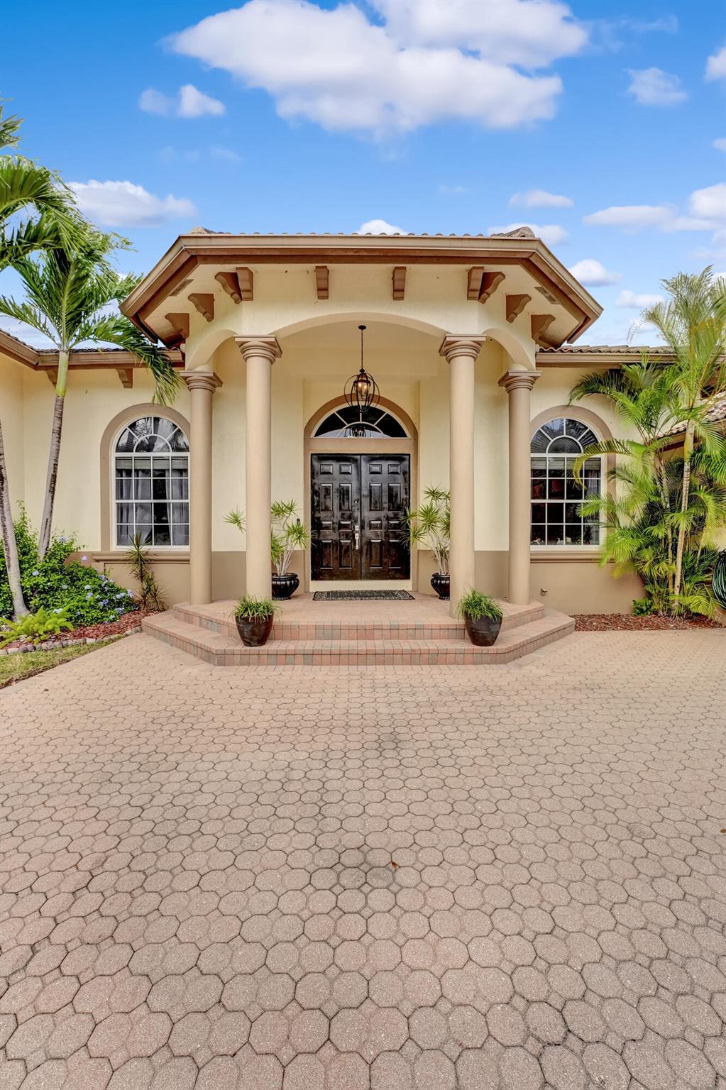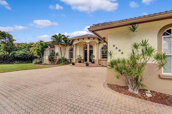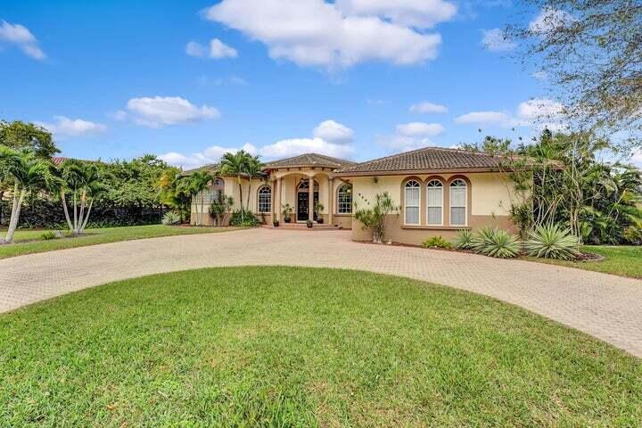 Gorgeous 5 Bedroom, 3 1/2 Bath Mediterranean Estate home in West Davie. Split floor plan with Front office next to Master Bedroom. Located on one of the largest lots on a quiet cul-de-sac in a gated community with only 15 homes. Heated Salt water pool in a private fenced oasis backyard with screened lanai perfect for entertaining. Large 32X32 Porcelain Tile (2021) throughout home with 14'' vaulted ceilings throughout. Gourmet Kitchen with Granite countertops and stainless appliances (2018), Formal Living room/Dining Room, and Family room that offer Tray Ceilings with elegant light fixtures. 2 AC Units, 2 Tankless Hot Water heaters, Washer/Dryer 2018. Large circular driveway with 2 car garage. Near Turnpike, Seminole Hard Rock, and I-595
