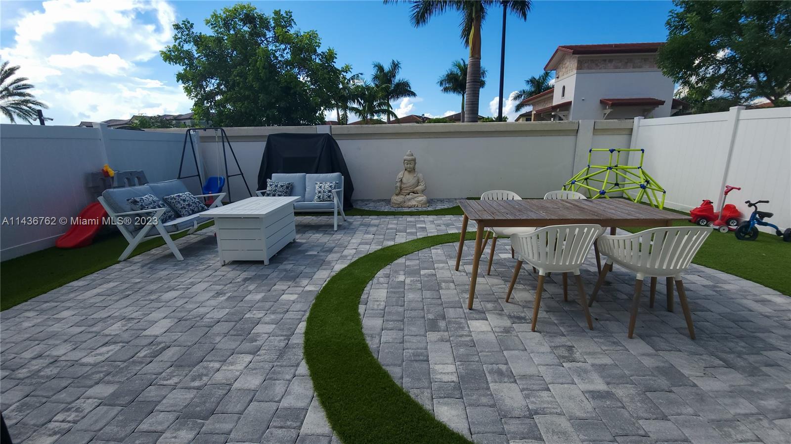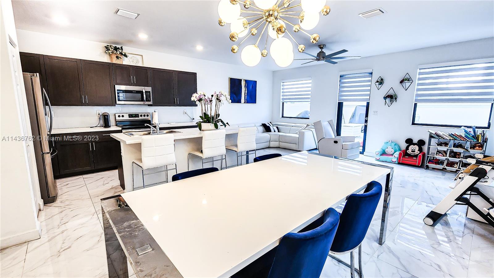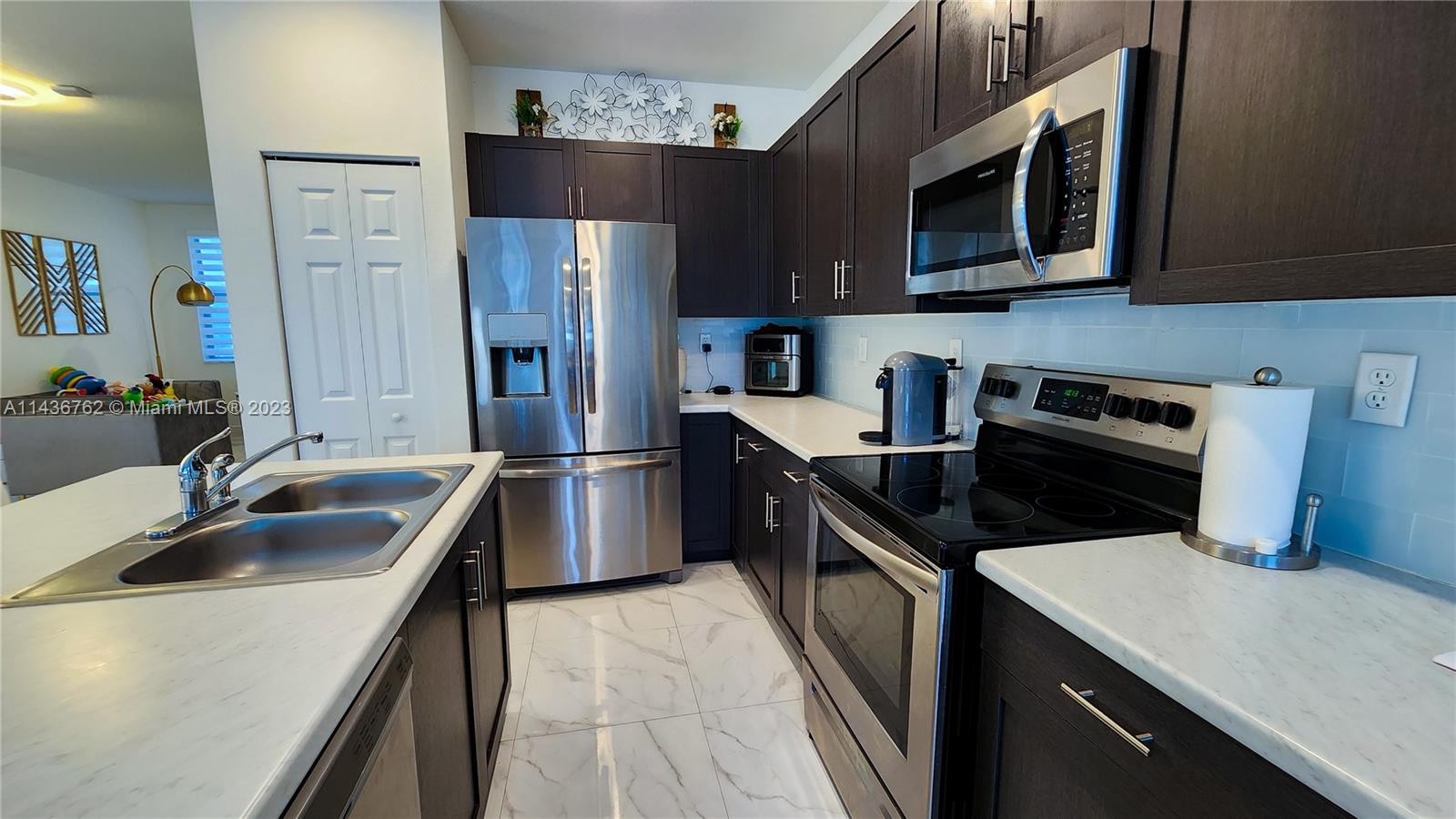 Gorgeous 4 Bdr/2.5 bath home in recently built AQUABELLA gated community. This property has an open layout, stainless steel appliances, fenced and turfed backyard, garage, keyless entry, laundry room with Washer & Dryer upstairs for convenience, and more. No back Neighbors. AQUABELLA is a sought-after private gated community with 2 clubhouses, pools, fitness centers, water park for kids, visitor parking, and easy access to major highways. The property is at the border between Miami-Dade and Broward county making it convenient to reach both.