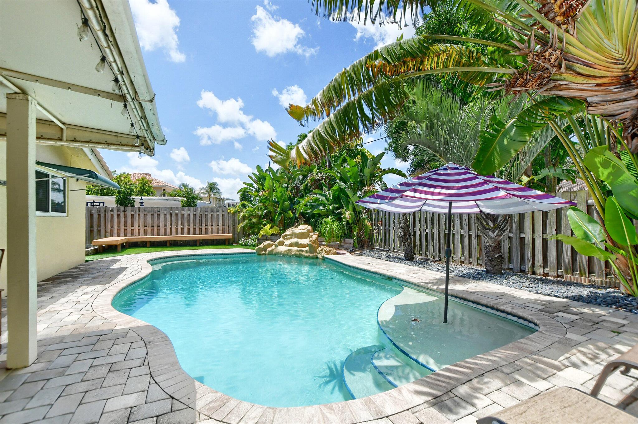 Great opportunity to own a 3 bedroom 2 bath pool home with a 2 car garage in East Boca Raton. This home is perfect for either indoor or outdoor entertaining with almost 2000 sq. ft. The large Florida room flows to the living room and dining room making it ideal for hosting large groups. Your oasis awaits outside with your salt water pool complete with water fall and hammock nearby. Surprise your guests with your own Bocce Court/Regulation Cornhole Court. A Hoover awning provides shade to an open patio area. Brand new smart refrigerator with two ice makers and extra large washer and dryer are just some of the bonuses in this home. Great school districts with easy access to I-95, hospital, Mizner Park, Town Center and other fine shopping and dining.