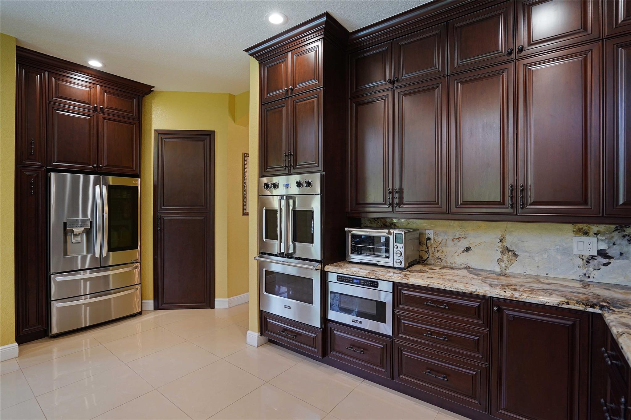 This beautiful home features 5bed/3.5 bath/office. Spacious floor plan with IMPACT WINDOWS , vaulted ceilings, porcelain and wood floors, new kitchen with wooden cabinets, granite countertops and top of the line Viking appliances, one bedroom downstairs with a private bathroom and office, new A/C units and water heater. Enjoy the oversized backyard with a pool that combines privacy and amazing preserve & water views .