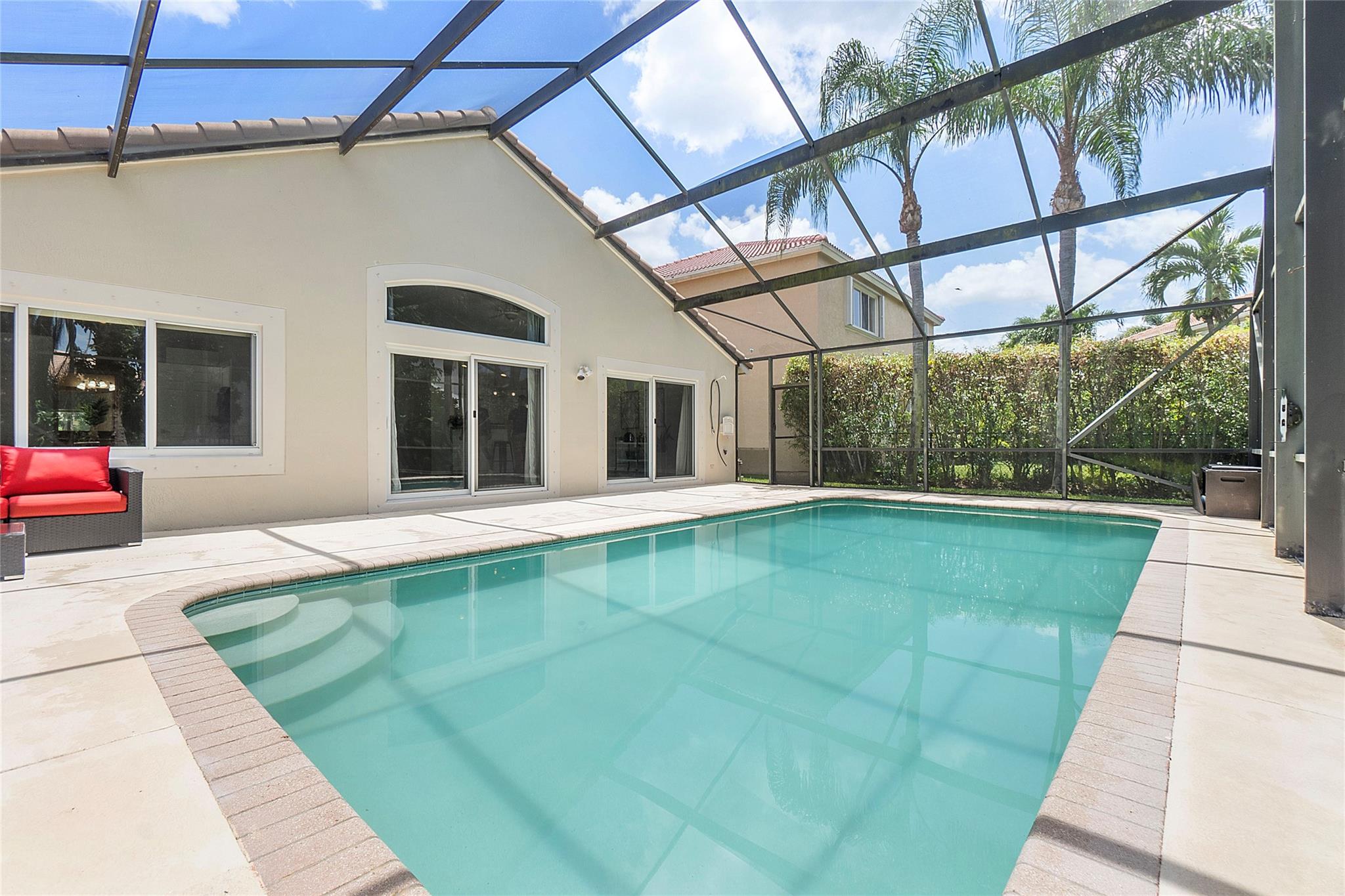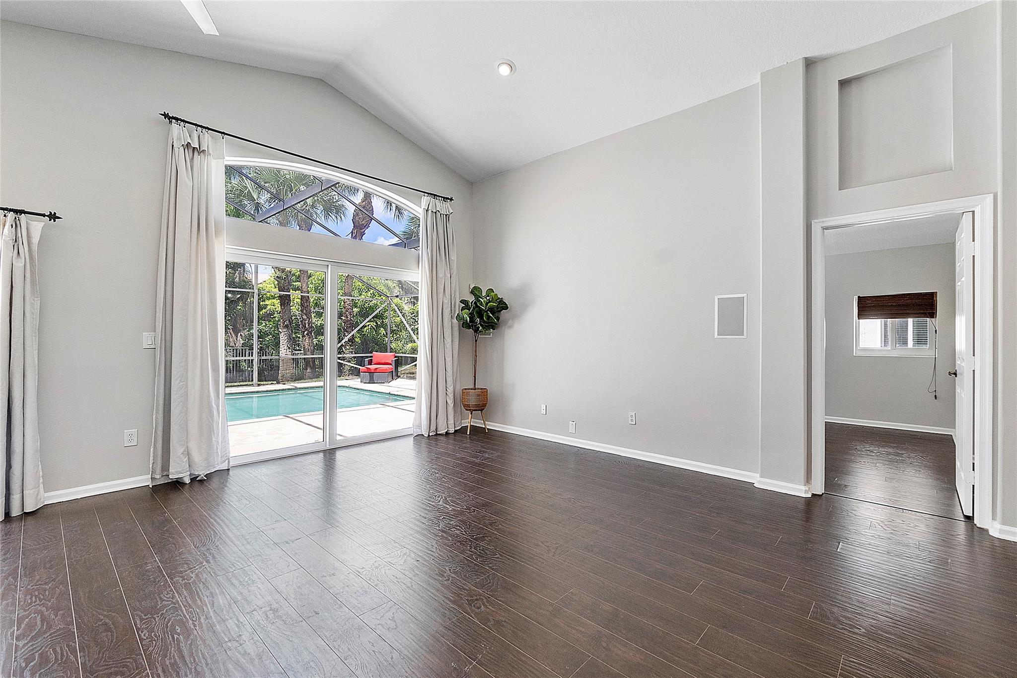 Spectacular, pool home with a NEW ROOF (2020) and FULL IMPACT PROTECTION and 2017 A/C. This 3-bedroom 2 bath home is in the highly sought after community of Coral Shores in Wyndham Lakes. This turnkey house will captivate you from the moment you enter, with vaulted ceiling and a bright open floor plan. The spacious kitchen has white shaker cabinets and granite countertops and stainless-steel appliances. The primary bath has a double vanity. The walk-in shower has two shower heads. Walk-in closet with built-ins. In addition to the pool, you have a fully screened pool enclosure to enjoy your backyard; perfect for barbecues and entertaining. Conveniently located near expressways, shopping, parks, and A+ Rated Schools.