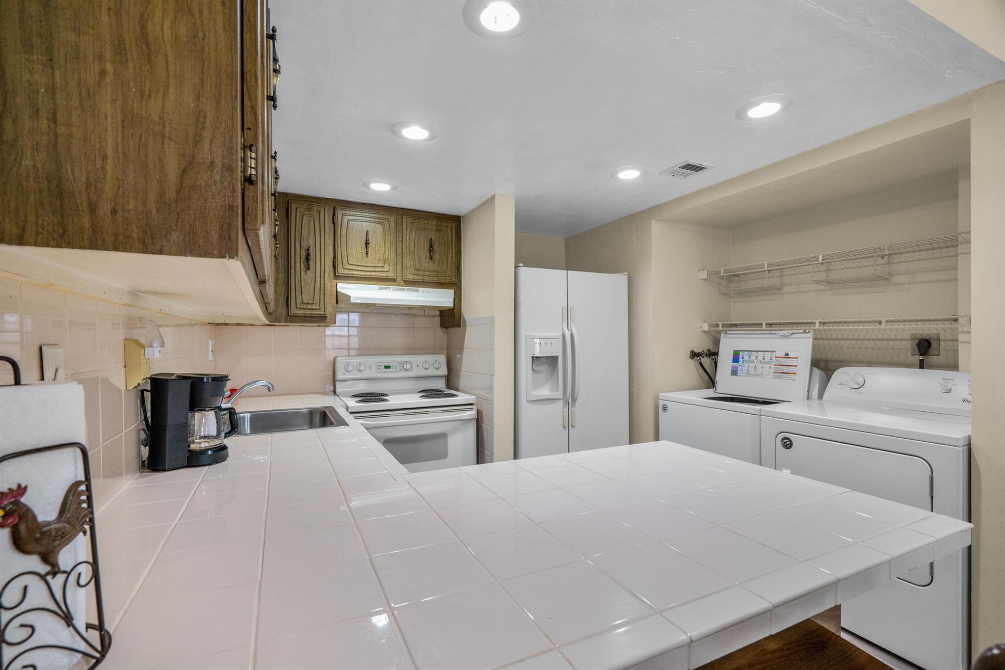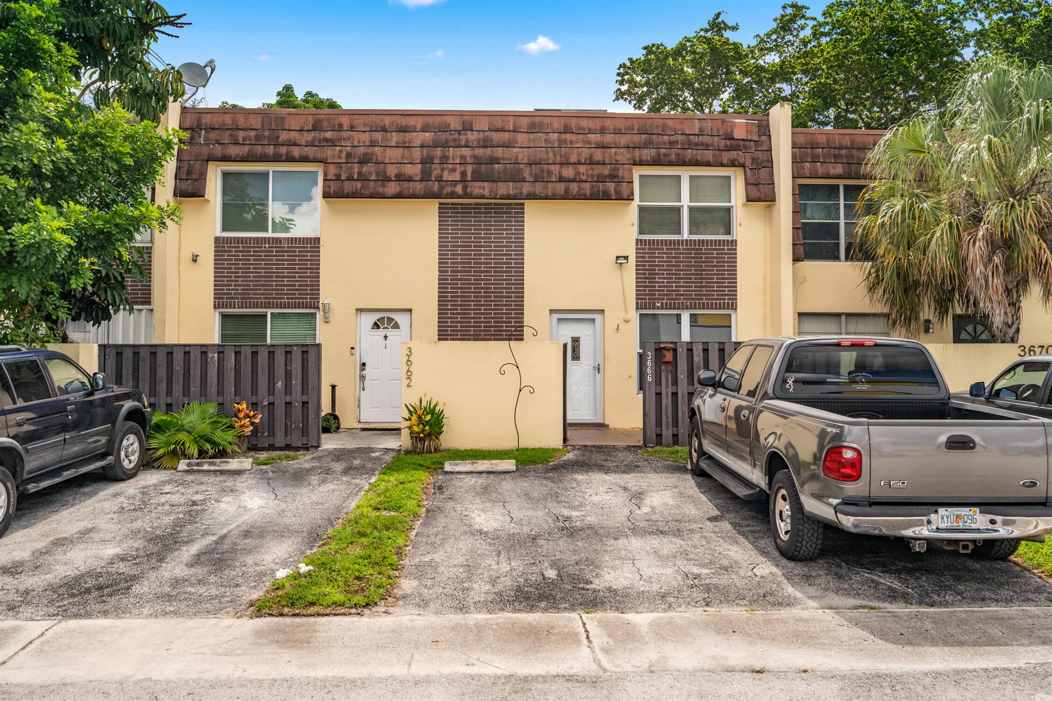 Florida Living without the MAINTENANCE! Introducing this 2 bedroom|1.5 Bathroom Townhome located IN THE HEART of DAVIE! Original Retro Florida Classic! Very well maintained ONE OWNER home is ready for immediate occupancy. Designated Parking convenient to fenced private courtyard welcomes you to create an adorable setting. Family room expanded with Laminated Wood Plank flooring open to the wrought iron spindled REAL WOOD staircase is sure to impress. This split floor plan opens to the ample sized kitchen equipped Solid Wood Cabinets, sleek tile countertops, Range, Refrigerator with Icemaker, Hood/Lighting, BREAKFAST BAR, Recessed lighting and a full-sized washer/dryer within steps to the OVERSIZED OUTDOOR BACKYARD OASIS! Fully fenced, cleared canvas is ready for your private garden with C