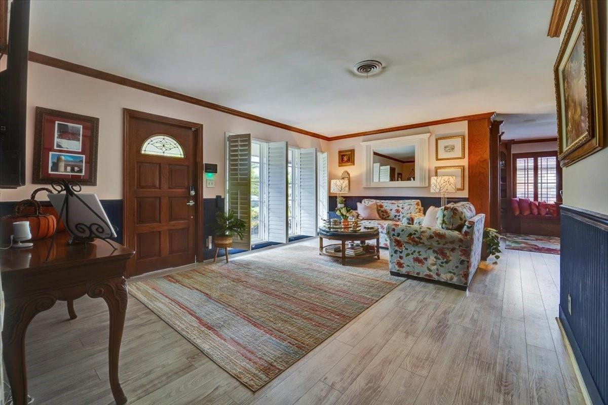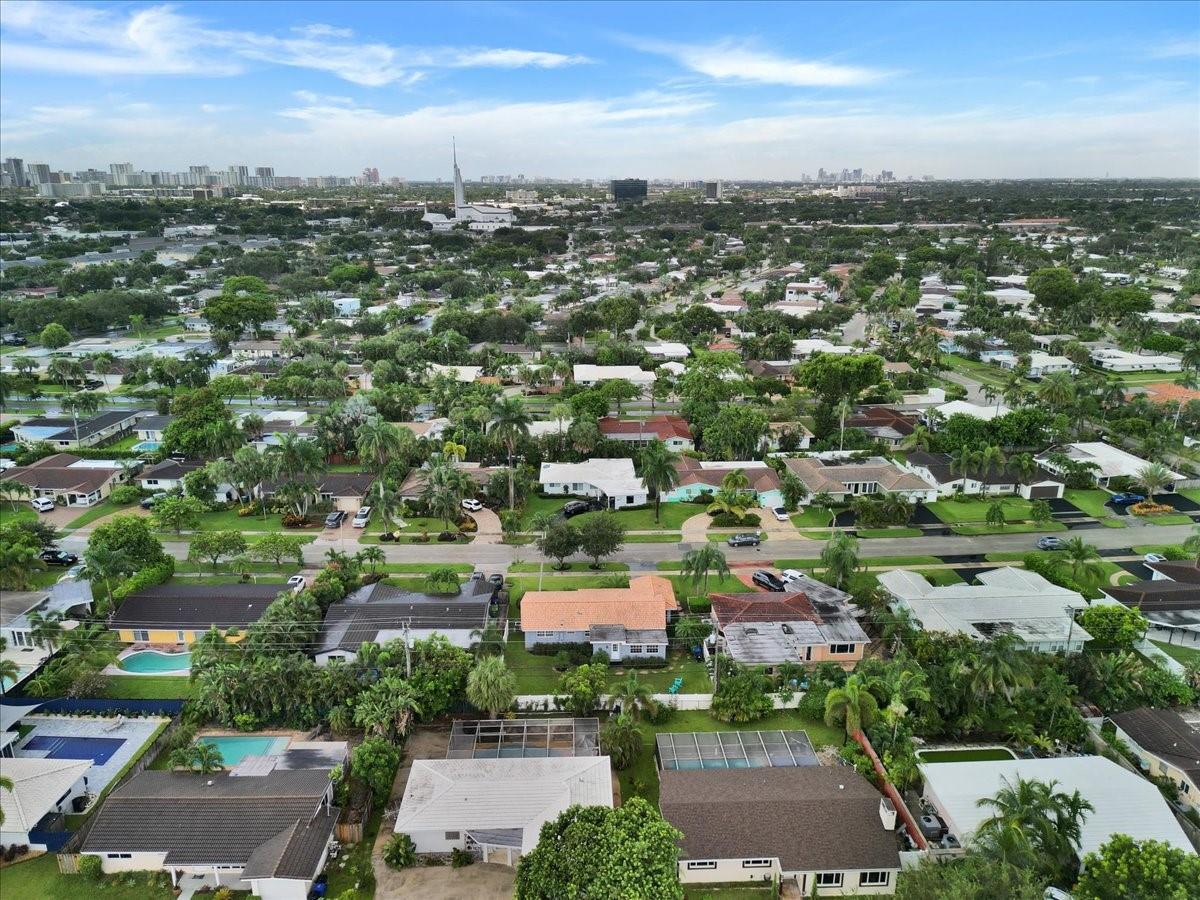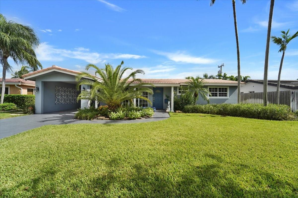Privacy, style, and location blend seamlessly in this meticulously maintained 2-bedroom 2-bath residence nestled in the outstanding & highly sought-after Imperial Point neighborhood within the heart of Fort Lauderdale. The interior boasts impact windows in front, beautiful wood built-in library, plantation shutters throughout, high tech Vivant alarm system, along with a flexible bonus den suitable for an office, playroom, or additional living area. Featuring updated bathrooms, 2022 flooring, landscaping and newer appliances. Location is perfect for health care workers (around corner from Holy Cross Hospital, Broward Health, clinics, etc). Enjoy the fenced-in-yard in a prime location & just an 8 minute drive (2.5 miles) to the beach, downtown, upscale dining, shopping, schools, and parks.