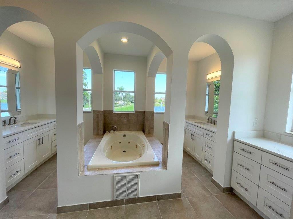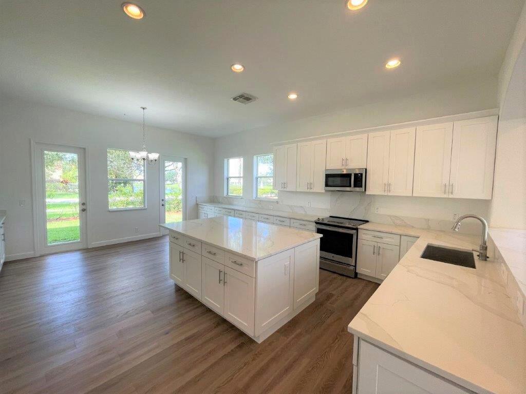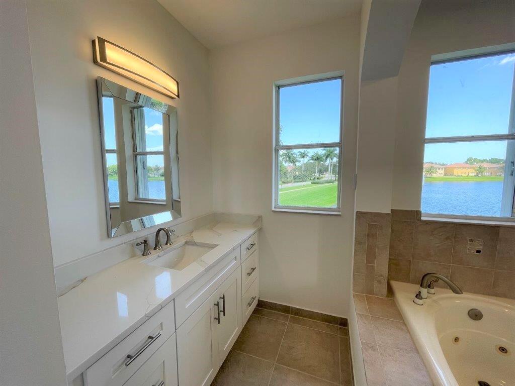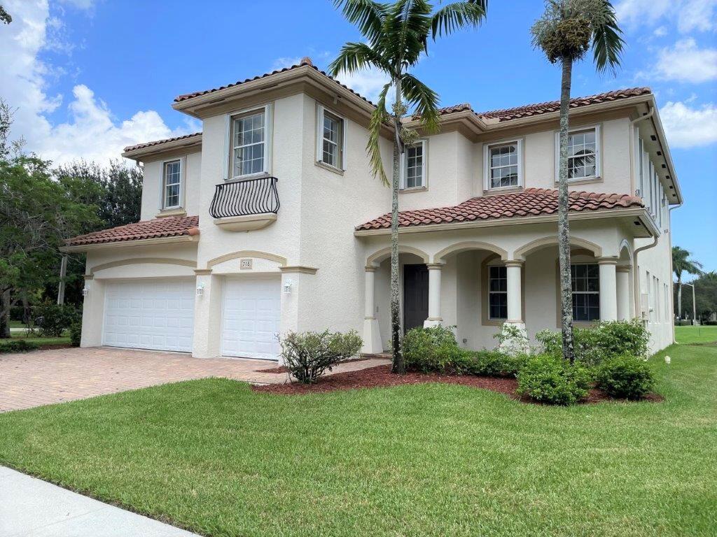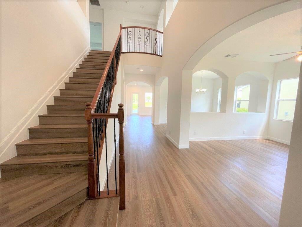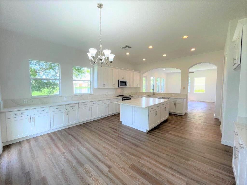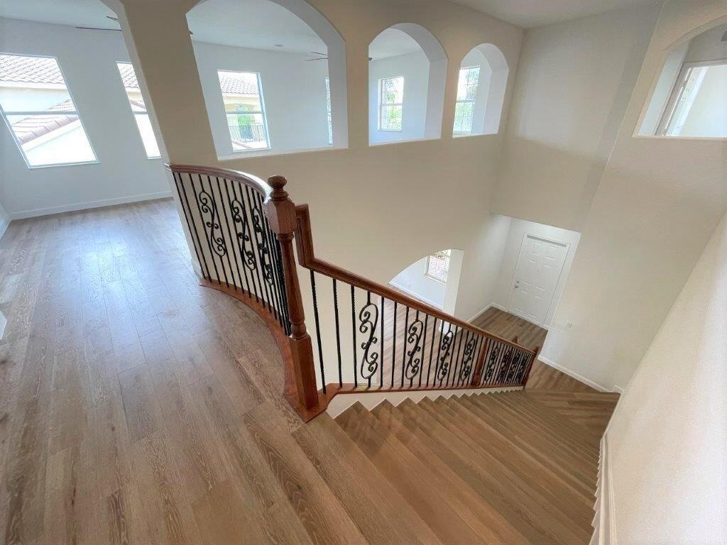LARGEST MODEL, COMPLETELY RENOVATED. Stunning 5 Bedroom, 4.5 Baths, 3 Car Garage single family home nestled on a corner lot offering serene lake view. Located in the gated community of Terracina, this majestic home features new hardwood floors throughout all living areas, upstairs main bedroom, and great room. New carpet in downstairs ensuite bedroom and all upstairs secondary bedrooms. The kitchen boasts new 42'' white shaker cabinets, gorgeous quartz countertops and SS range, microwave, and dishwasher. New sink, faucet. Center island, and Butler's pantry. New fixtures throughout. All baths have new white shaker cabinetry, quartz countertops, sinks and faucets. The floor plan includes a formal living room, formal dining room and large great room upstairs.